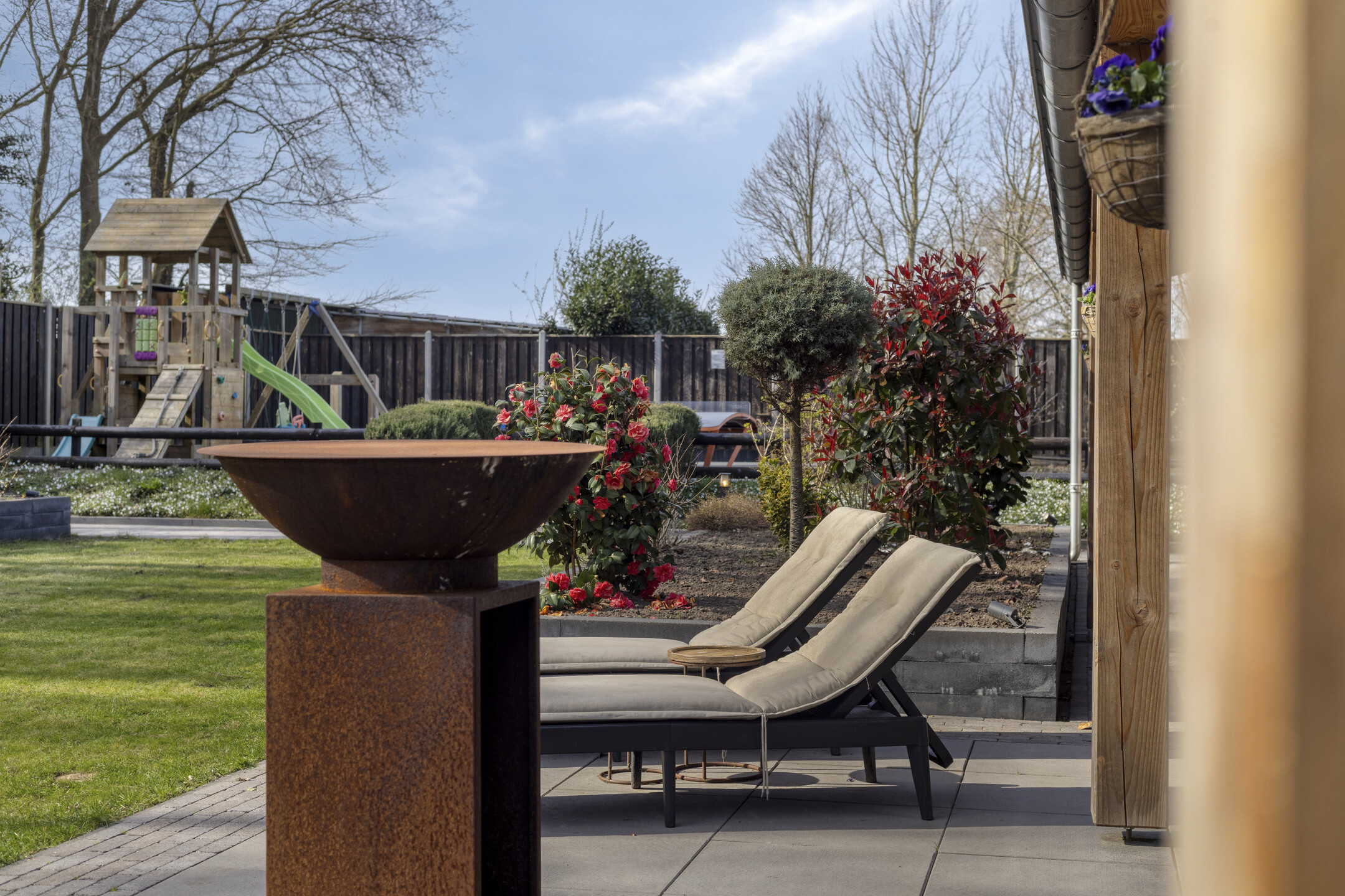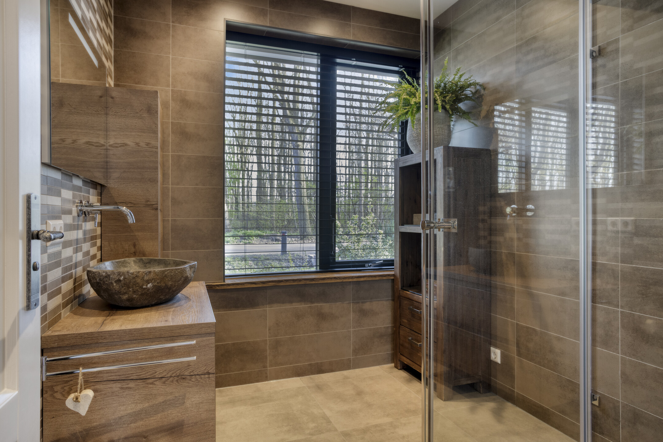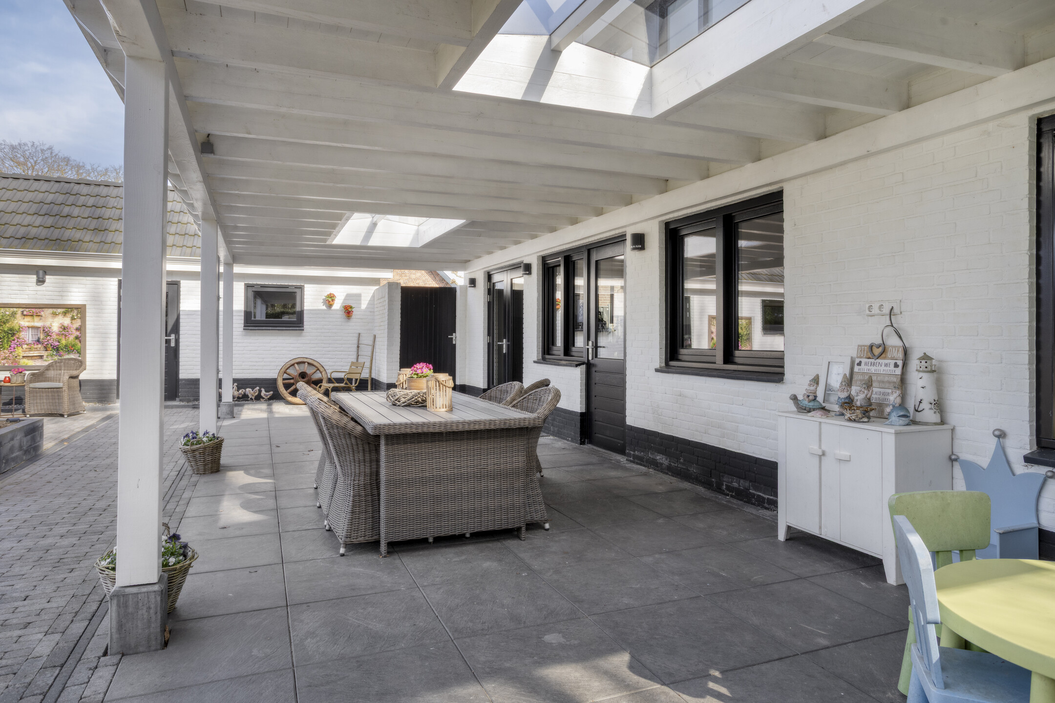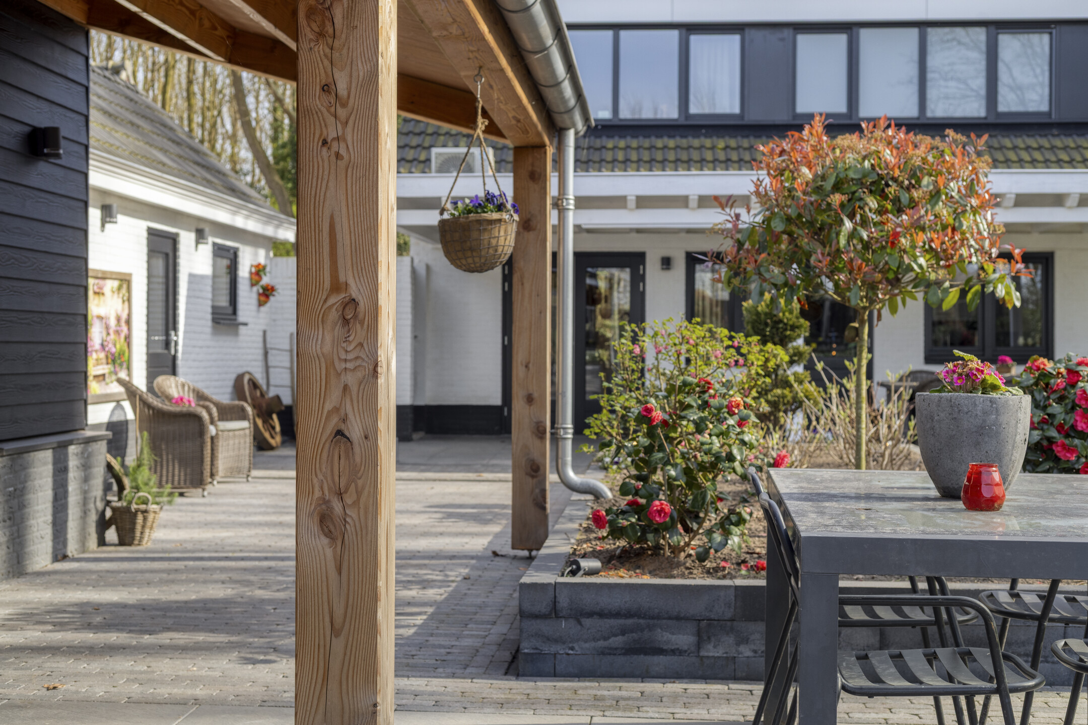 The absolute eye-catcher is the fully insulated outbuilding, finished to a very high standard and offering a wealth of possibilities. With a footprint (including veranda) of approximately 124 m², it is divided into several practical and luxurious spaces.