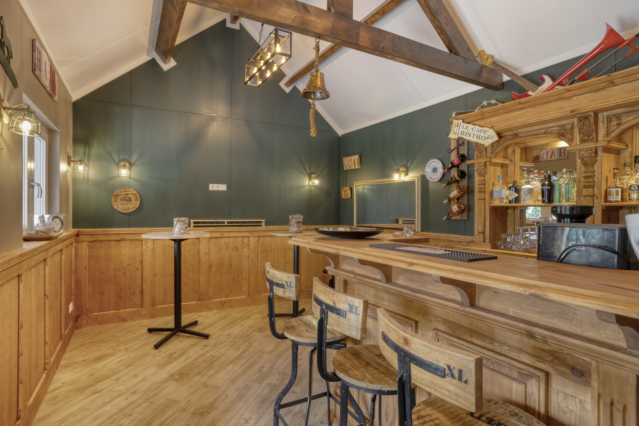 A bar area with bar, beverage cooling, and separate toilet