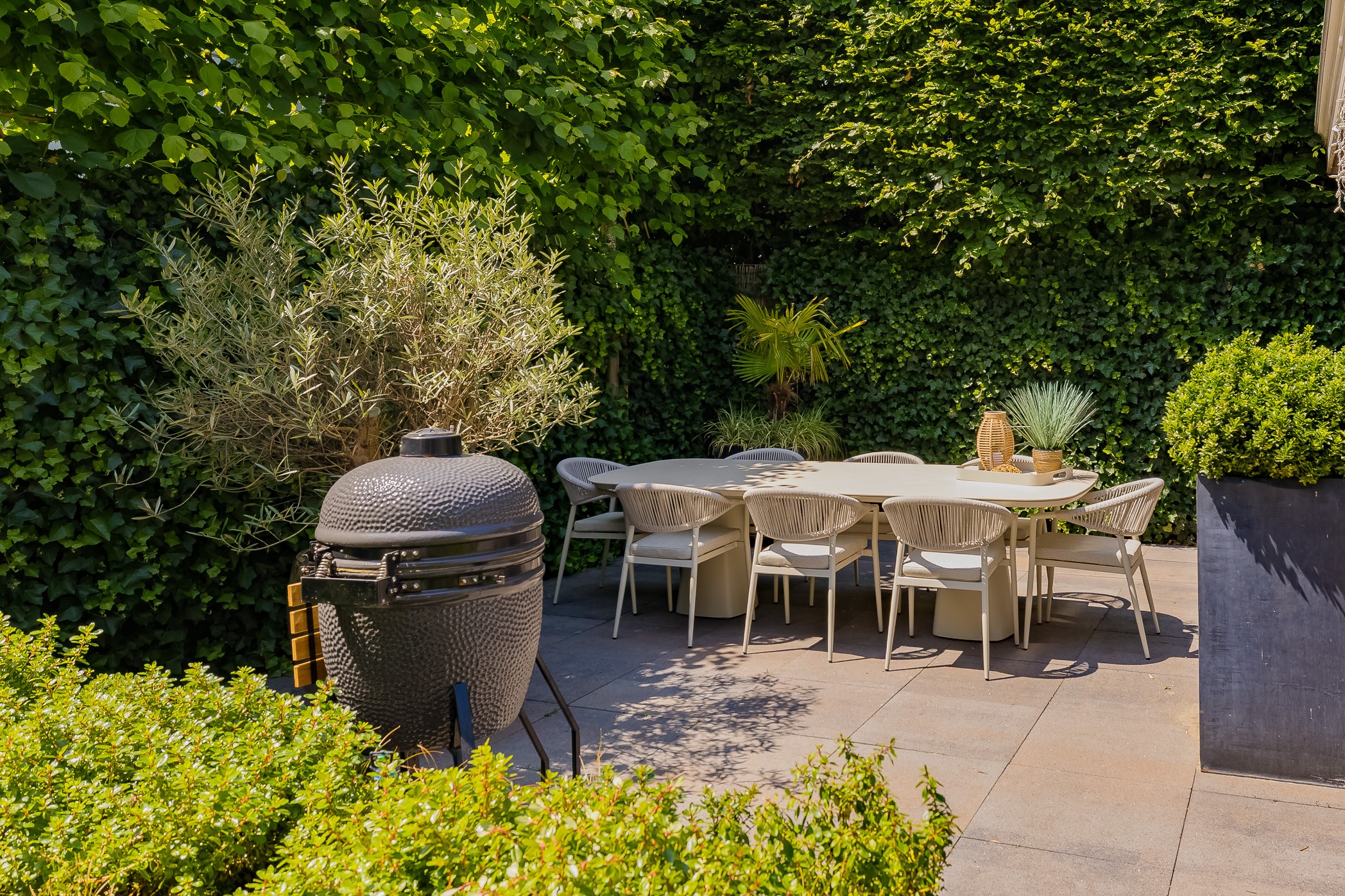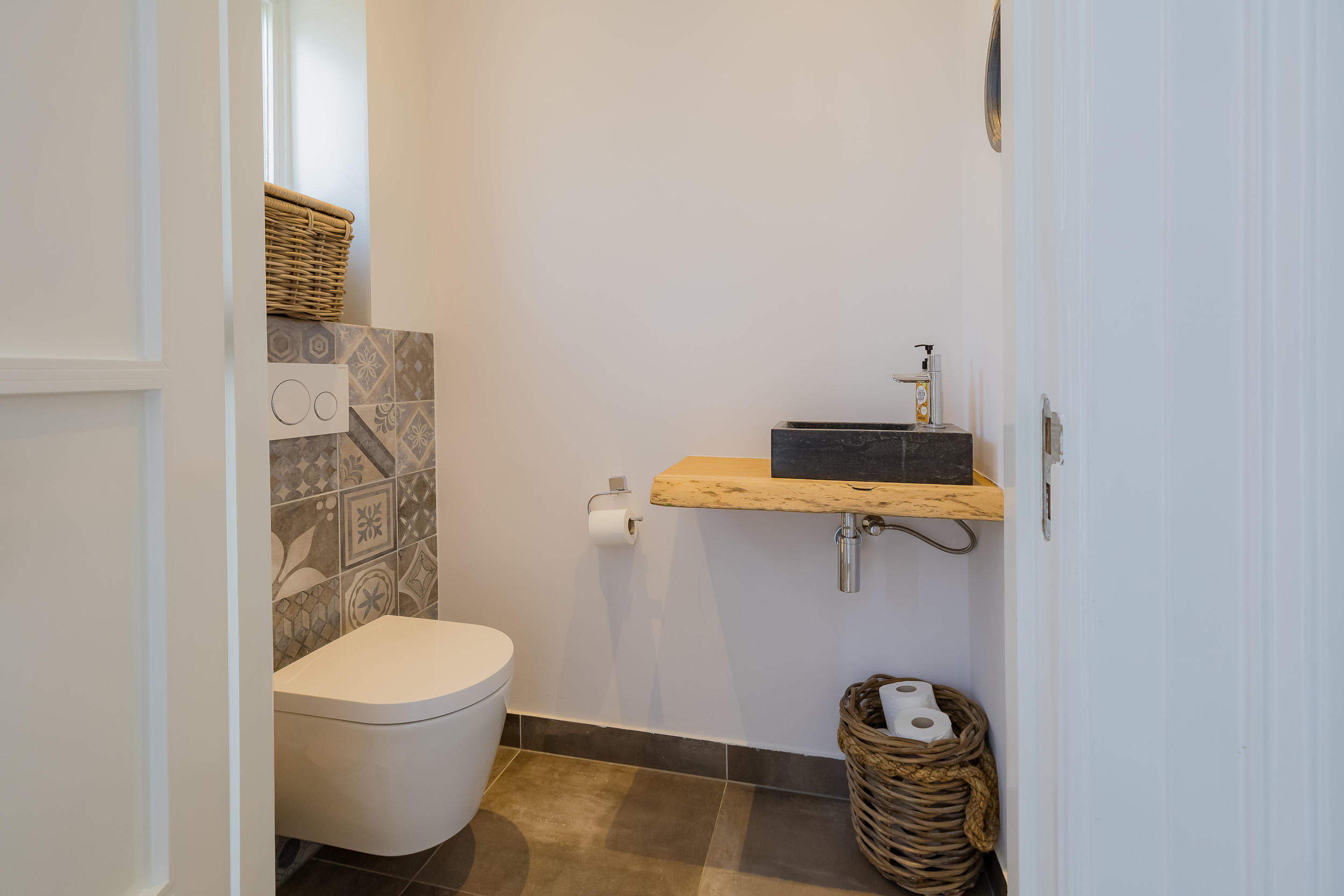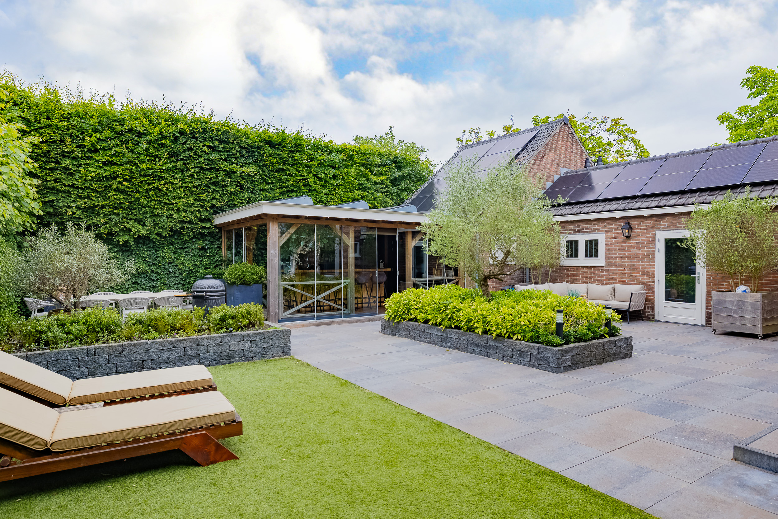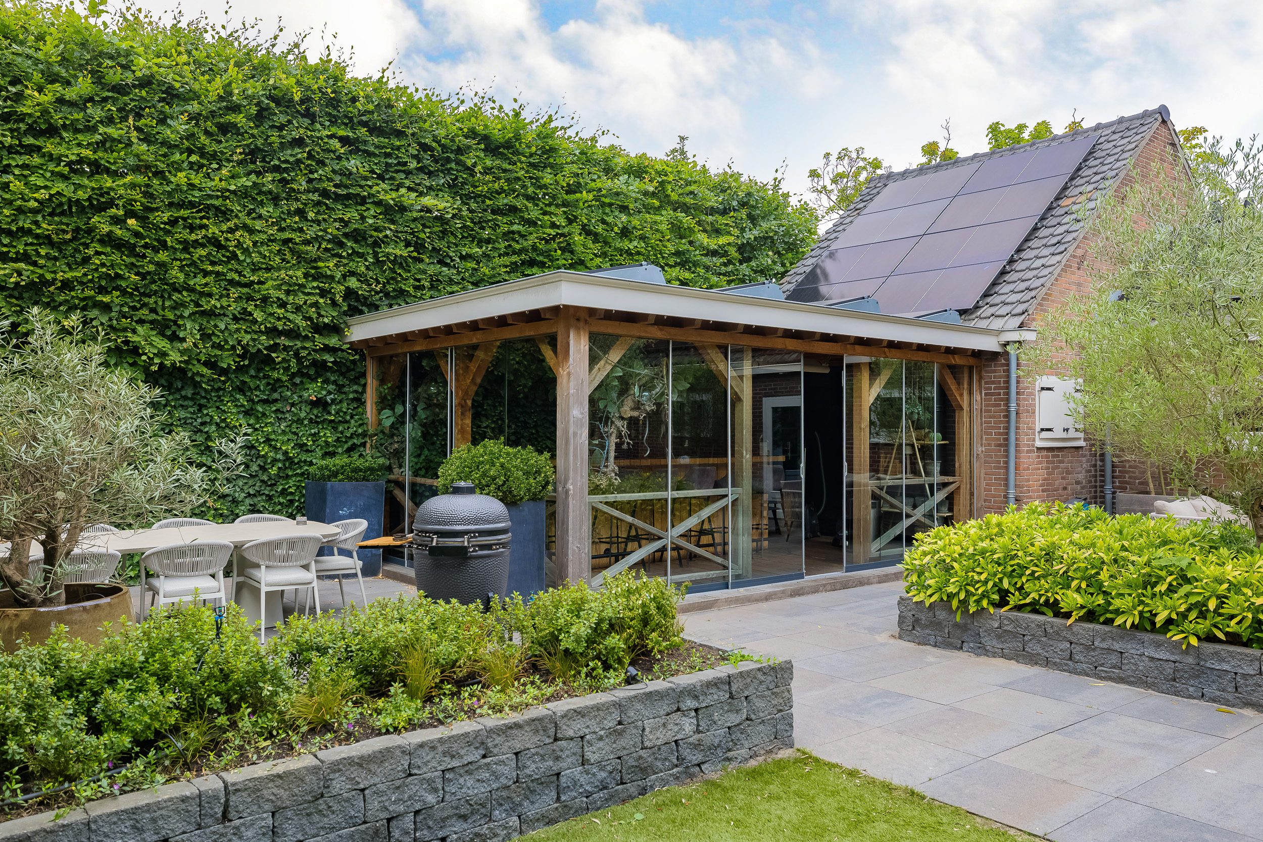 The beautifully landscaped garden surrounds the house and includes a new in authentic style wrought iron fence, lighting and irrigation. The very sunny backyard of 13 meters deep and 7.5 meters wide offers lots of privacy and is equipped with a large veranda where it is also good to stay in the colder months.