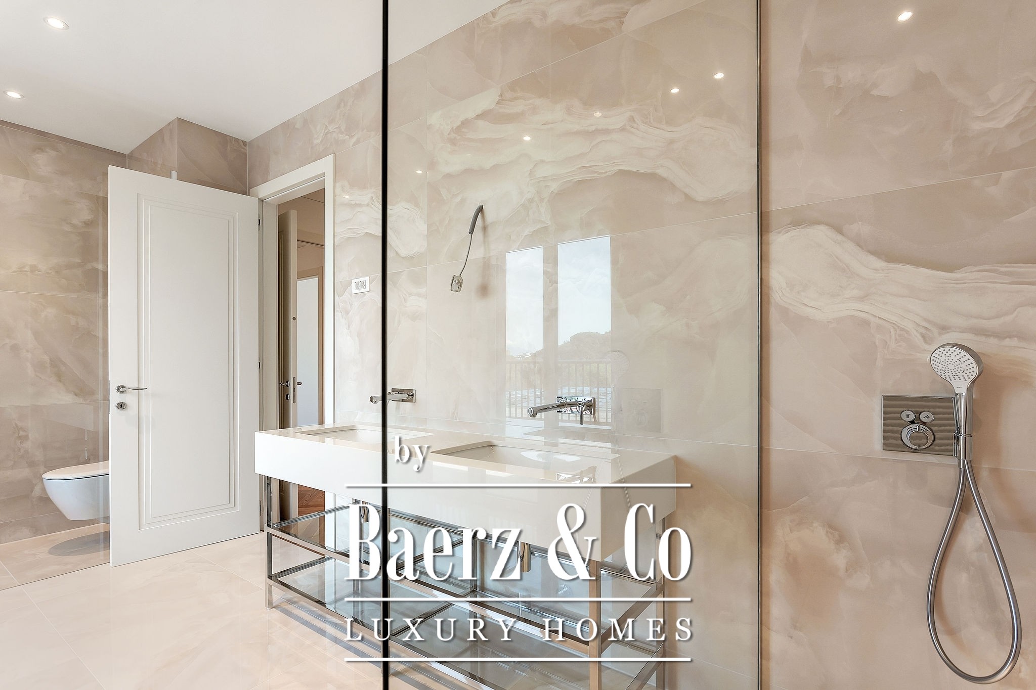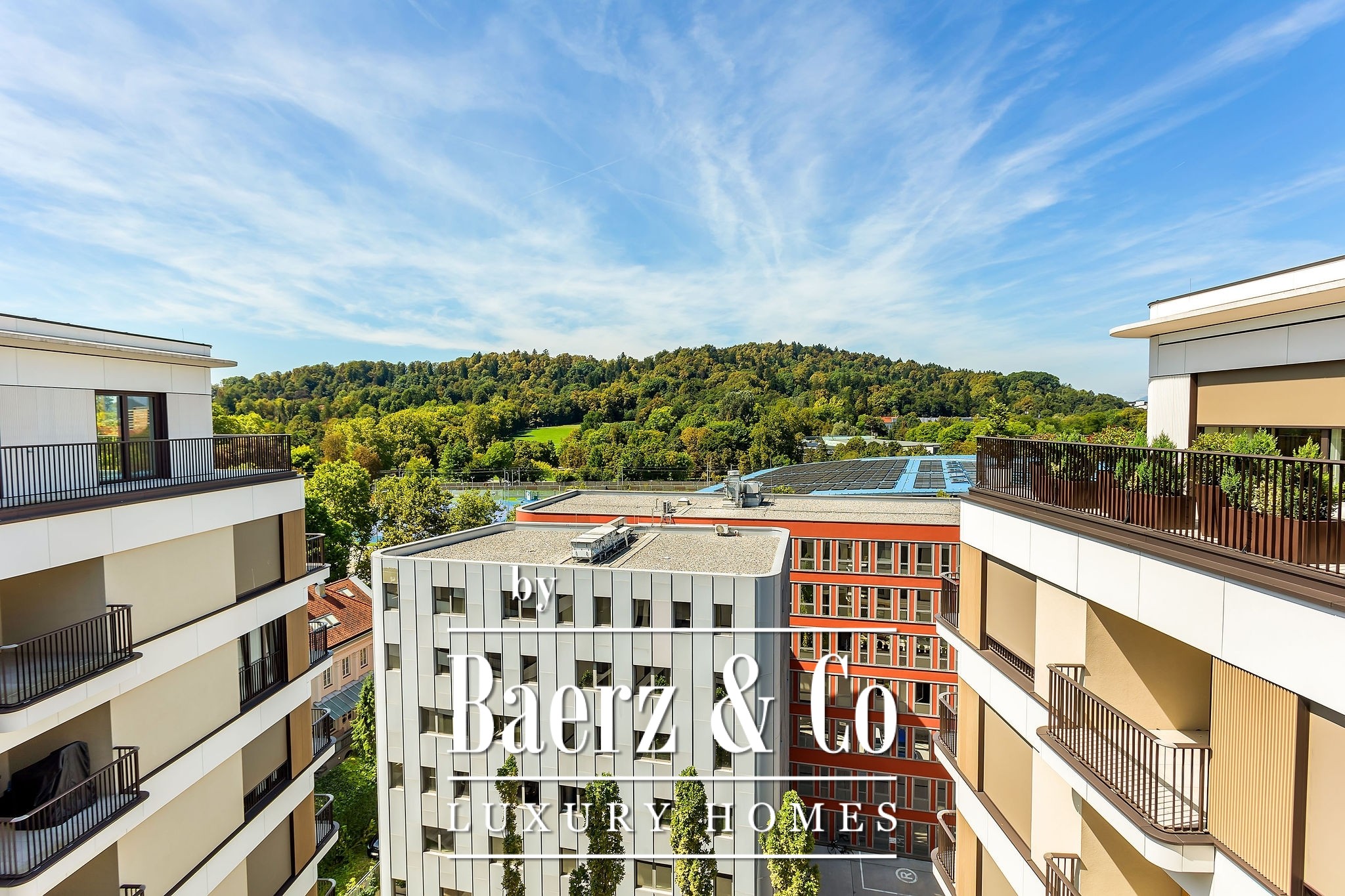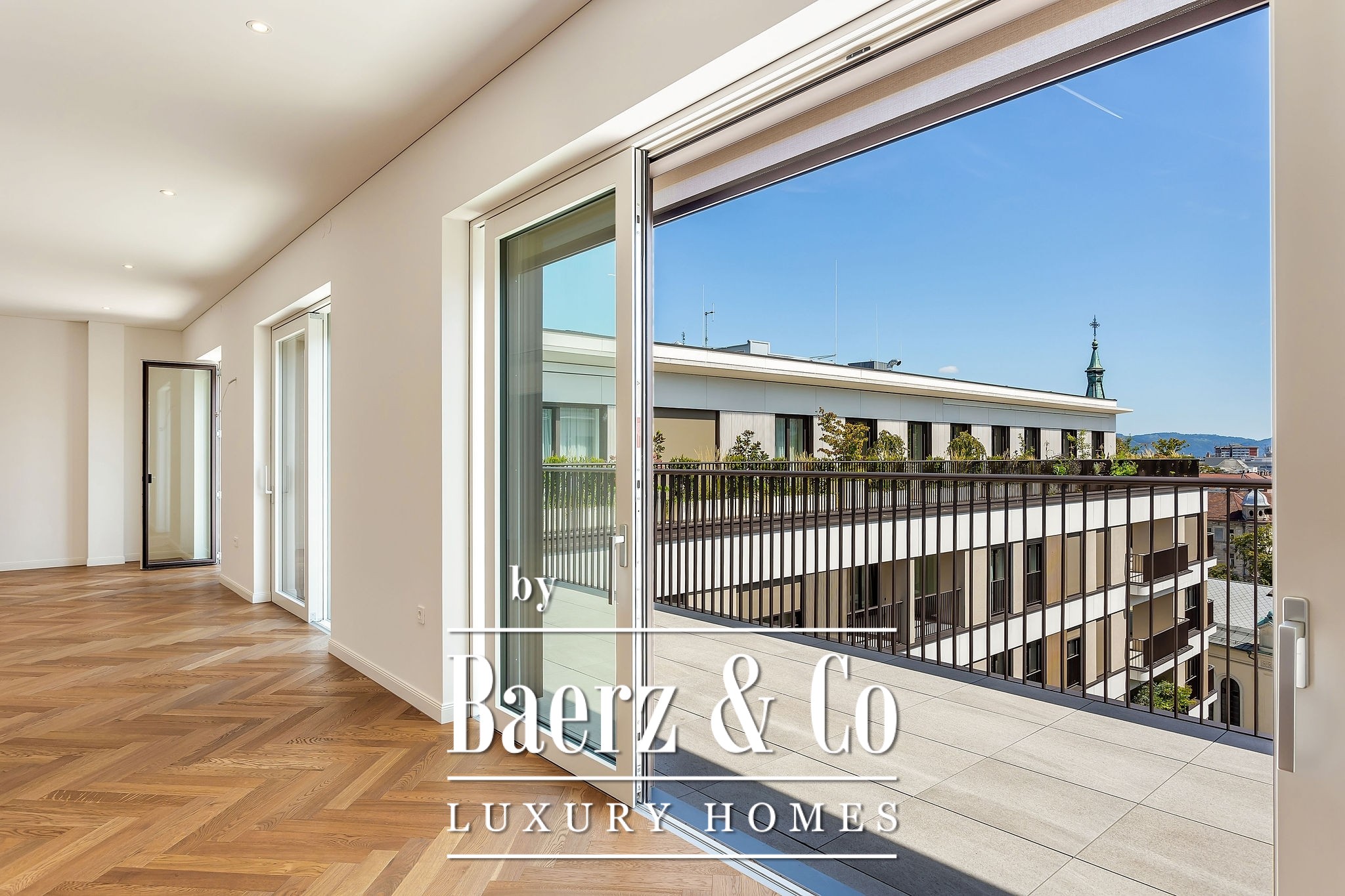 The apartment features elevated ceilings and floor-to-ceiling windows up to 230 cm. It is partially furnished with high-end furniture and Bosch appliances. Bathrooms and sanitary areas are equipped with premium fixtures and ready for immediate move-in.