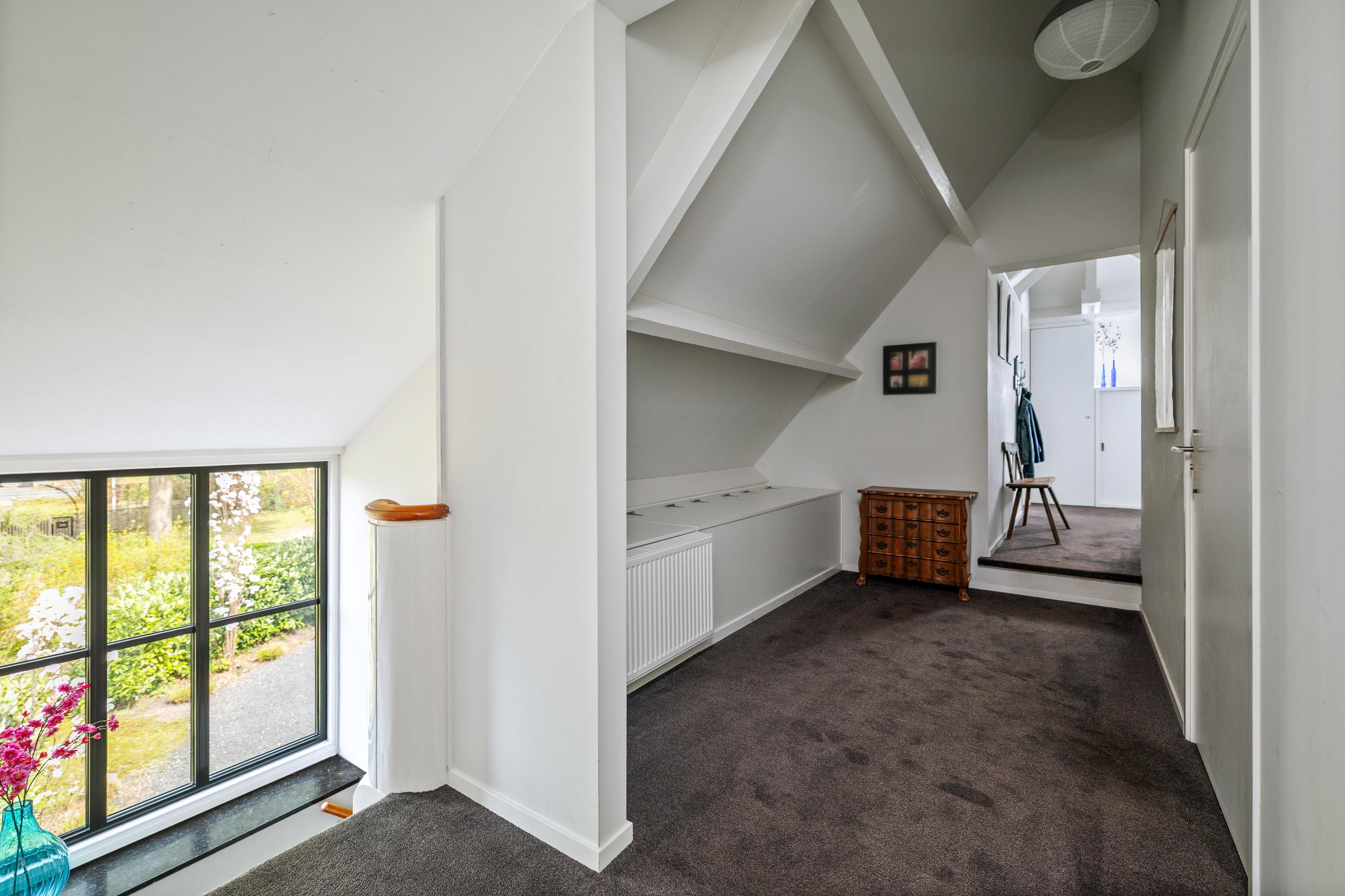 Space is in abundance, as the property sits on a generous plot of approximately 1,755 m². At the front is a charming garden with a characteristic semi-circular driveway. Beside the house stands a spacious, detached brick garage with cavity walls and an upper floor—ideal for parking a classic car, storing bicycles and accommodating a workbench. The upper level offers excellent potential for creating an artist’s studio or hobby space.