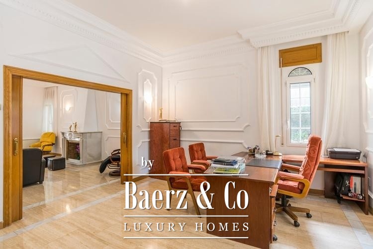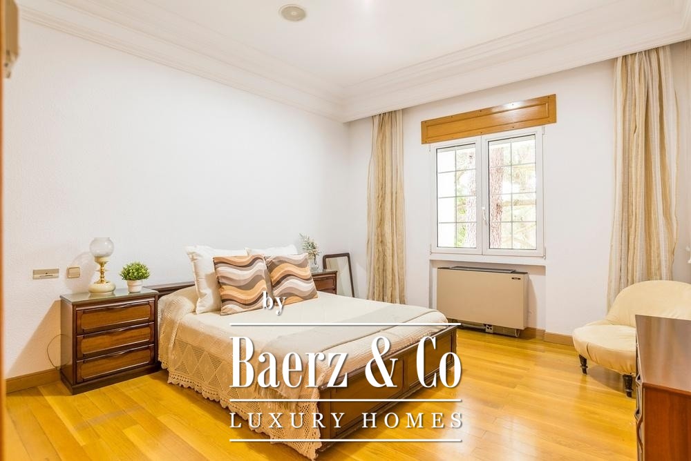 Villa Madrid El Plantío offers a rare opportunity to inhabit one of the city’s most discreet residential enclaves. Set within a private 3,105 m² plot on Madrid’s western edge, this substantial villa commands approximately 952 m² of living space organized over several levels. The focus is on architectural clarity and quality, with interiors appointed in white Macael marble and solid wood, creating a quiet sense of permanence.