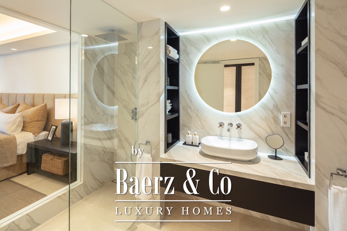 Apartment Marbella is presented at the heart of the five star Puente Romano resort, distinguished by a meticulous renovation that elevates everyday living. The living area spans 138 m², designed with an open plan arrangement that channels natural light throughout the south facing interior. A custom kitchen, crafted with oak cabinetry and Gaggenau appliances, merges seamlessly with the lounge, flowing onto a private terrace set against curated communal gardens.