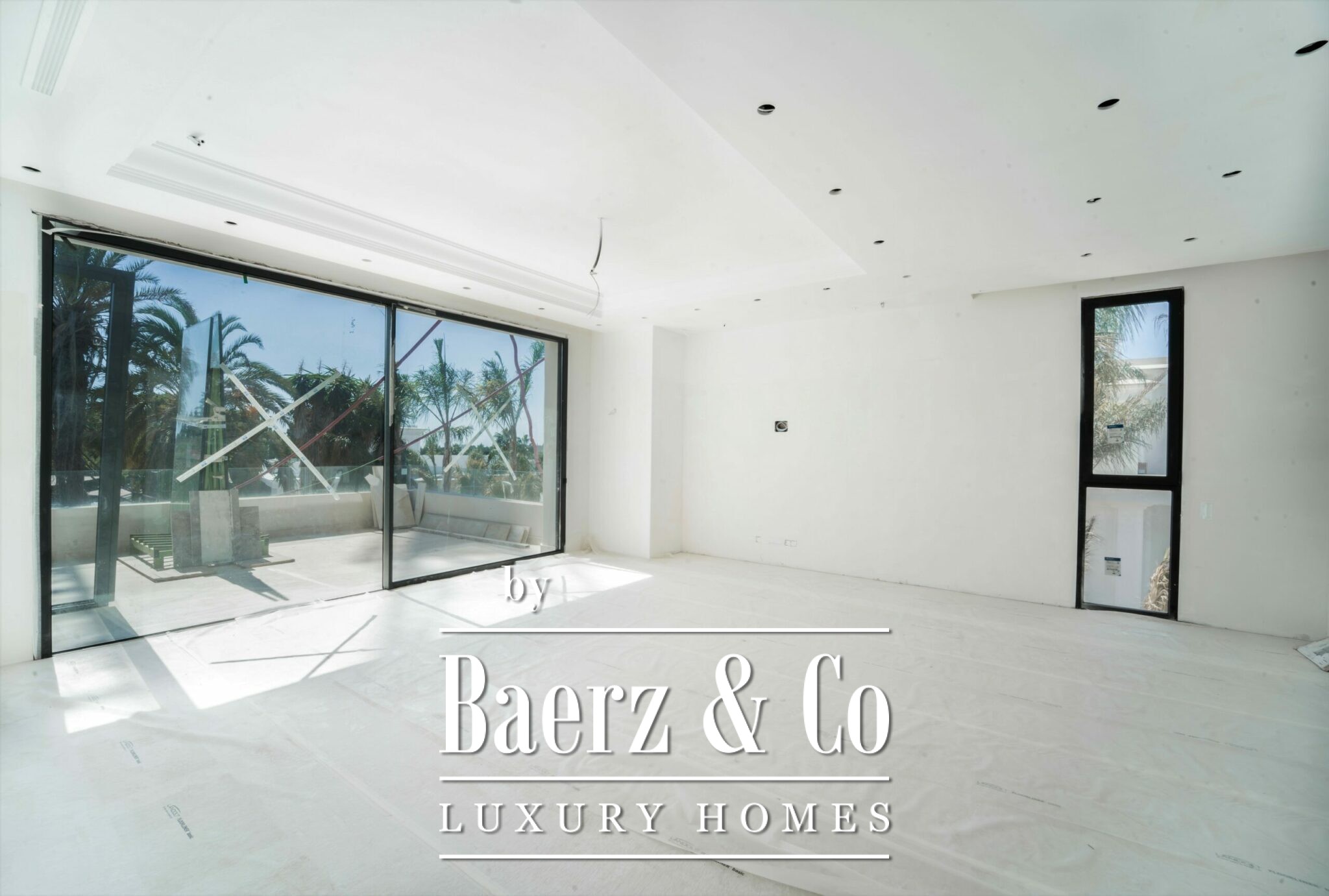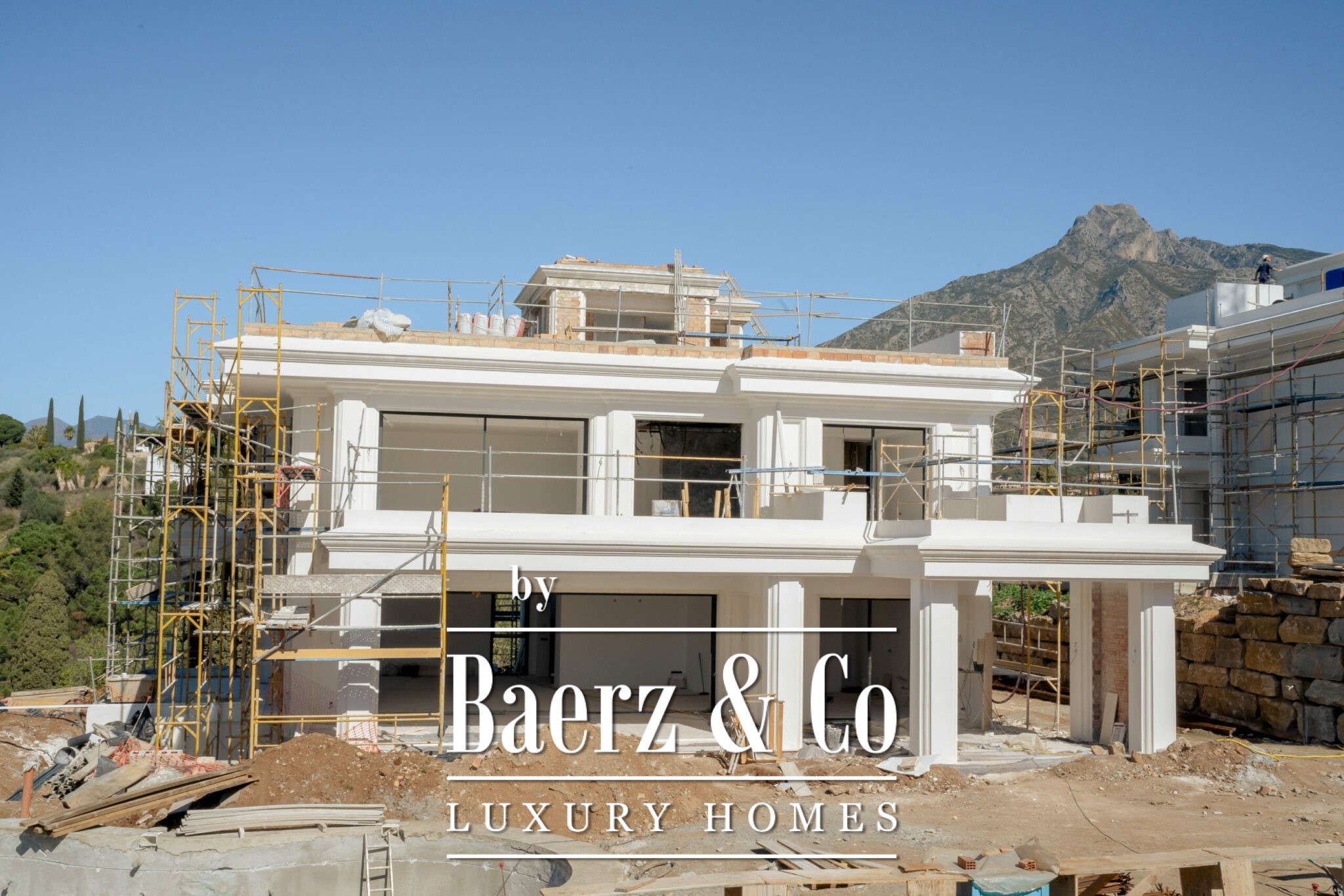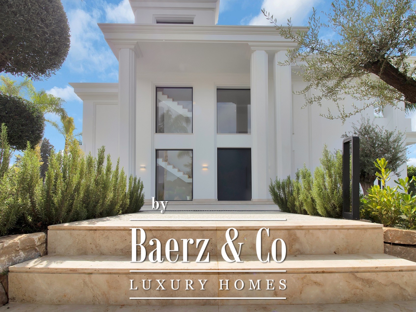 Villa Marbella Golden Mile is the focus of a distinguished new development, completed and set within one of the most exclusive residential enclaves in Marbella. This south-facing villa offers 647 m² of refined living space and is positioned on a 1,441 m² plot, capturing both serene sea and La Concha mountain views. The design bridges classic and modern aesthetics, with an elevated position enhancing both privacy and perspective.