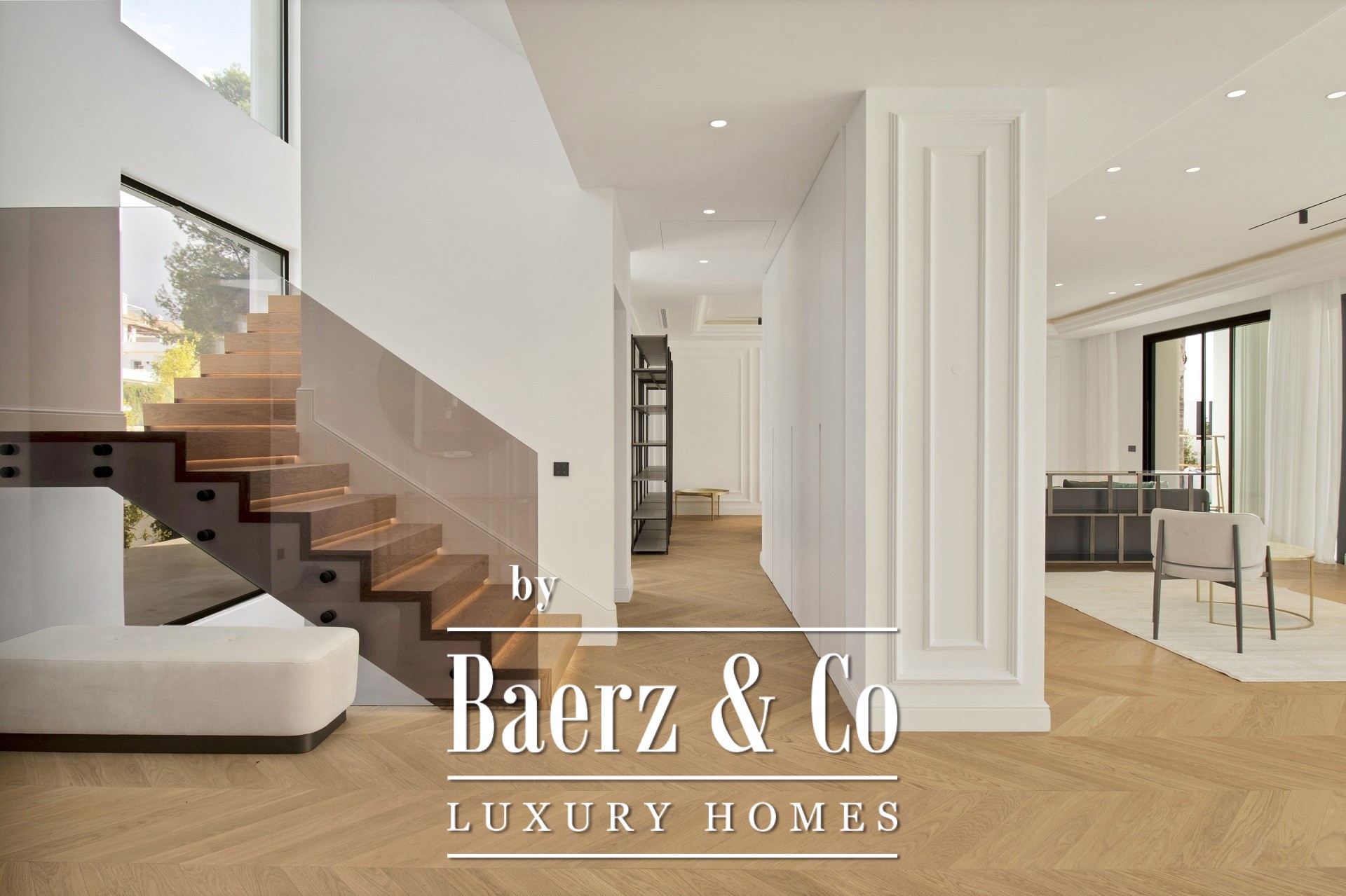 The basement accommodates three-car garage parking, guest bedrooms with natural light, a staff apartment, laundry zone, and an additional service kitchen with elevator access. 24-hour security, a gym, and proximity to Michelin-starred restaurants, international schools, and Marbella’s cosmopolitan amenities complete a setting united by comfort and exceptional quality. This luxury villa for sale in Marbella is discreetly positioned while delivering every element sought by buyers who value both presence and privacy.