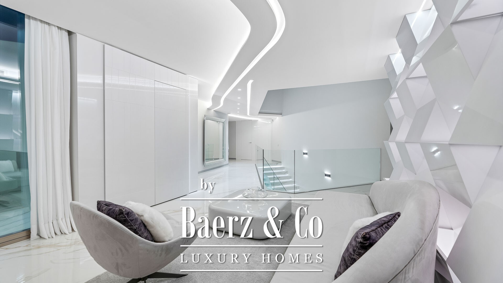 This architectural masterpiece boasts exquisite design and luxurious finishes throughout. As you step inside through the grand entrance hall, you are immediately greeted by the open-plan living and dining area, seamlessly connected to a partially enclosed kitchen. From here, you can access the marvelous terrace, offering panoramic views of the glistening sea. On the same floor, a master bedroom suite awaits, providing a haven of tranquillity and indulgence. Adjacent to it, you'll find a unique office space with a modern boat-style design, featuring double-height ceilings and surrounded by water—an inspirational setting for your work or creative endeavors. Additionally, there is a guest toilet for added convenience. To effortlessly move between levels, a private lift is at your service, granting access to the basement or the first floor. The basement is bathed in natural daylight and features a state-of-the-art garage capable of accommodating up to 5 cars. Furthermore, there is an additional bedroom and a versatile multi-use room that can be transformed into a private gym, sauna, bar, or home cinema, catering to your personal desires. Completing the basement are a laundry room, a storage room, and a spacious technical room. Ascending to the first floor, you will discover three out of the four en-suite bedrooms, each offering breath-taking views of the sea. The master suite on this level is a true embodiment of luxury and space, providing the utmost comfort and serenity. A crowning jewel of this extraordinary property is the rooftop terrace, where you can unwind and bask in pure bliss. Immerse yourself in the Jacuzzi pool or lounge on the expansive decking areas, all enclosed with glass walls that guarantee uninterrupted vistas of the sea, Africa, Gibraltar, and the Bay of Marbella. Notable features of this prestigious villa include under-floor heating throughout the property, an advanced alarm system, 24-hour security for peace of mind, and a cutting-edge home automation system. Moreover, you will enjoy direct access to the beach, allowing you to relish the sun, sand, and sea at your leisure.
