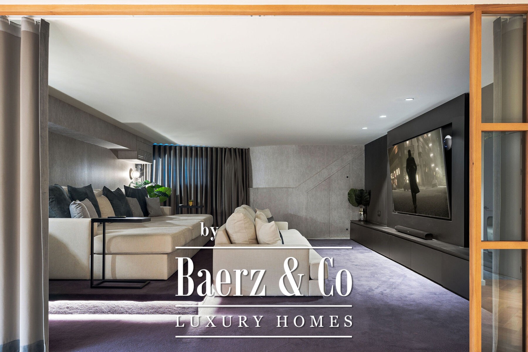 The lower ground level encourages relaxation and entertainment, with a dedicated leisure space including a pool table, bar, home cinema with Dolby Stereo Surround, private gym, and a wine cellar anchored by the rugged texture of the mountain. Outdoors, the garden and terrace with BBQ area and shower capture Marbella’s year-round climate, while amenities such as communal pool, jacuzzi, air conditioning, underfloor heating, and 24-hour security enhance daily comfort.