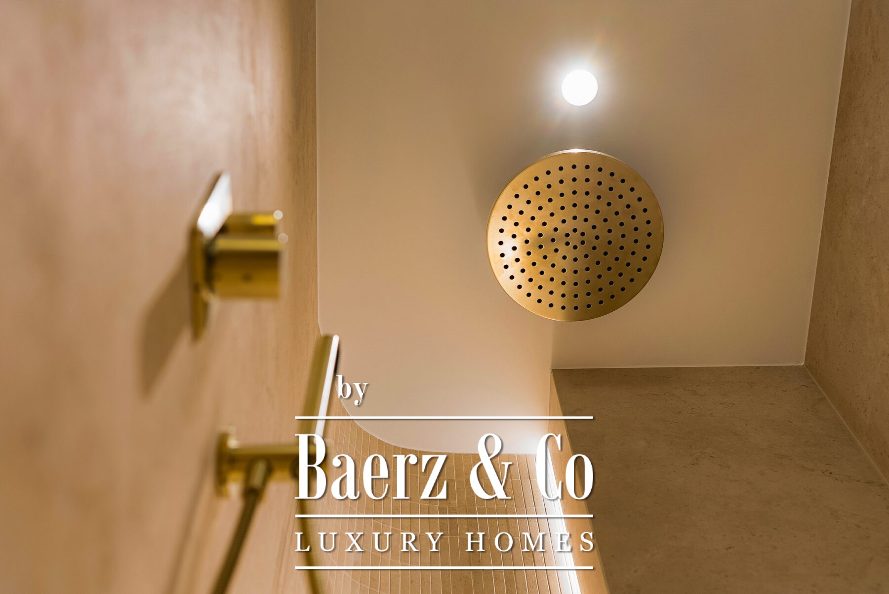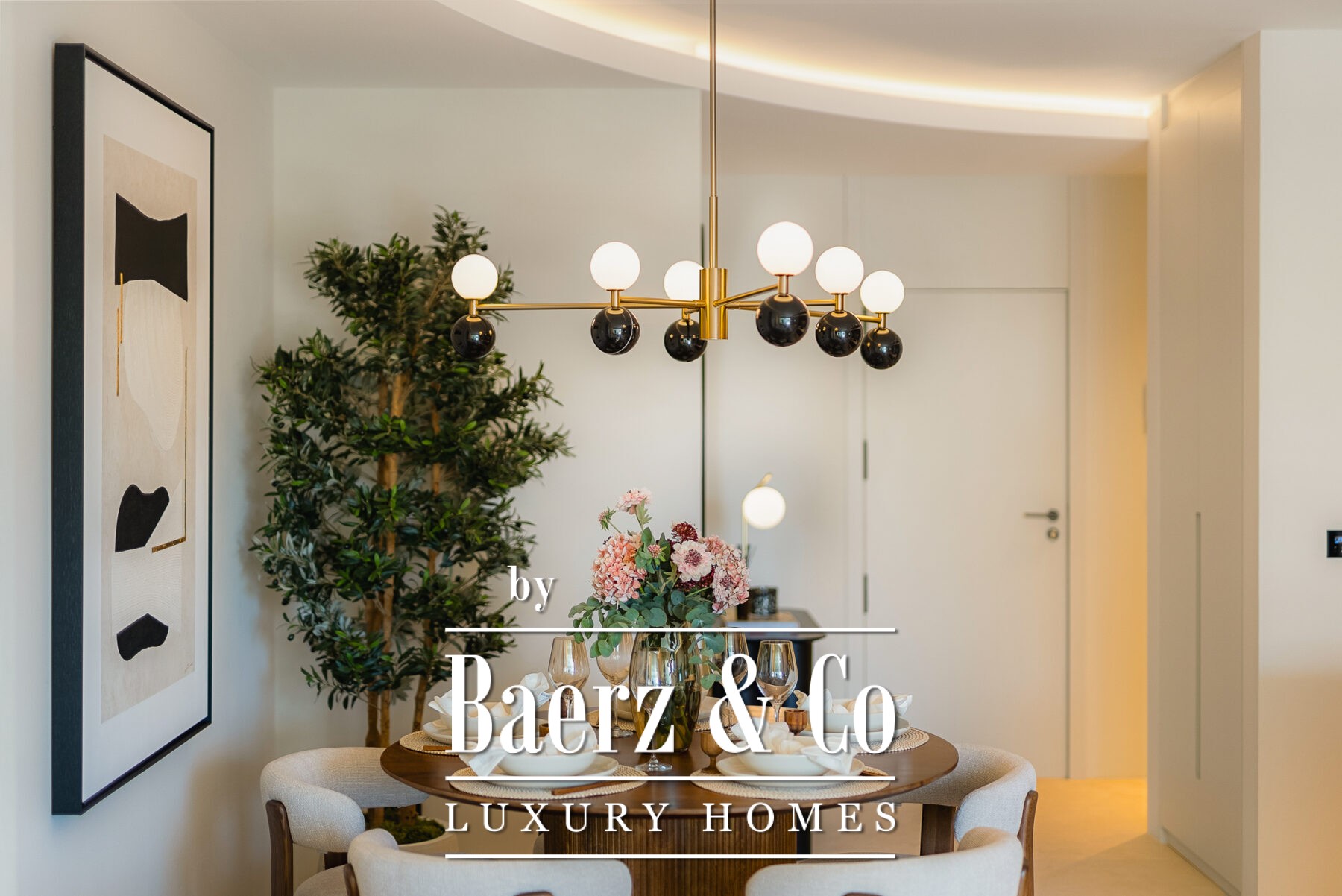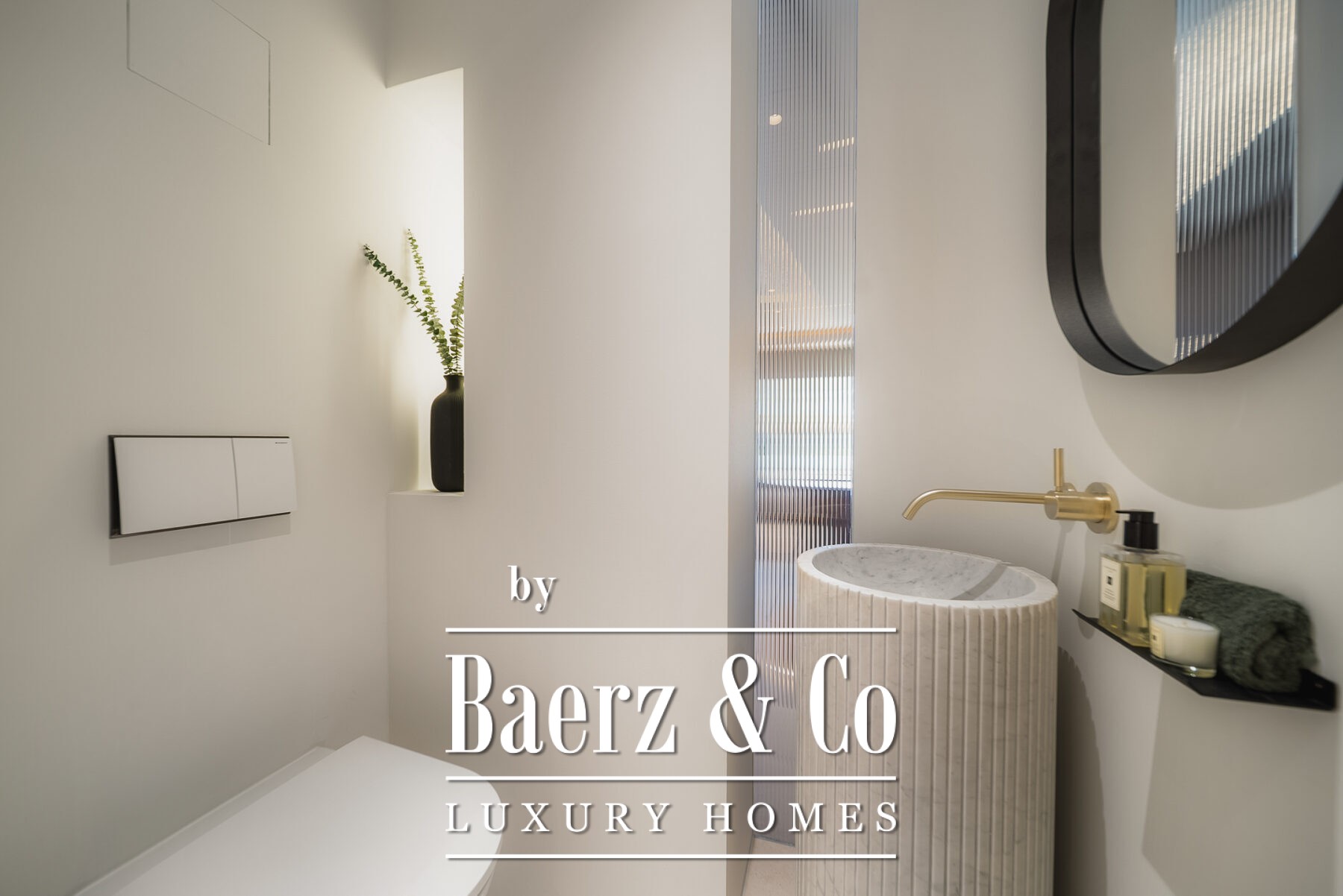 The architectural rhythm subtly honors the building’s iconic round forms, balancing Mediterranean character with current design clarity. Every detail, from underfloor heating to bespoke lighting, invites a sense of refined ease.