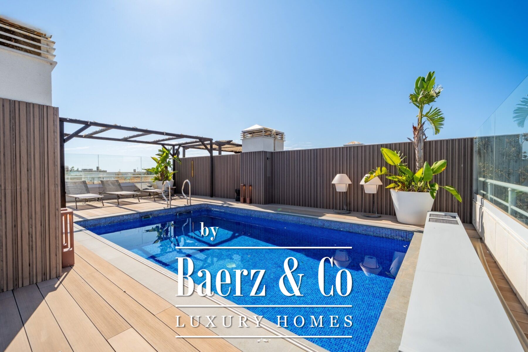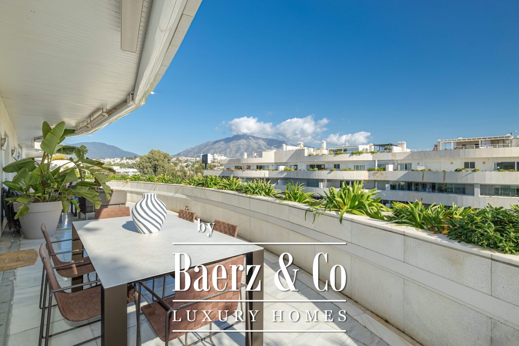 This duplex penthouse Marbella is set within a prestigious residential complex in Puerto Banús, defined by elegance, discretion, and privileged access to the Mediterranean. Encompassing 632 m², including two expansive terraces, the residence has been thoroughly renovated with uncompromising attention to material and finish. Each detail, from the home automation systems to the carefully curated lighting, supports a life of refined ease.