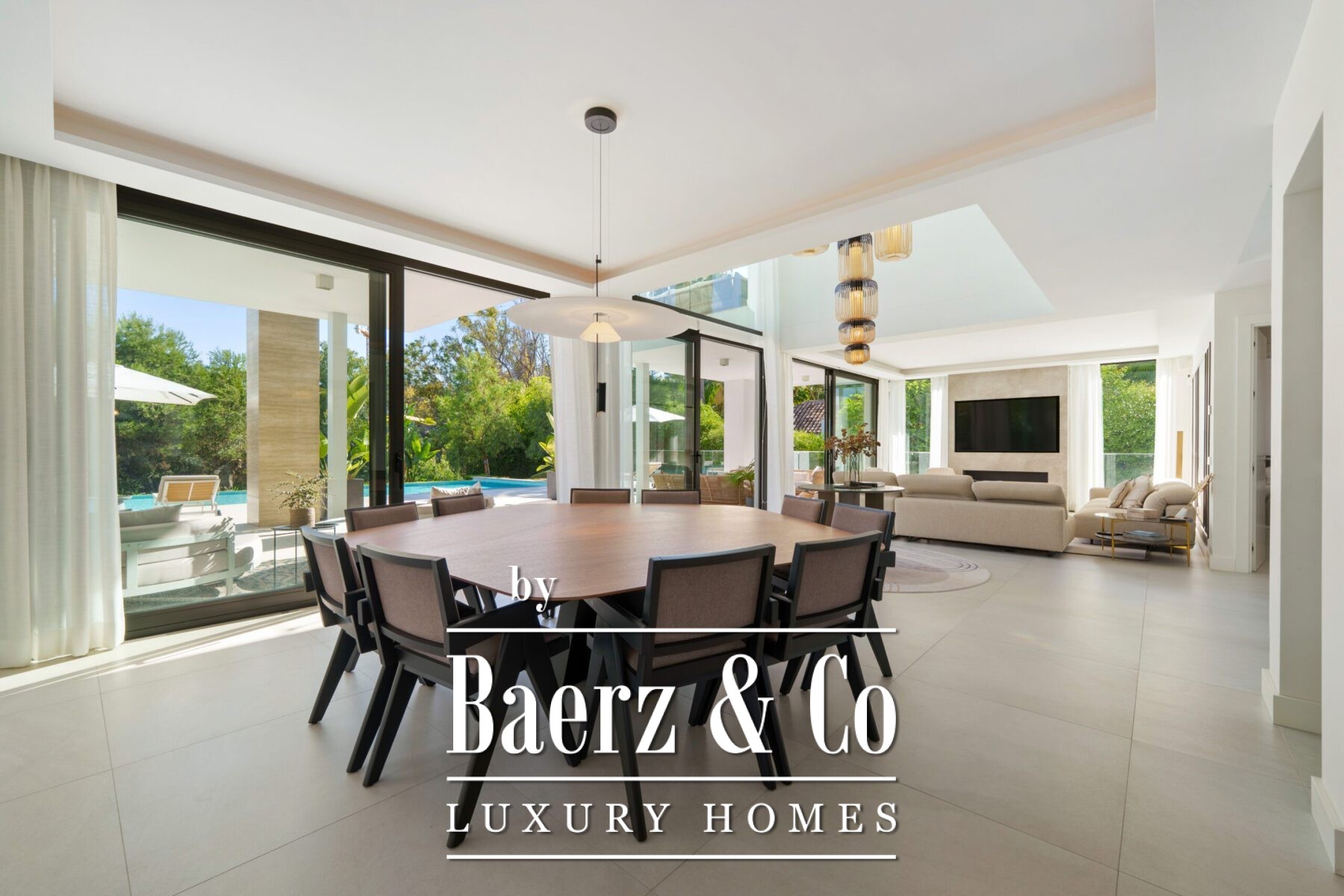 Set within a 24-hour security gated community, this villa complements its serenity with a private garage, advanced amenities, and proximity to golf, the renowned Puente Romano Hotel, and Marbella Club Hotel. The residence delivers the essence of the Marbella lifestyle, blending privacy and sophistication with rare access to both urban vitality and tranquil indulgence. For those seeking a luxury villa for sale in Marbella’s Golden Mile, this property offers a rare union of architectural clarity and luminous southern living.