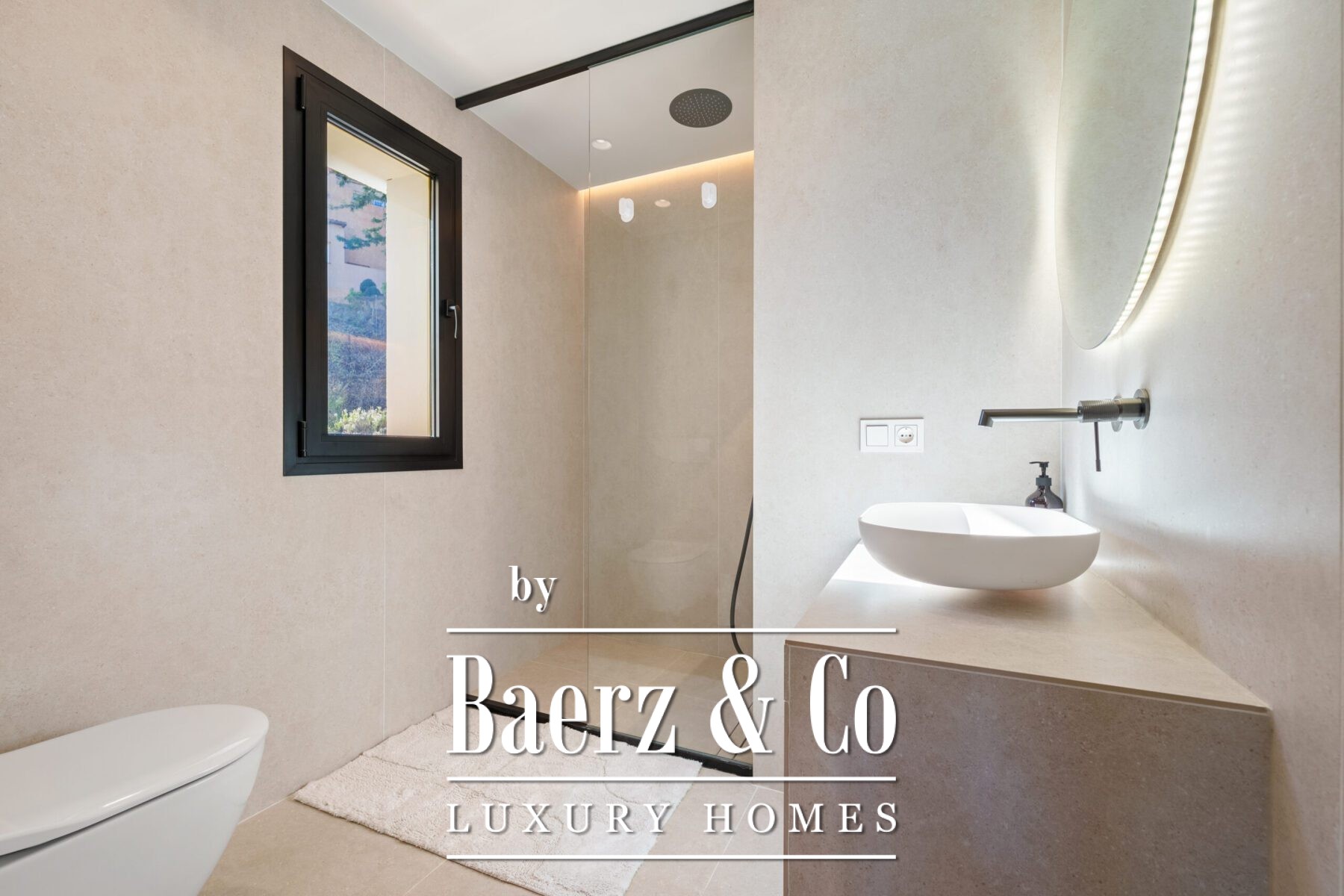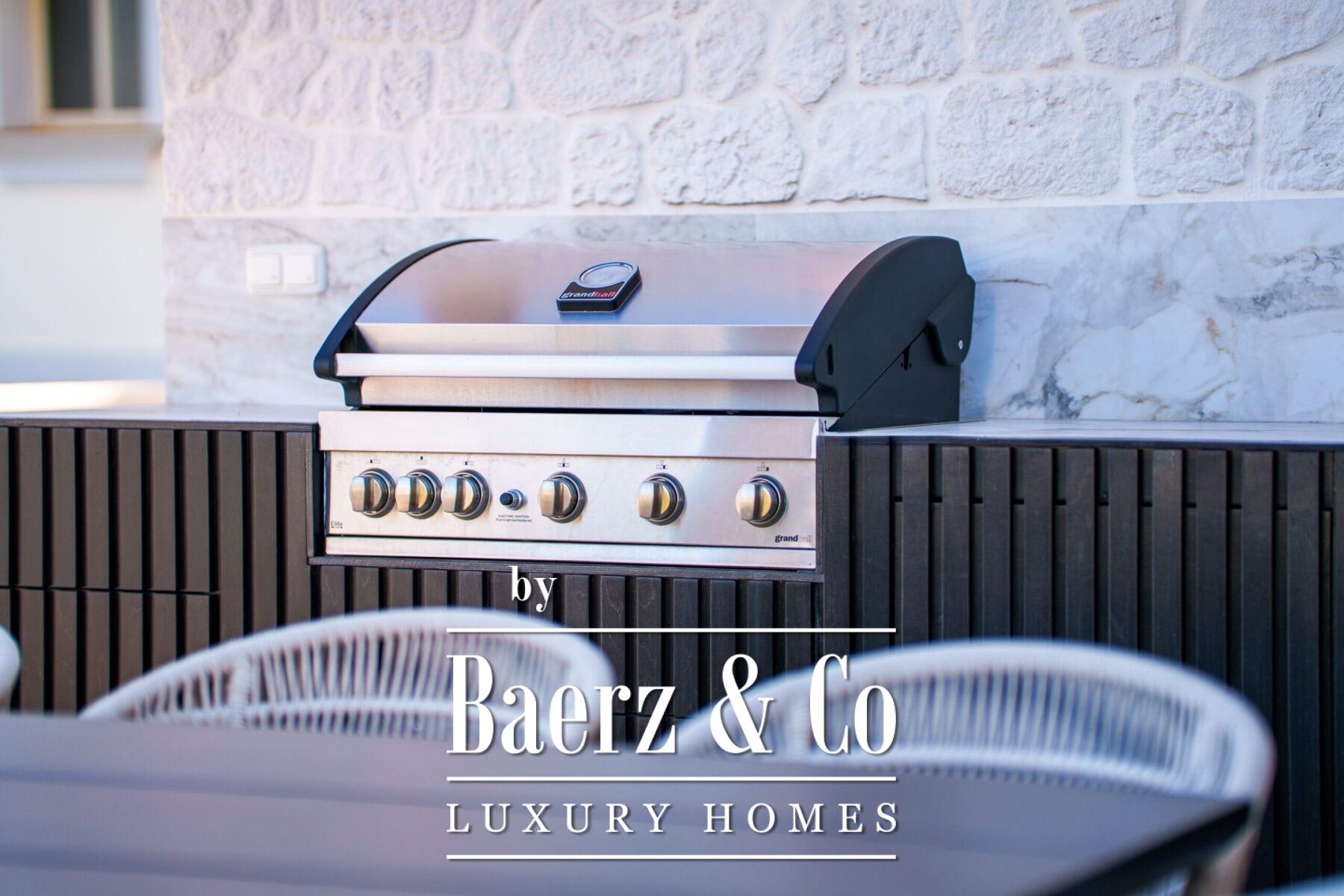 Every detail speaks to quiet excellence: herringbone oak flooring, ultra-UV triple-glazed windows, double glazing, and high-quality UV filtration. The outdoor kitchen and barbecue area invite elegant entertaining, while the upper floor’s private plunge pool and sunlit terraces offer moments of solitude against a backdrop of Mediterranean vistas. Fully furnished, this property includes a fitted kitchen, air conditioning, fitted wardrobes, and is presented in excellent condition.