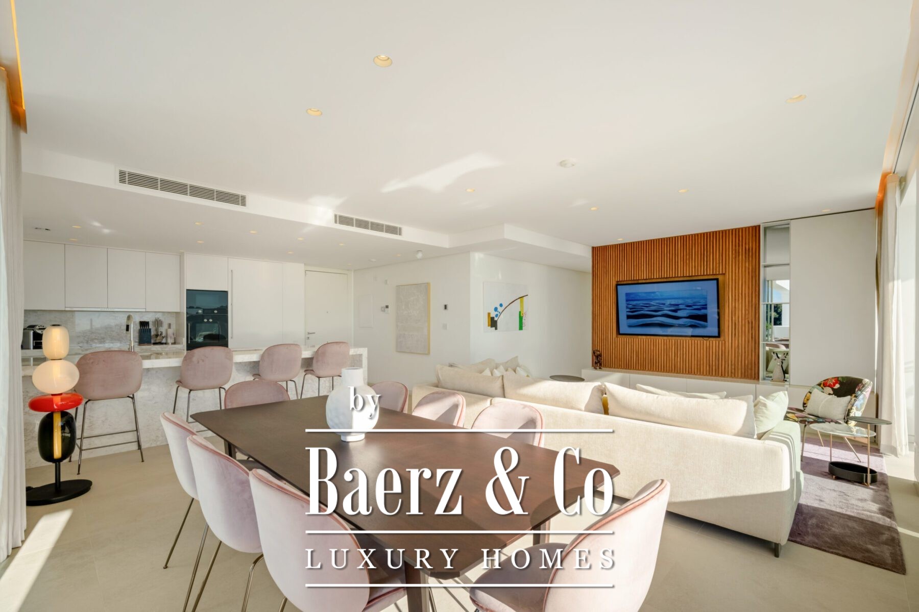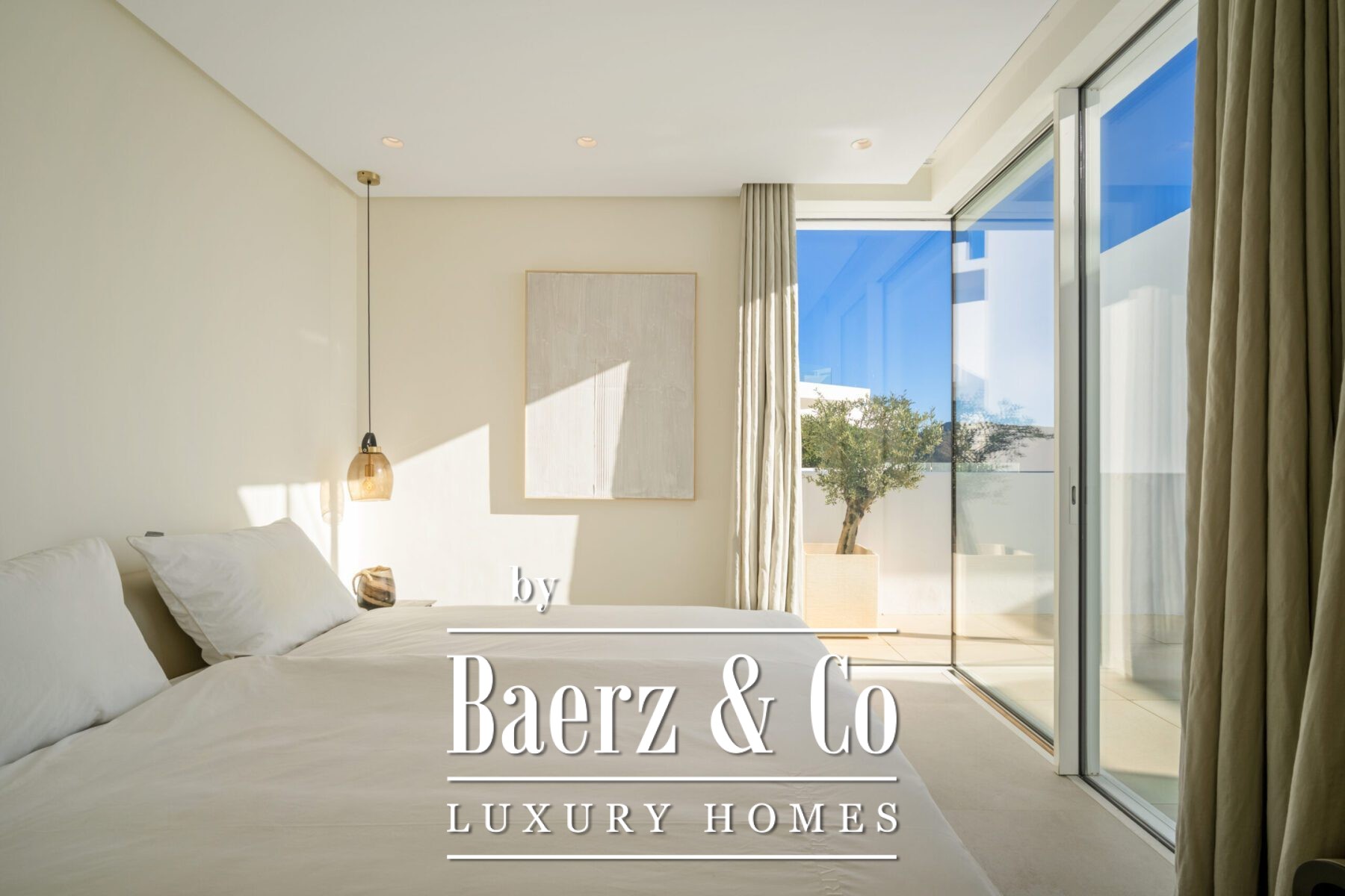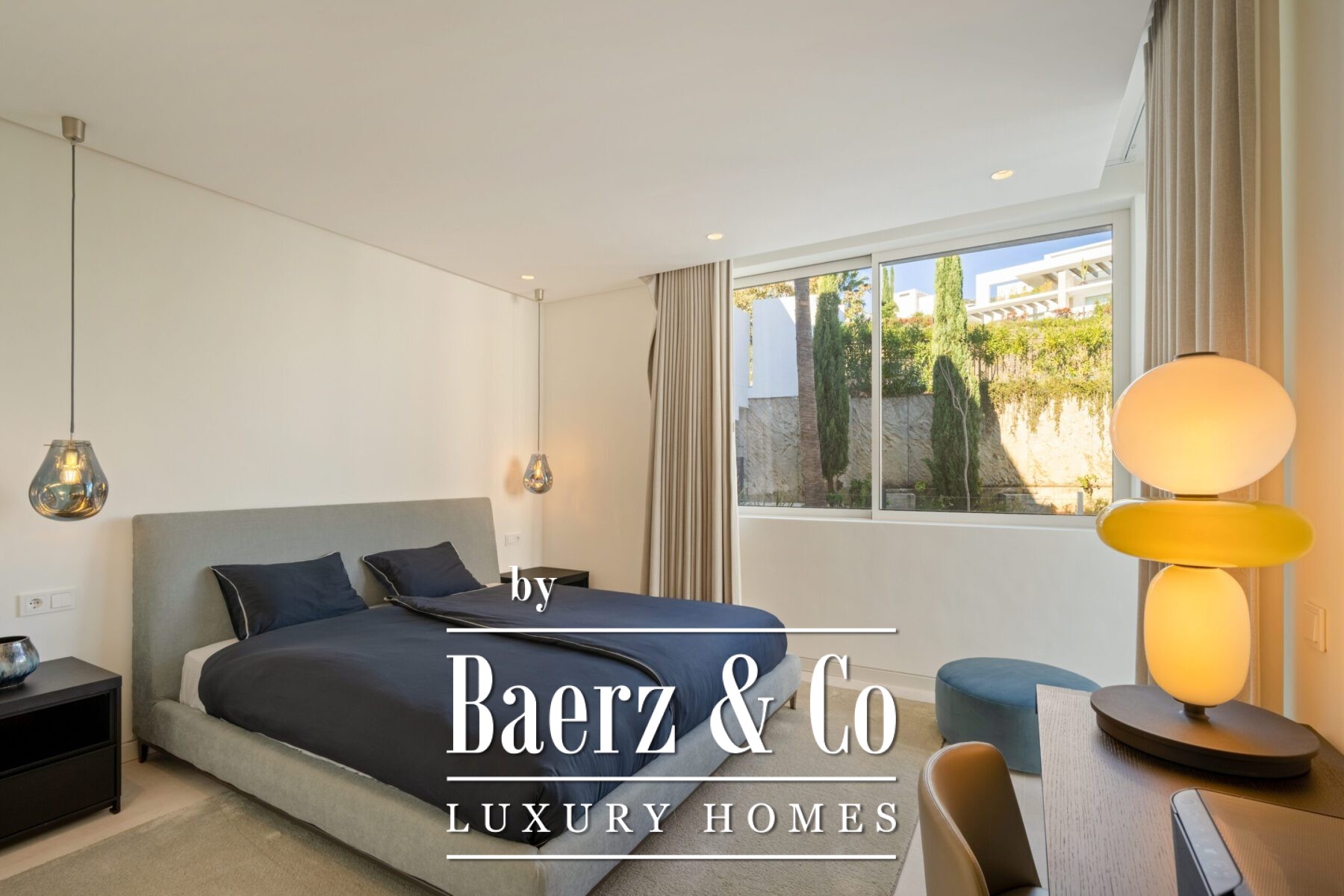 Three en-suite bedrooms, each with terrace access, are finished to the highest standards and further enhanced by a smart home demotic system and underfloor heating throughout. Additional highlights include security cameras, three underground parking spaces, and a private storage room. This property is fully furnished with designer pieces, ensuring a genuine turn-key experience for those seeking a luxury villa for sale in Marbella.