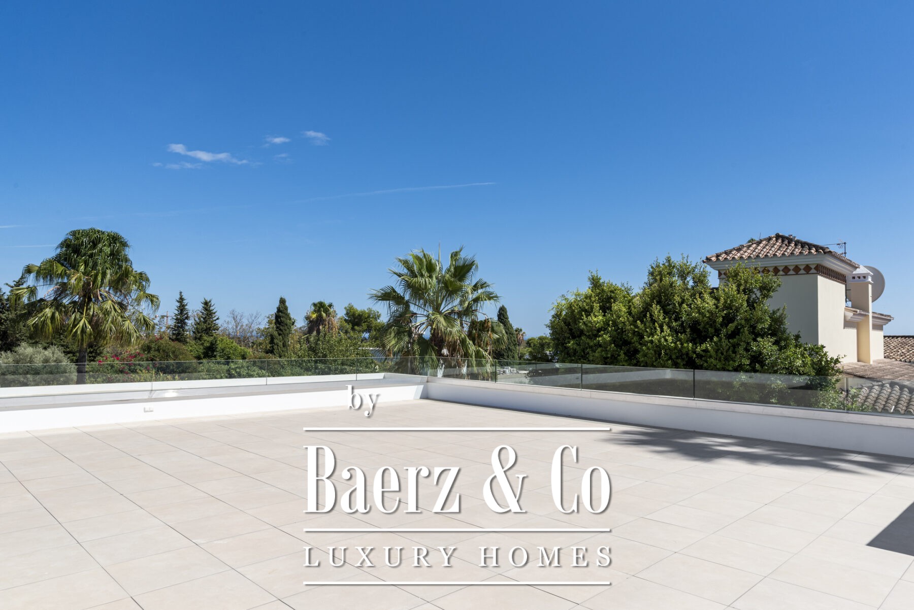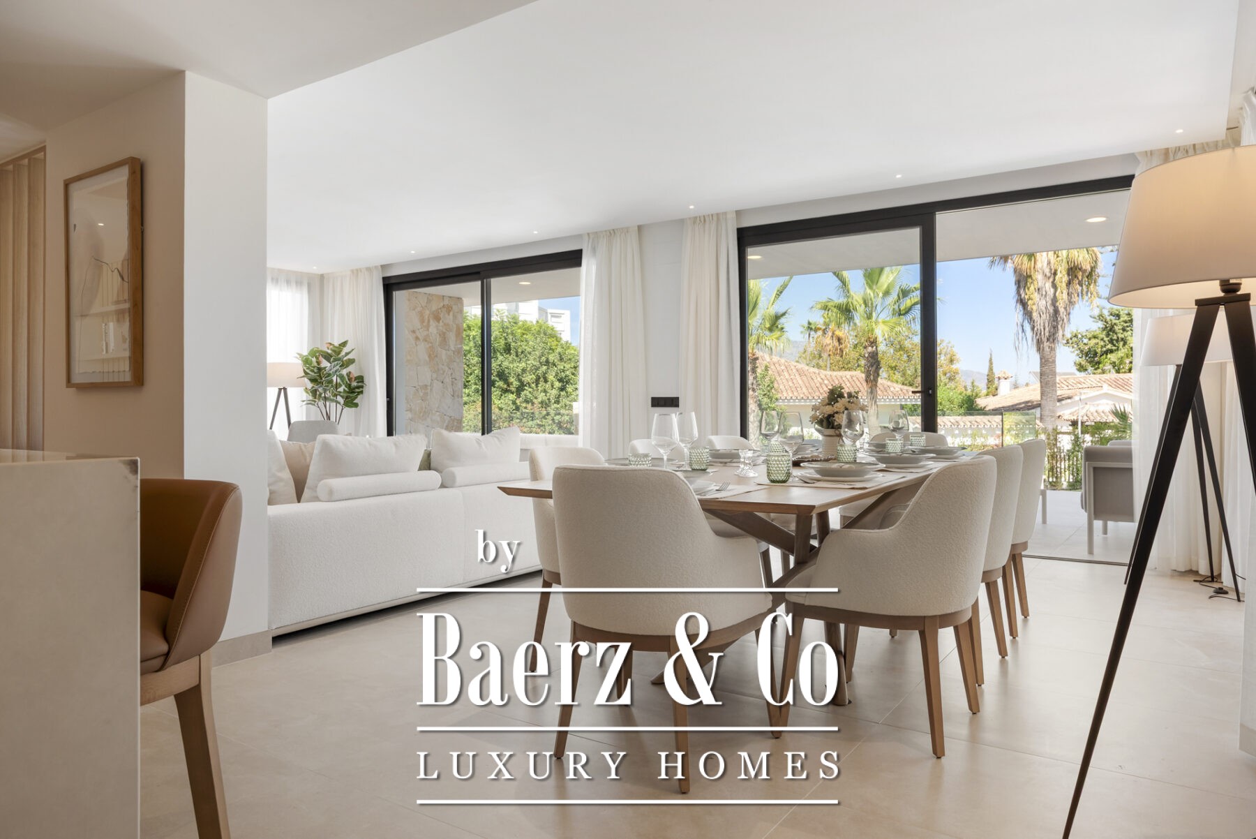 Villa Marbella with sea and mountain views welcomes you to an atmosphere of refined Mediterranean living. Ideally situated within walking distance of Guadalmina Golf Club and only minutes from the coastline, this 320 m² villa offers both seclusion and accessibility in Marbella’s coveted surroundings.