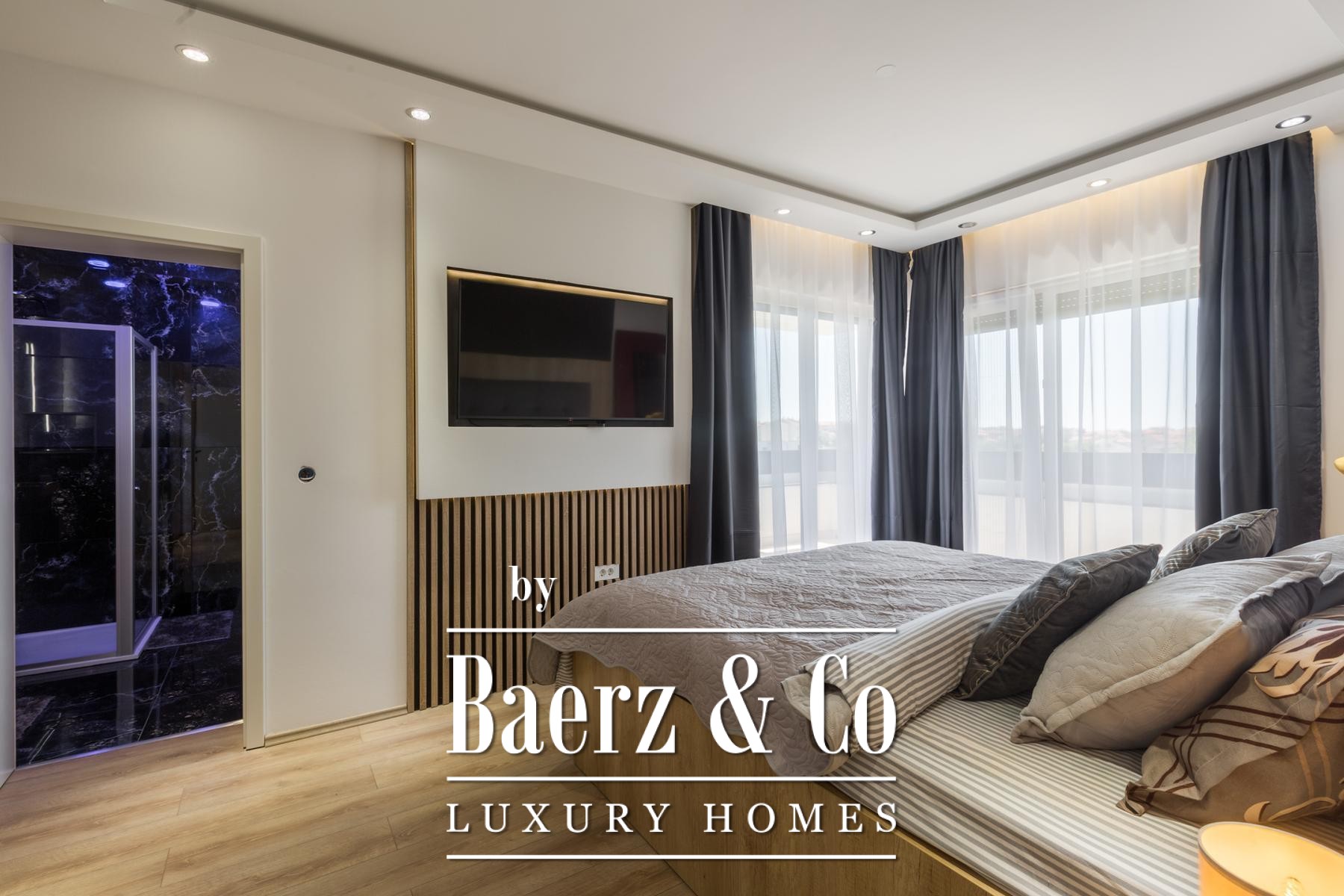 throughout the staircase. This floor houses three elegant and spacious bedrooms, each meticulously furnished with an emphasis on comfort and privacy. Each bedroom features its own modern en-suite bathroom, equipped with premium sanitary ware and designer details, ensuring complete comfort for every resident or guest. The master bedroom particularly stands out, offering generous space, providing a private sanctuary for rest and relaxation. All three bedrooms have direct access to a large covered terrace, offering views of the surroundings and ideal for morning coffee or evening relaxation in the fresh air.This exceptional property is equipped with the latest 'smart home' system, allowing you full control over lighting, temperature, security, and other villa functions via smartphone or tablet, achieving an unprecedented level of comfort and energy efficiency. The fireplace in the living room provides additional warmth and ambiance during cooler months, while a dedicated storage room within the villa offers a practical solution for belongings. The villa comes fully furnished and ready for immediate occupancy, with carefully chosen furniture and decorations that reflect a modern yet warm style.The villa's entrance courtyard is cleverly designed with ample space for parking three vehicles, discreetly located in a lower terrain section, thus not disturbing the aesthetic harmony of the entire property. This is an ideal property for anyone seeking a luxurious family home, a peaceful holiday retreat, or an exceptional investment opportunity for tourism purposes. Medulin, with its rich amenities, beautiful beaches, and proximity to Pula and the Brijuni National Park, offers inexhaustible possibilities for enjoying nature, culture, and active leisure. This villa represents the pinnacle of contemporary living in the heart of Istria, offering privacy, comfort, and incomparable beauty.Do not miss the opportunity to become the owner of this architectural gem in Medulin, where luxury meets nature, and modern design meets the warmth of a home. For more information about this beautiful villa and to arrange a viewing, we are at your disposal.