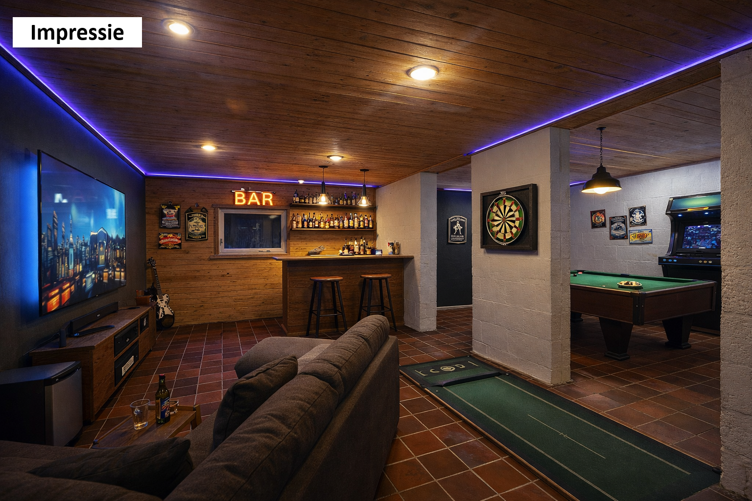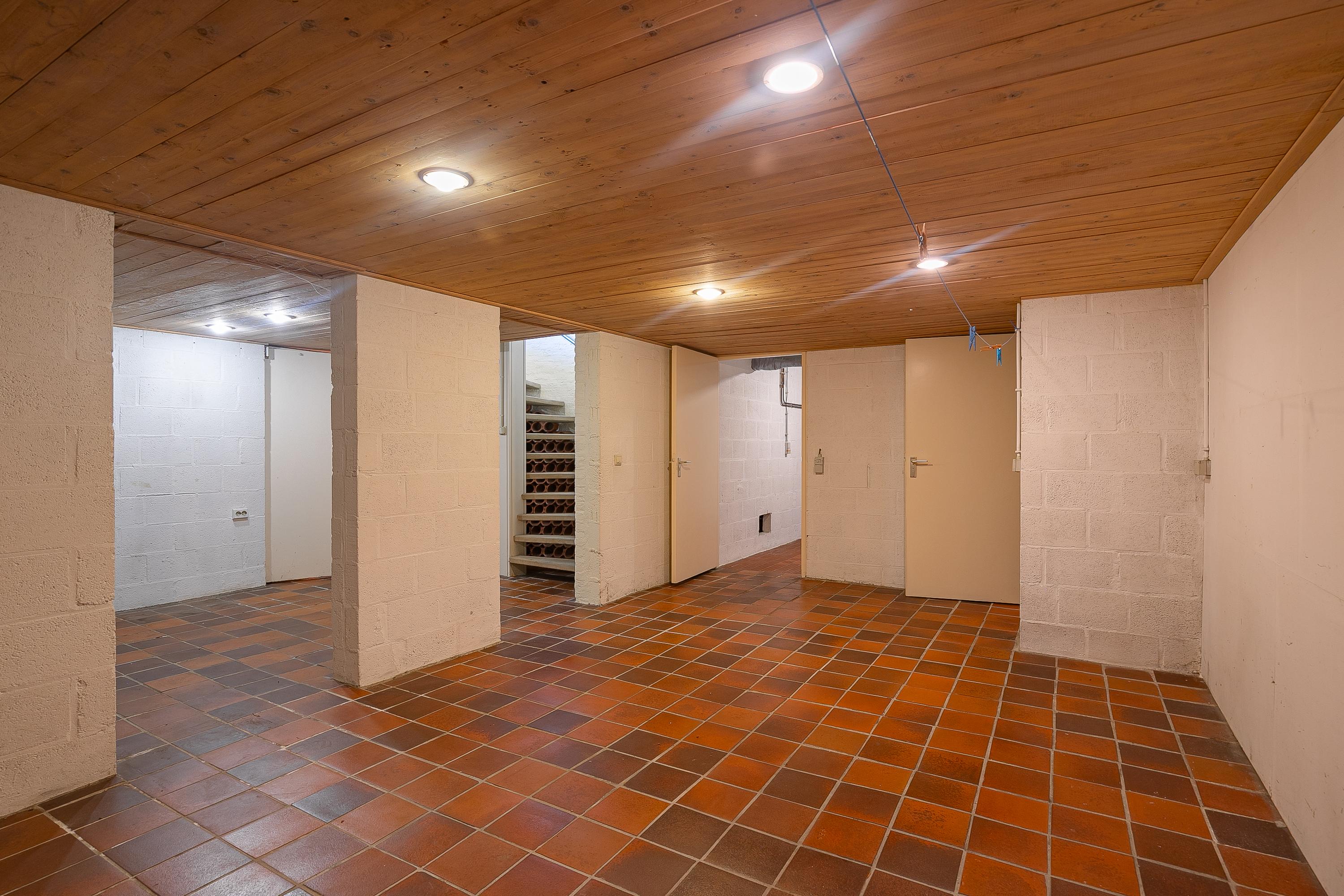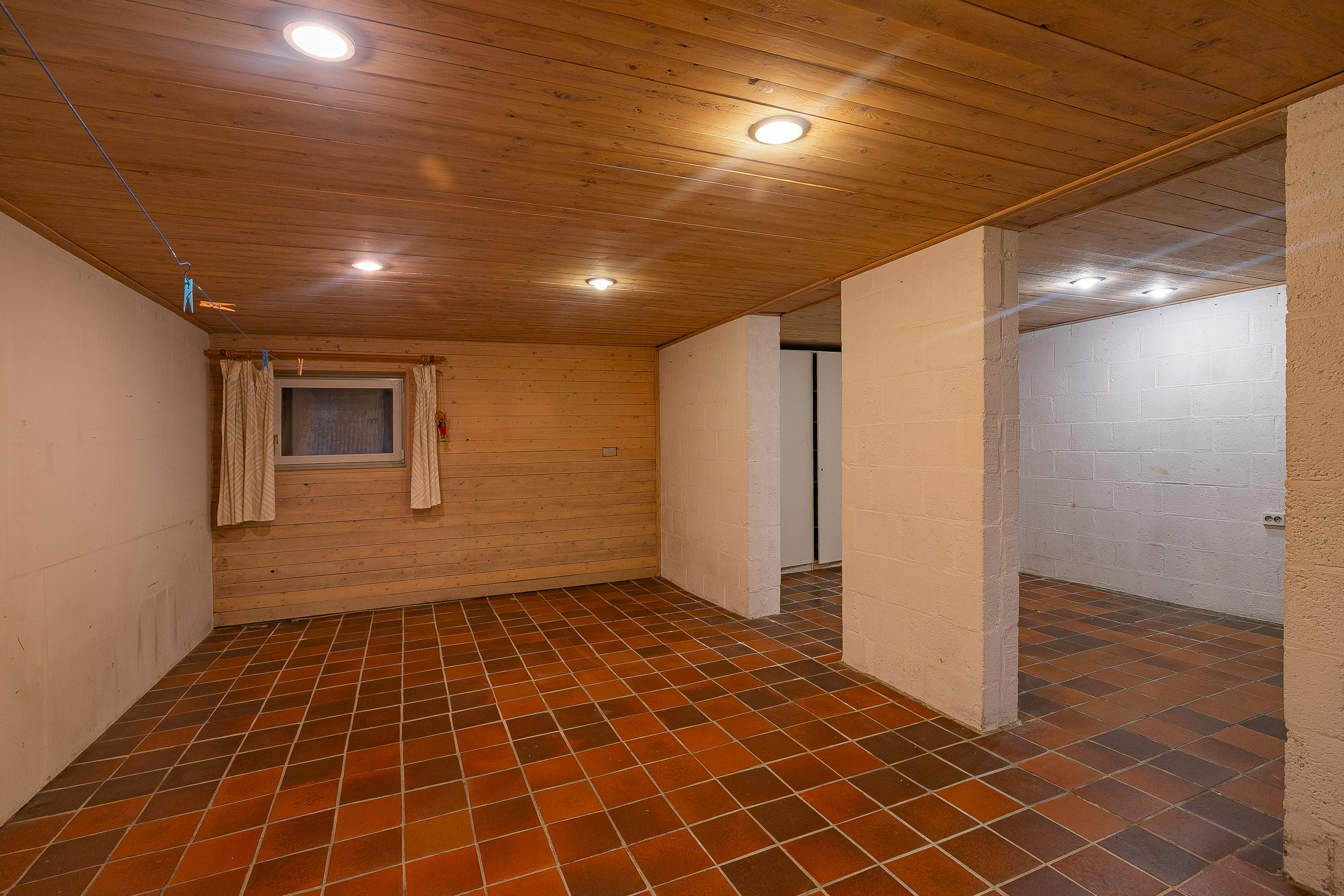 From the spacious driveway, which offers parking for several vehicles, you reach the spacious garage (approx. 42m²) which is equipped with a water connection, electric sectional door with wicket door, electrical outlets, and various storage and boiler rooms. In total, the basement measures approx. 102m². Next to the garage is a large laundry room, as well as a bathroom with shower and sauna. There is also a multifunctional room of approx. 34m² that provides access to the stylish staircase.