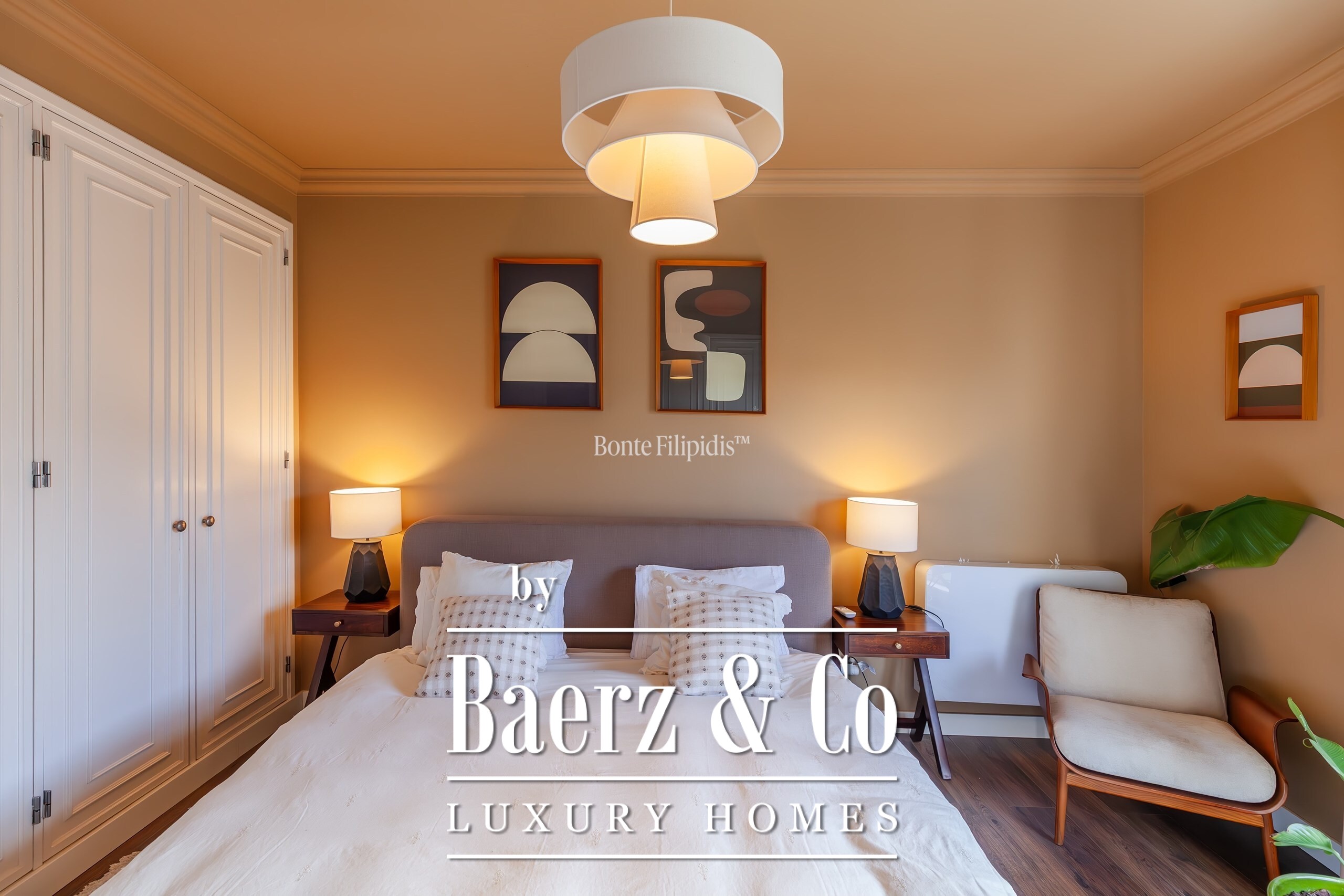 Each of the four bedrooms retains an understated sense of scale, complemented by three full bathrooms. The apartment merges traditional Lisbon elegance—high ceilings, wooden floors, original detailing—with considered modern comfort. The building provides lift access, secure parking, and thoughtful amenities.