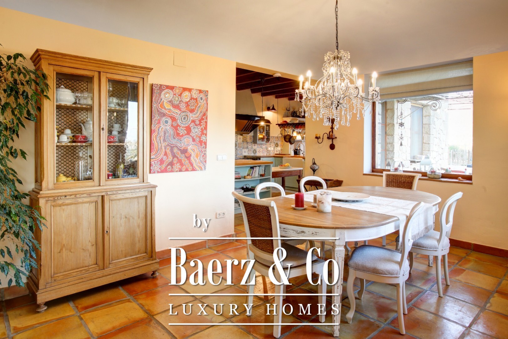 cozy evenings with friends. The outdoor spaces elevate the lifestyle to a higher level. From the impressive 143 m² saltwater pool to the professional 54 m² outdoor kitchen, each element encourages slow living and quality time under the Mediterranean sky. The surrounding plot offers both privacy and freedom, with carefully landscaped areas and open views of nature. This house is more than just a place to live; it is a private oasis designed for comfortable living, both indoors and outdoors. The generous living spaces are perfect for intimate family gatherings as well as large-scale events. Each space is designed with an emphasis on light, comfort, and quality, creating an inviting, refined atmosphere. Extras: - gas underfloor heating - 200 m³ water reservoir - 7 kW solar system - automatic access gate