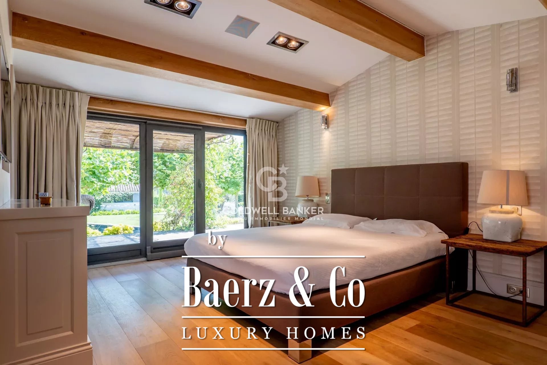 Outdoors, the atmosphere evokes calm social gatherings: a striking swimming pool, 130 m² pool house with brazier and summer kitchen, framed by mature gardens. Facilities including air-conditioning, fireplace, carport for two cars, and enhanced security. This villa for sale in Mougins invites a life at ease, in discreet proximity to local culture and global connectivity.