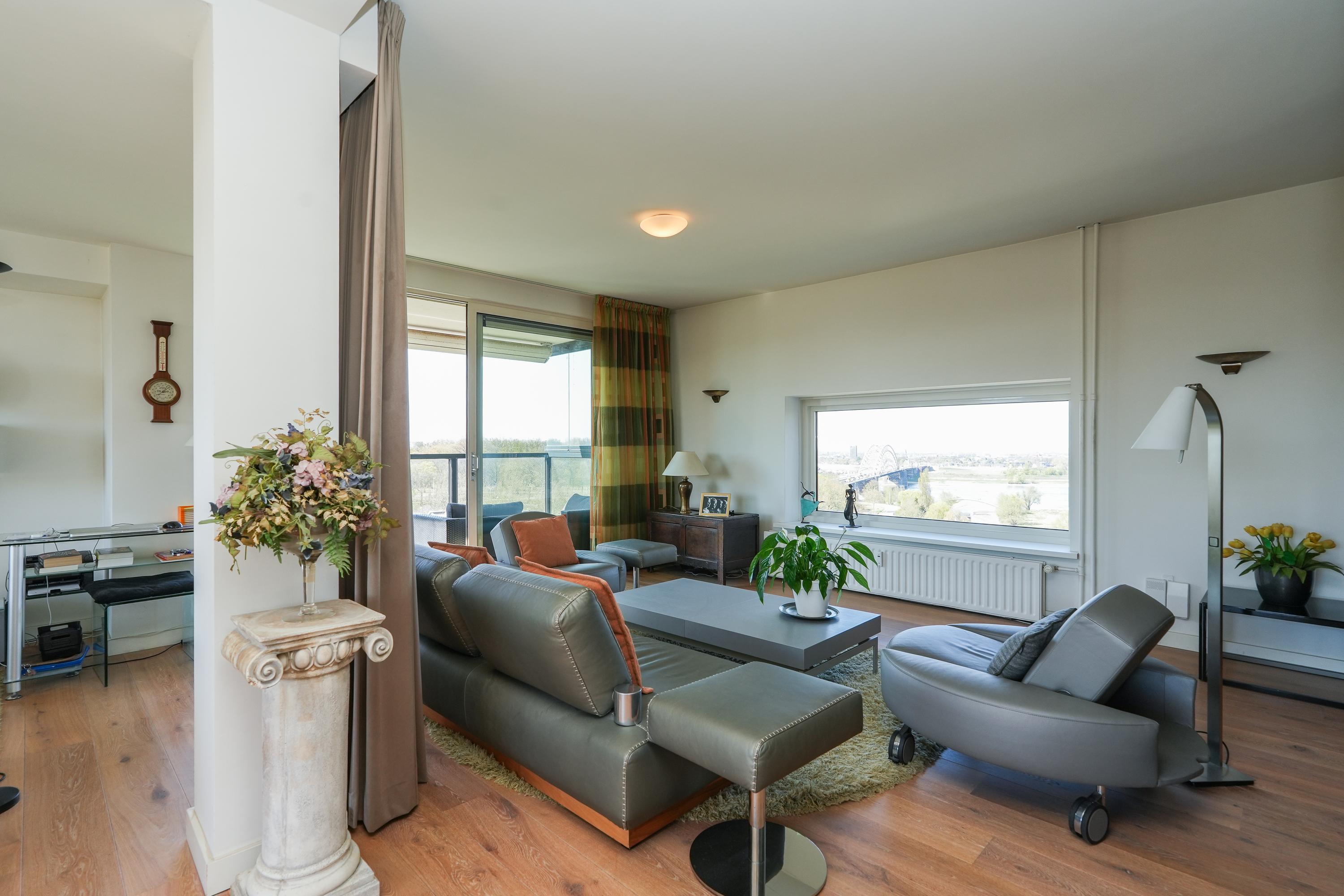 This portico apartment Nijmegen brings together space, light, and considered luxury in one of the city’s most sought-after neighbourhoods. Situated on the sixth floor of a well-maintained complex of nine storeys, the 226 m² apartment traces expansive city and river views through vast windows and four distinct balconies, creating an atmosphere reminiscent of a penthouse yet grounded in the comfort of a quiet, central address.
