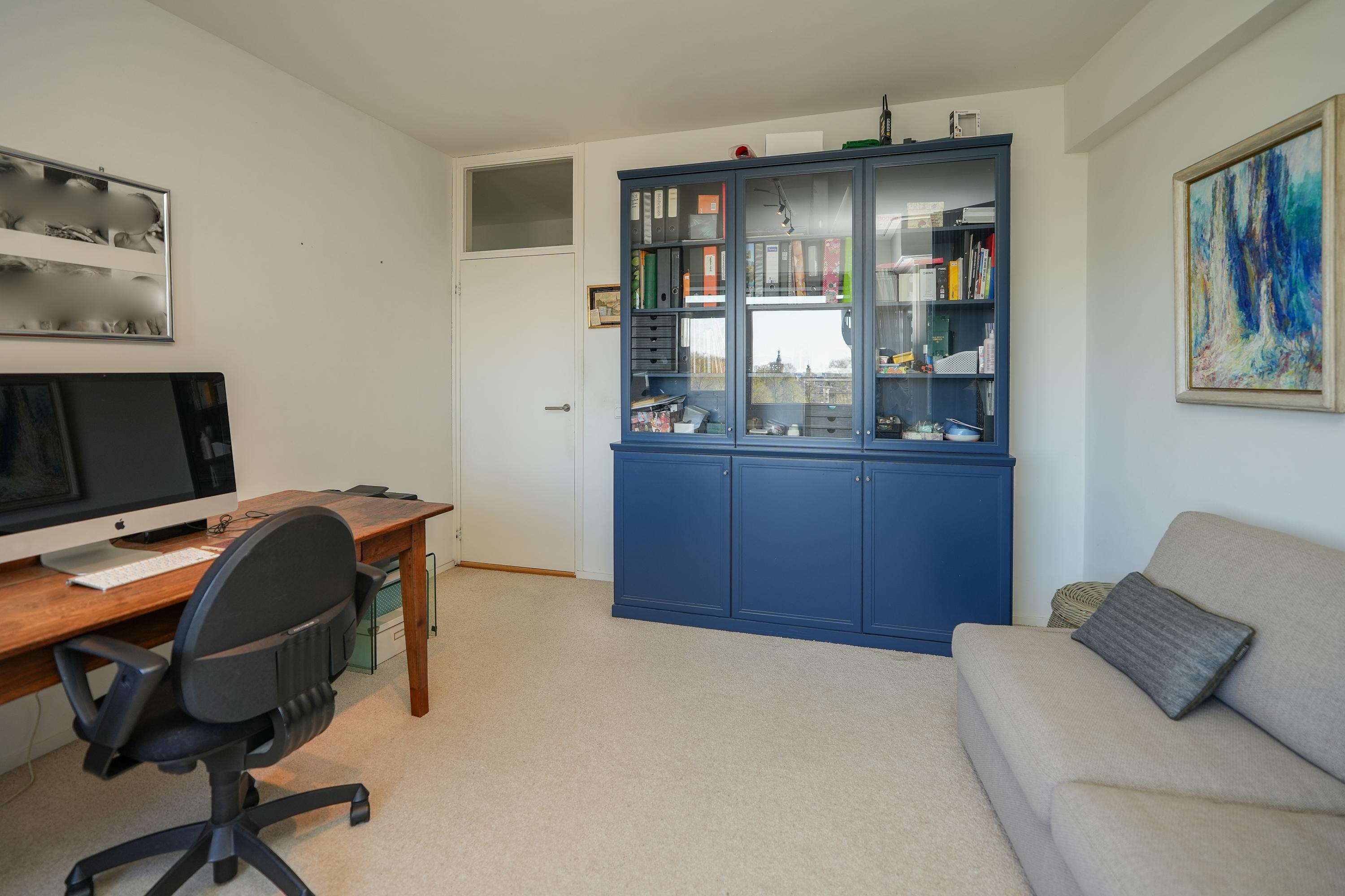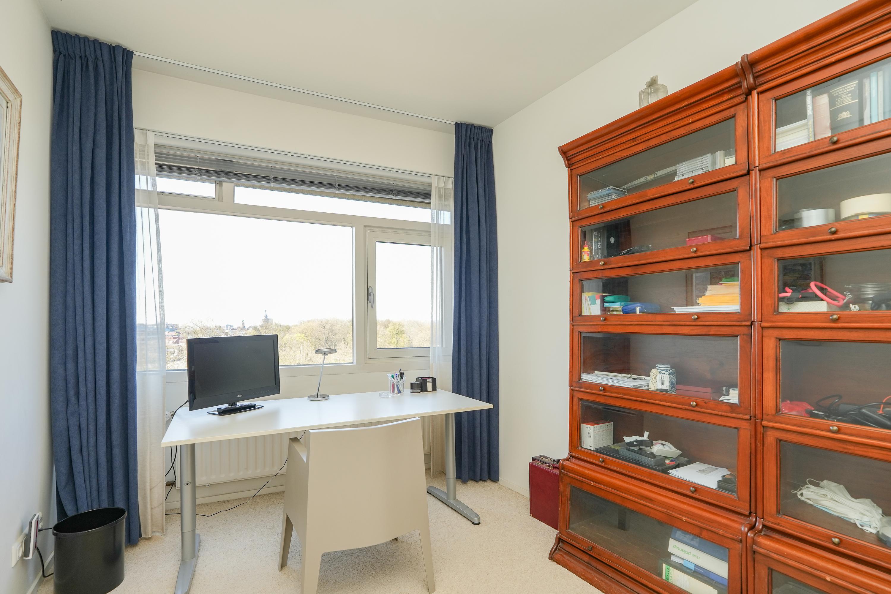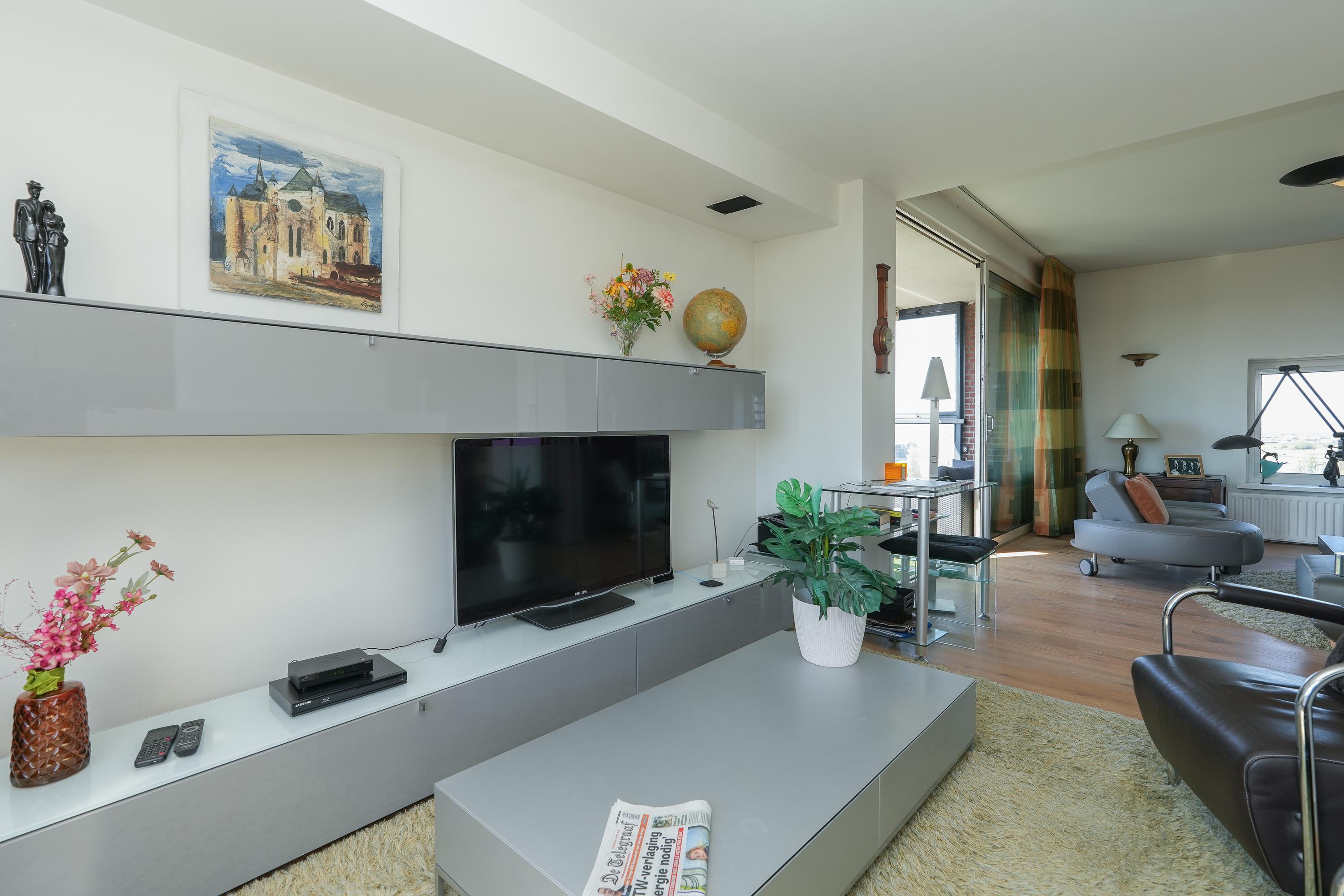 A short walk from central Nijmegen, and connected to arterial roads, the apartment is positioned for both privacy and effortless access. Merging what were once two separate dwellings, the residence now offers a logical and generous layout: the living domain, with solid oak flooring and a modern gas fireplace, flows naturally to the south- and west-facing balconies, bathing the interior in day-long light. The kitchen, finished with high-quality built-in appliances, opens to bright city vistas and a dedicated utility room, while the bedroom wing delivers three spacious bedrooms and two bathrooms. The master suite includes a walk-in wardrobe, air conditioning, a private balcony, and a bathroom finished in refined materials, offering a step-in bath, walk-in shower, and double sinks.
