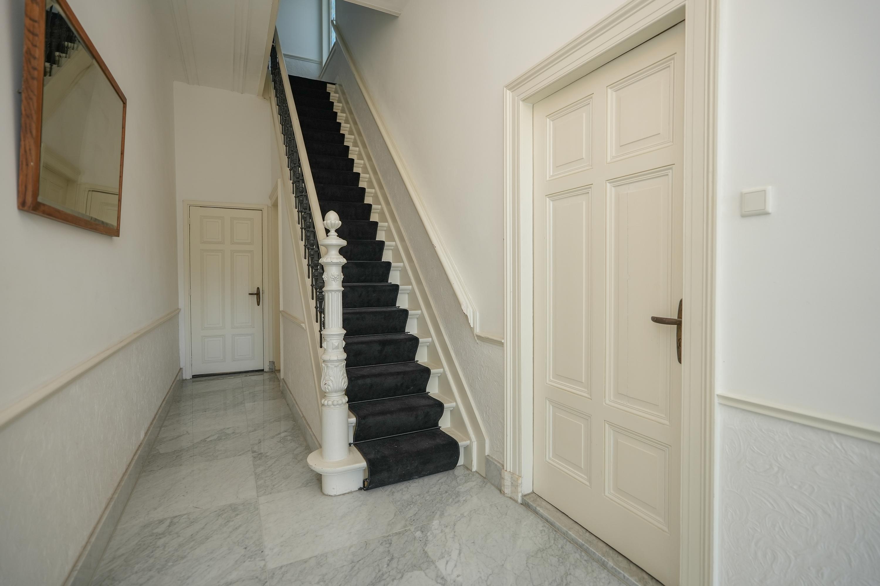 Statige hal/entree met meterkast en prachtig authentiek trappenhuis met marmeren vloeren, woonkamer en suite en eetkamer met schuifpui. In de kamer aan de voorzijde zijn de originele vensterbanken nog aanwezig, hier kan je lekker van de ochtendzon genieten. Via een tussenhal zijn het toilet, keuken en slaapkamer met badkamer bereikbaar. De sfeervolle binnentuin is toegankelijk zowel vanuit de eetkamer als de slaapkamer. De ruime keuken heeft een U-opstelling met inbouwapparatuur en een barretje.