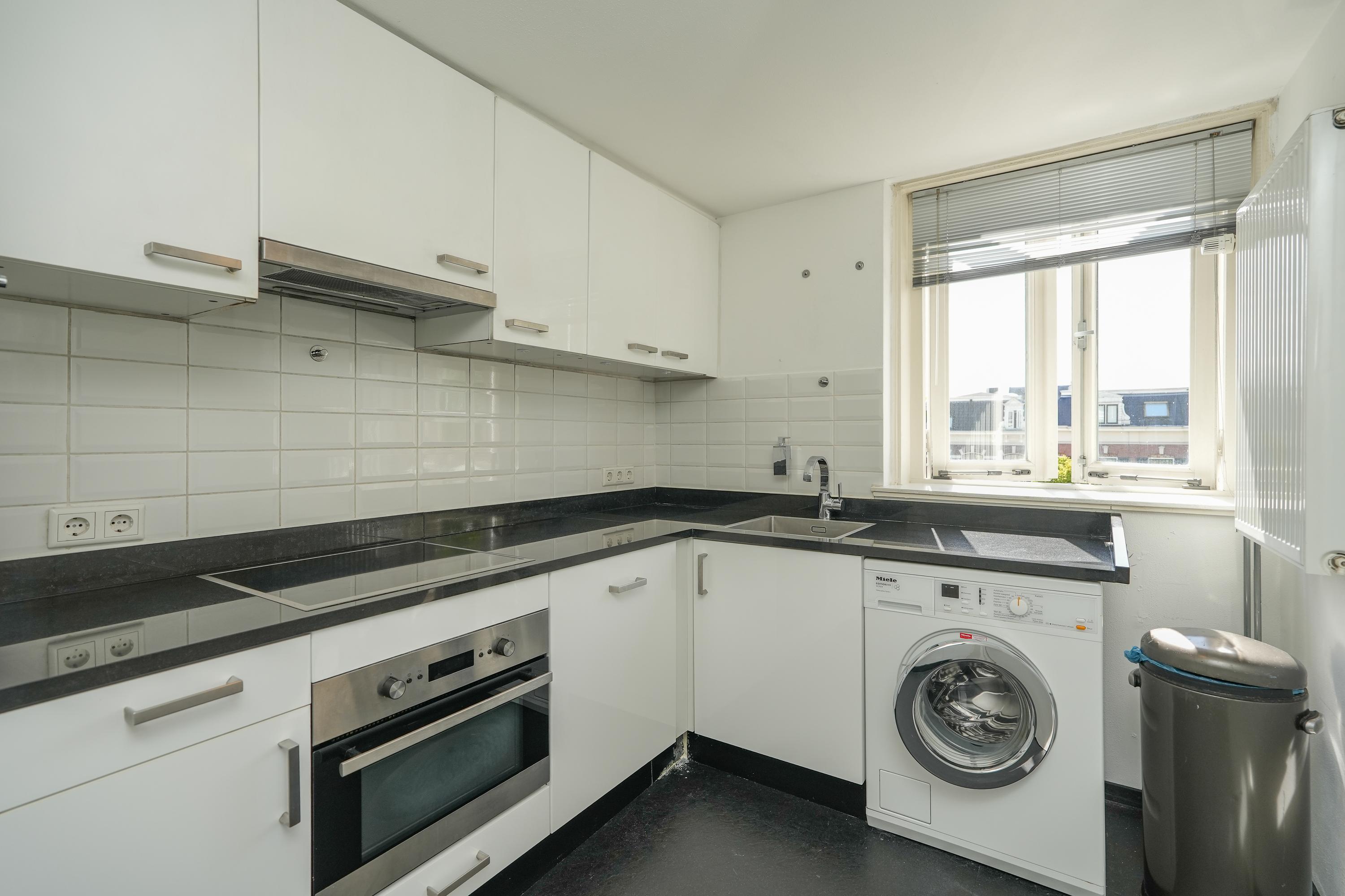 Gang met witgoedaansluiting, aan de achterzijde bevindt zich een open keuken met toegang tot de berging met mechanische ventilatie en stookruimte. Vanuit deze gang zijn aan de voorzijde van de woning een woonkamer met slaapgedeelte aanwezig, inclusief vaste kasten en de badkamer. De keuken heeft een U-opstelling en is voorzien van inbouwapparatuur. De badkamer is uitgerust met een wandtoilet, wastafelmeubel en inloopdouche.