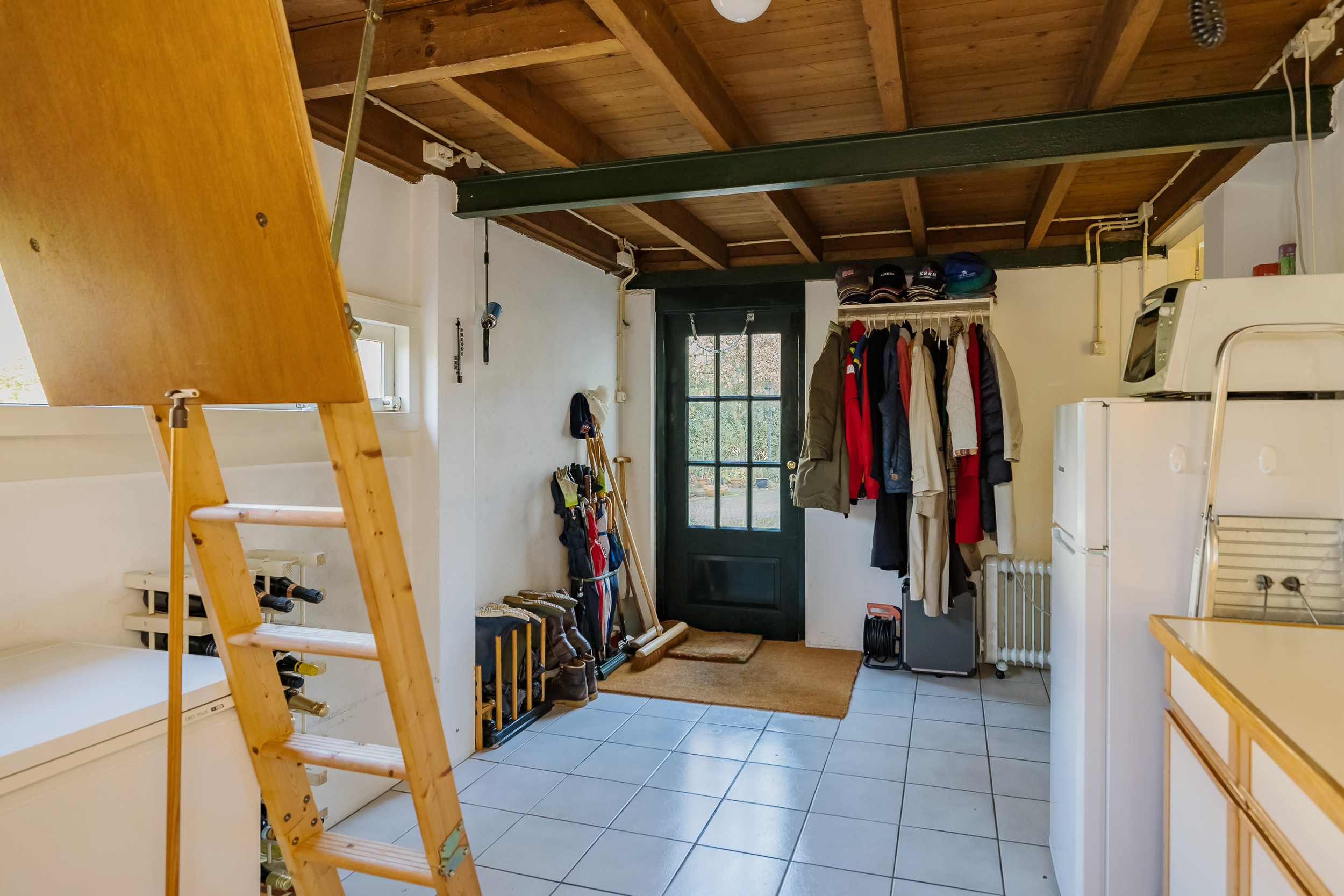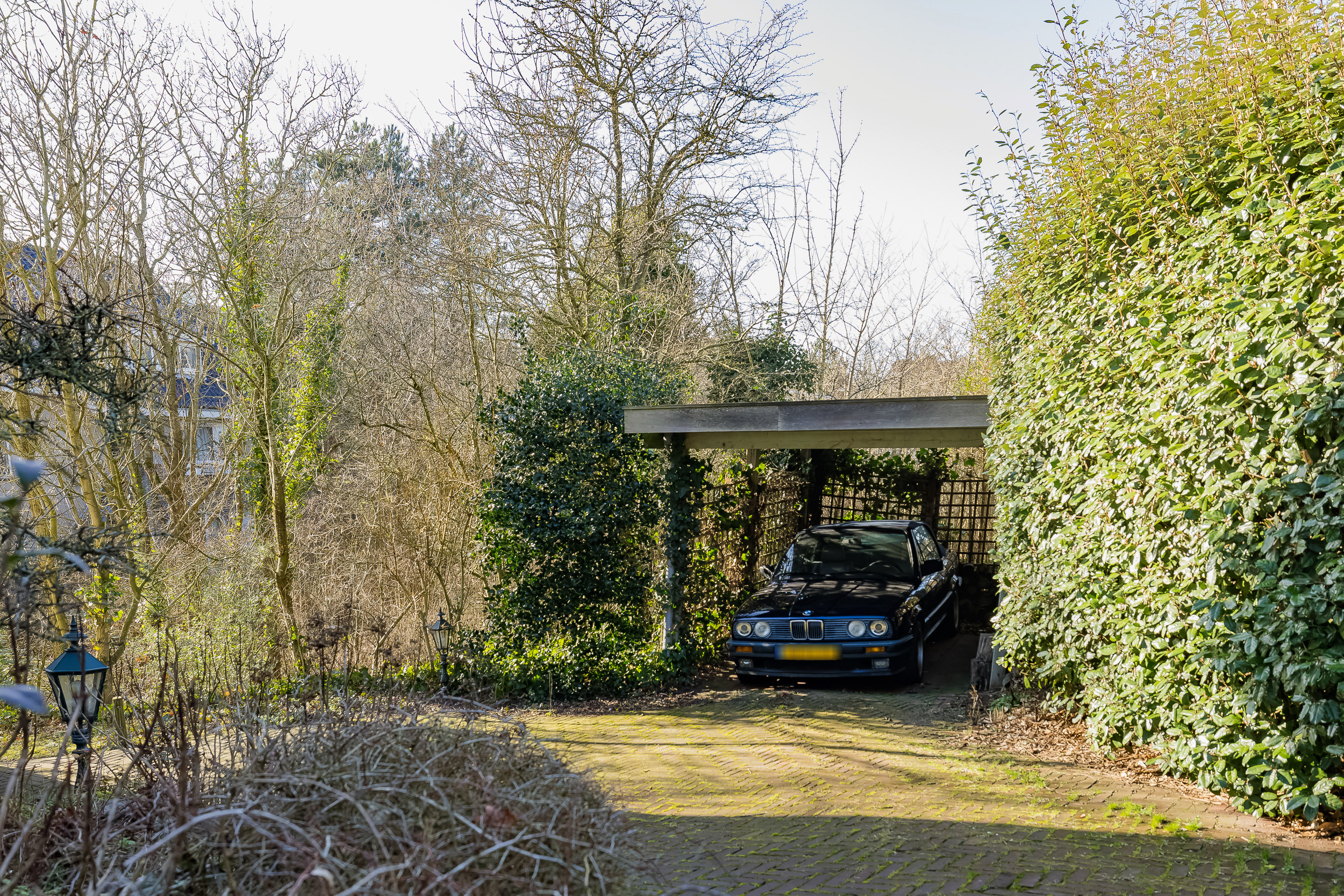 Parking is no problem here. There is plenty of parking space on the property: on the driveway, on the path to the garage, in the garage, and under the carport. There is also a private parking spot next to the entrance gate.