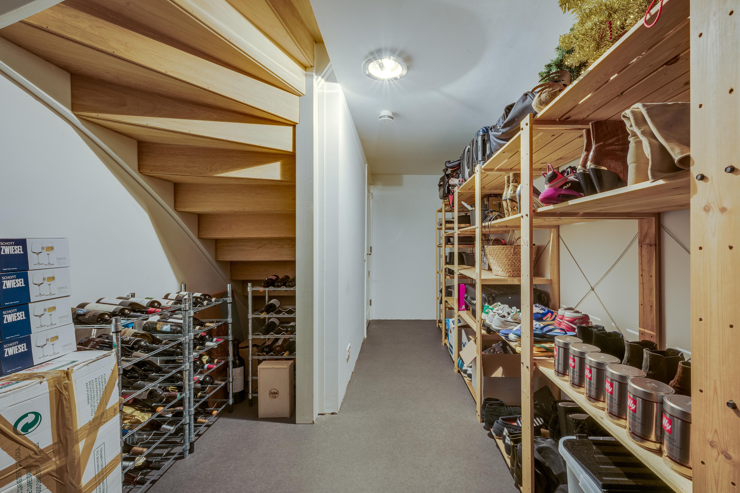 The stairs to the basement are made of the same materials as the stairs to the first floor. In the cellar there is a lockable, practical storage space, also suitable as a space to store the wine.