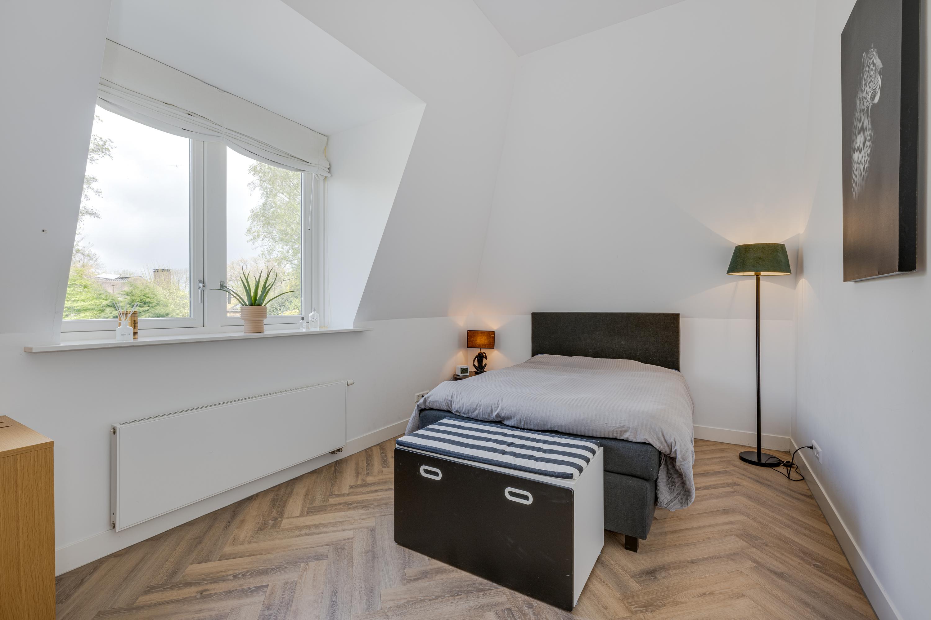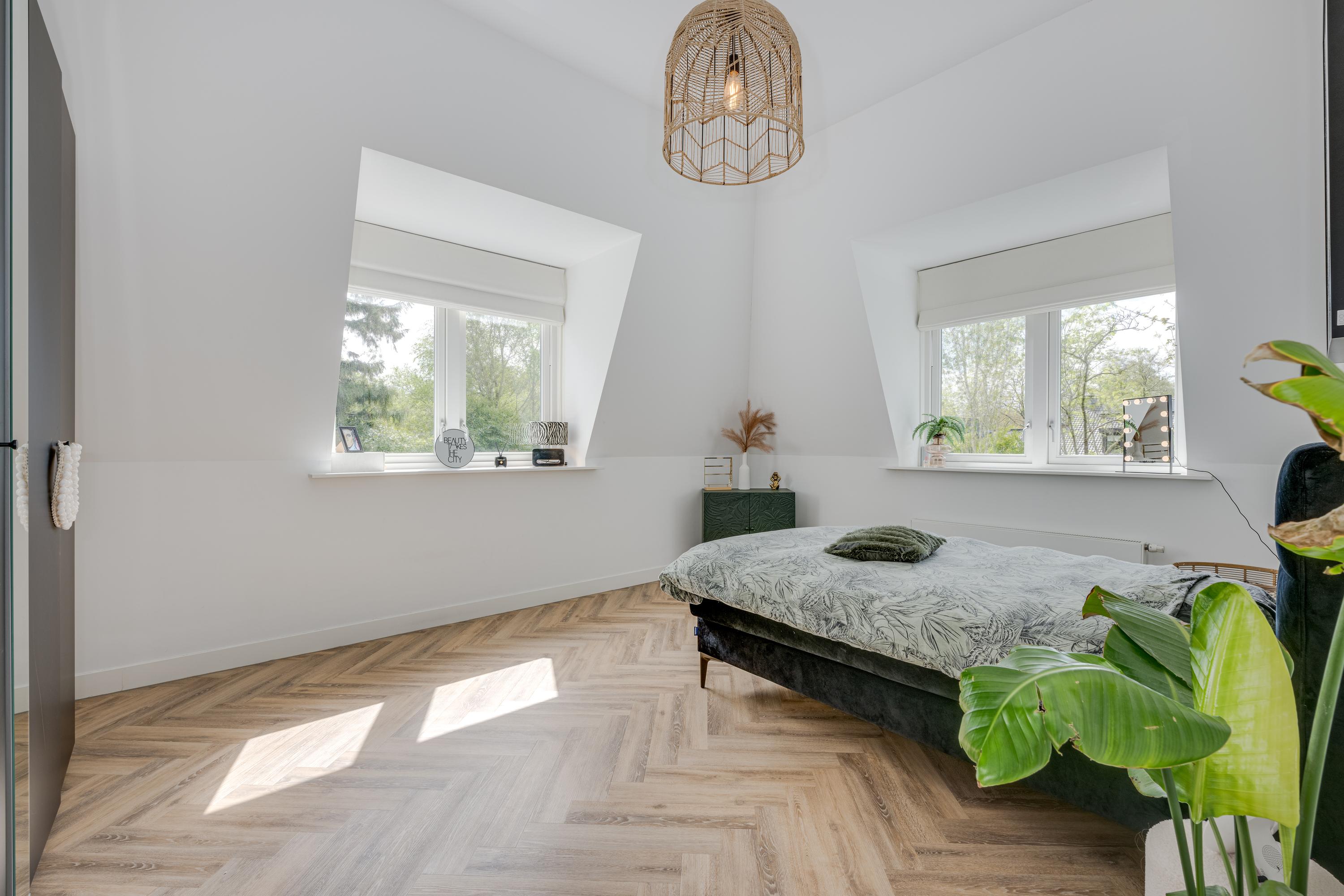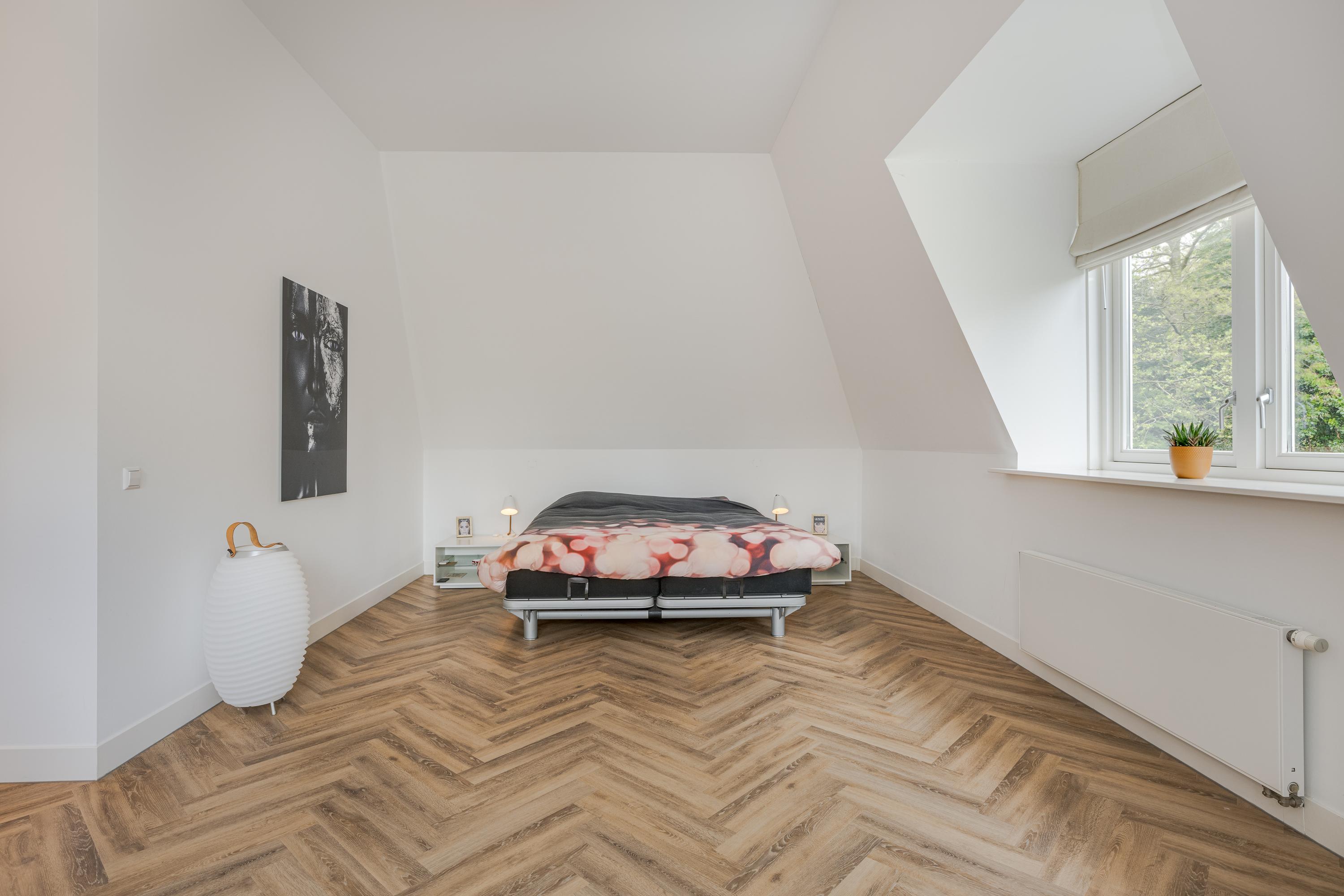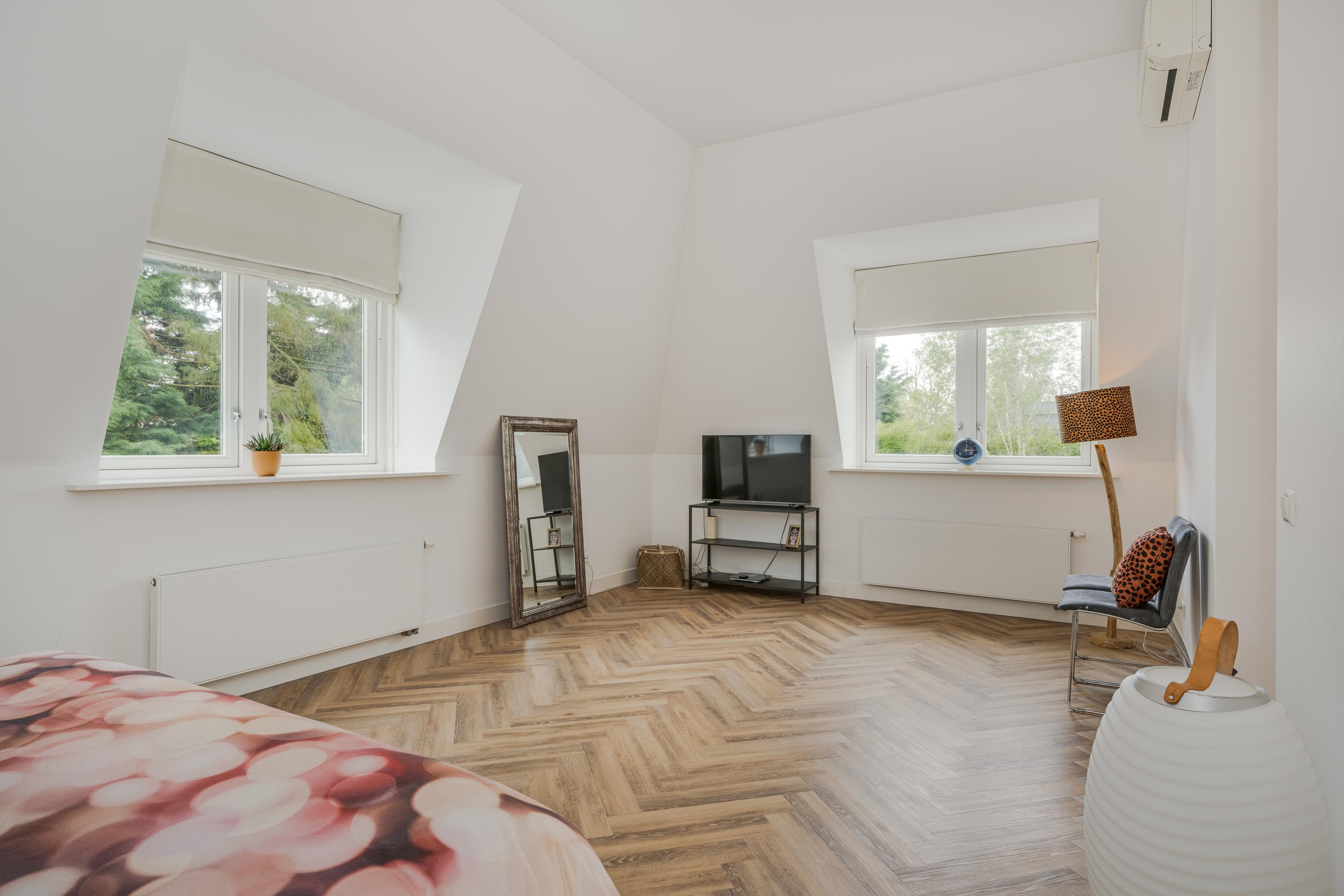 Via the beautiful stairs you reach the landing with beautiful high doors that provide access to the various rooms. Behind these doors there are a total of four large bedrooms, two bathrooms, the technical room and a room for the washing and drying facilities. Of the four bedrooms, three are used as a children's room with a shared bathroom with a double sink and a walk-in shower with rain and hand shower. There is also a separate toilet on the landing.