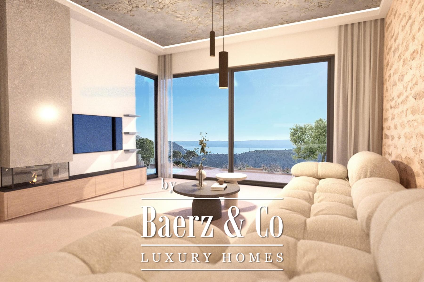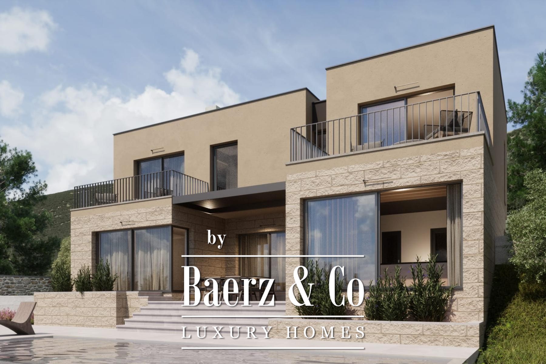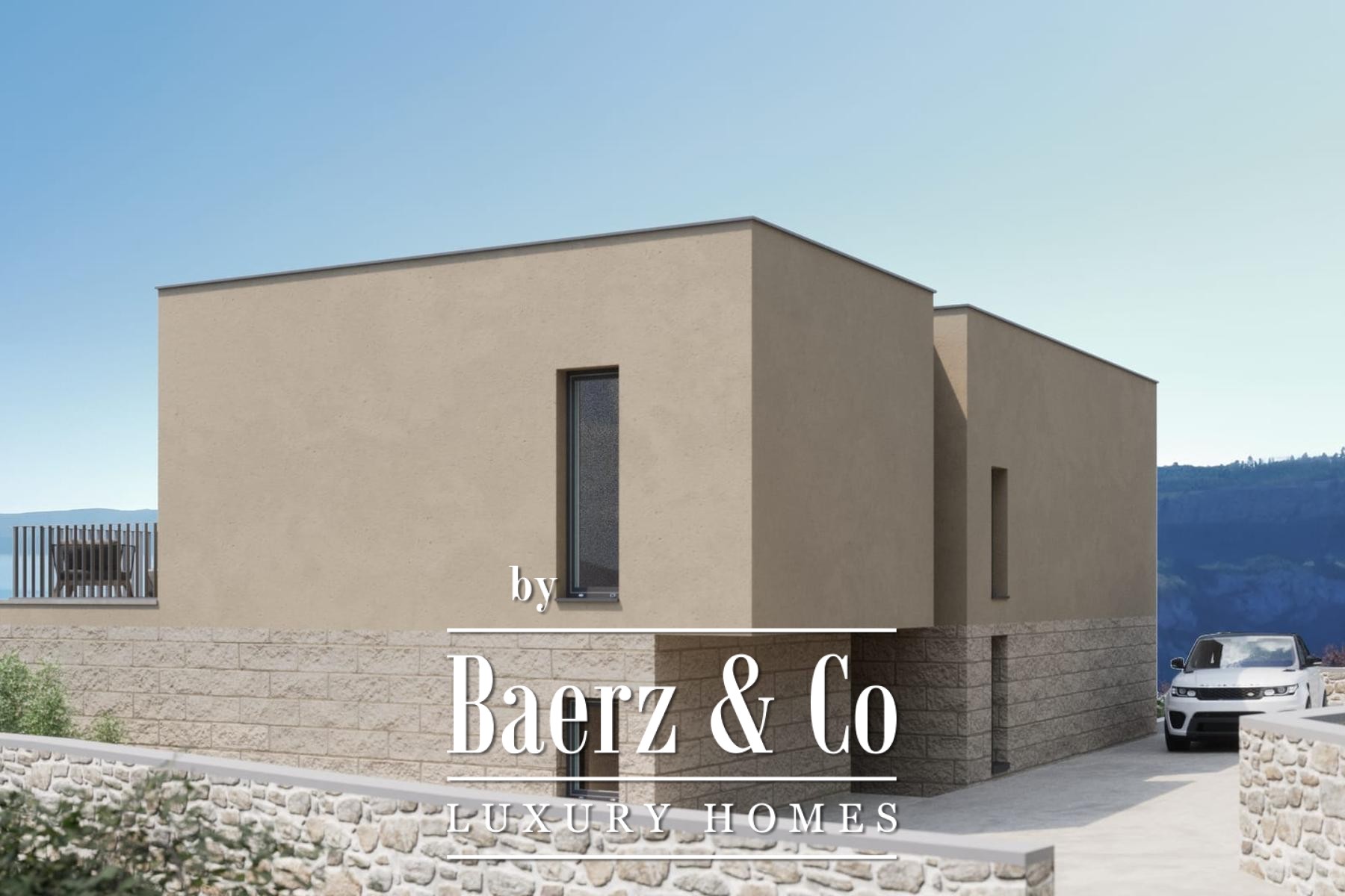 Modern villa Omiš stands discreetly atop a secluded cul-de-sac, occupying a 775 m² plot that commands sweeping views above the town and the Brač Channel. The villa’s 195 m² are artfully composed over two levels, with thoughtful placement ensuring privacy and natural light throughout.