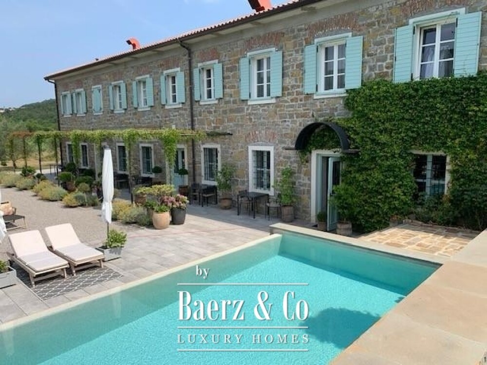 On 2,227 m² of grounds, botanic richness unfolds—a stone infinity pool presides over olive groves and vineyards. A separate barn of 137 m² offers further scope for art, wellness, or retreat. The village of Osp assures privacy and serenity while Trieste, the coastline, and major European cities remain readily accessible. This luxury villa for sale in Osp offers both a cultural refuge and a strategic investment in the heart of the Slovenian countryside.