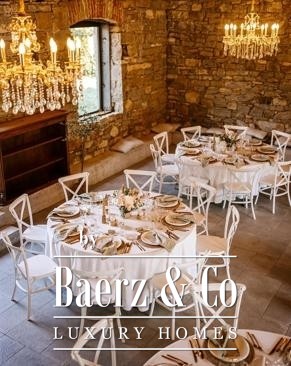 Upstairs, six double bedrooms serve as private sanctuaries crowned by a Deluxe suite framing views of the rolling landscape. Each suite pairs vintage artistry with modern amenities, offering underfloor heating powered by a heat pump, air conditioning, and multimedia throughout. Five bathrooms provide refined comfort.