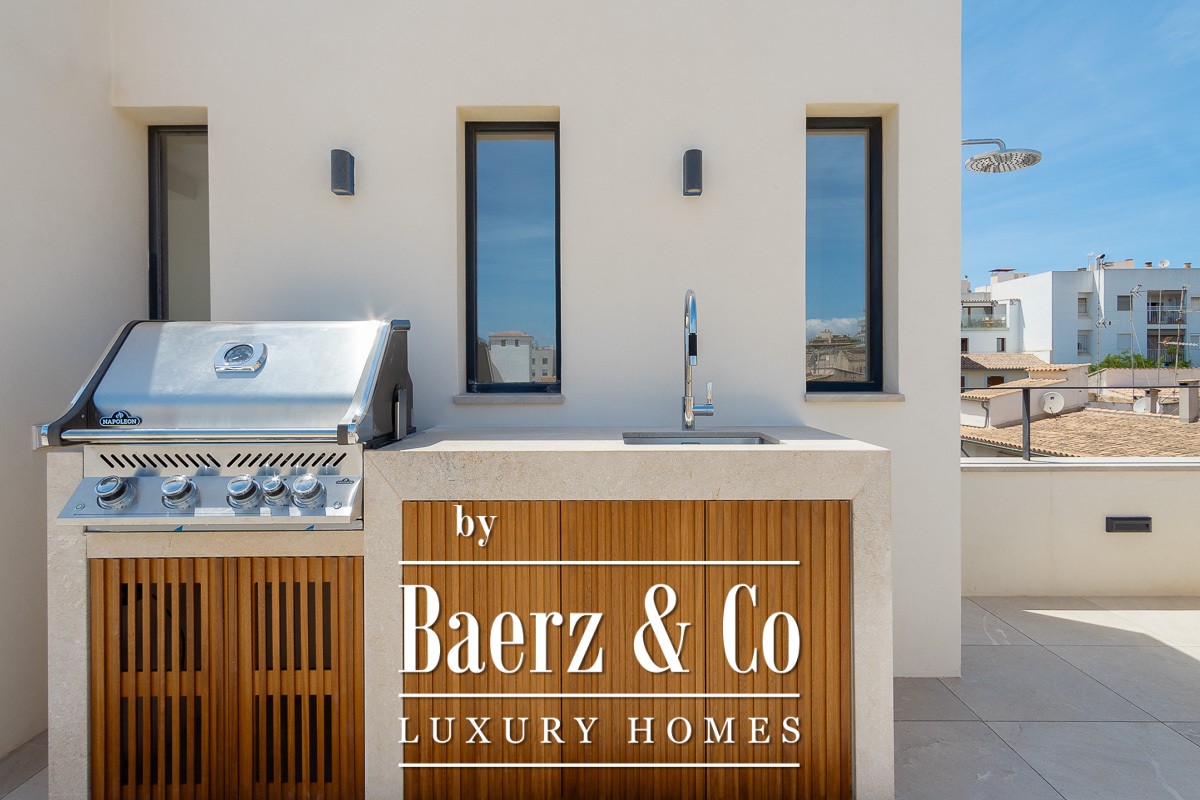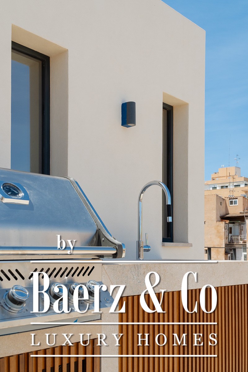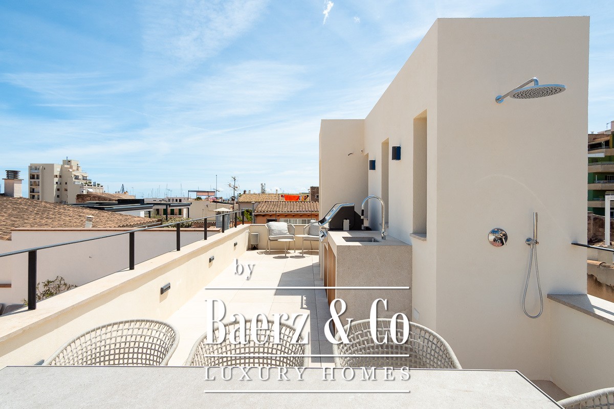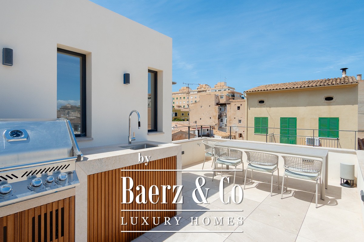 Discover the epitome of luxury in this newly built, three-storey townhouse in the vibrant St. Catalina neighborhood of Palma. Just steps away from the famous market, charming cafés and first-class restaurants, this property offers unparalleled comfort and style, with three spacious bedrooms and two modern bathrooms, one of which is en suite. The elegant, open plan layout features high quality fixtures and fittings throughout. The private courtyard features a refreshing plunge pool, while the large roof terrace has a built-in barbecue,