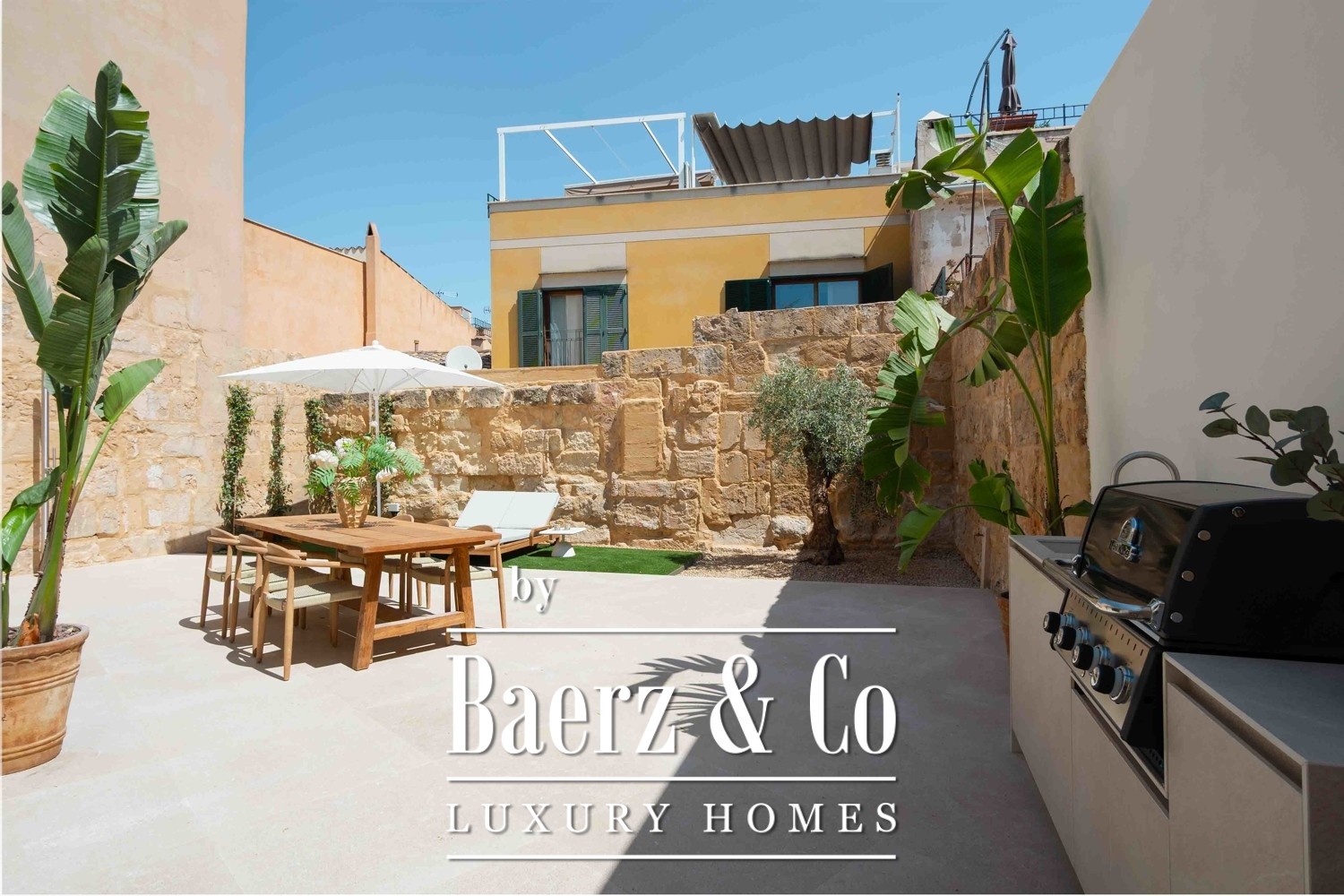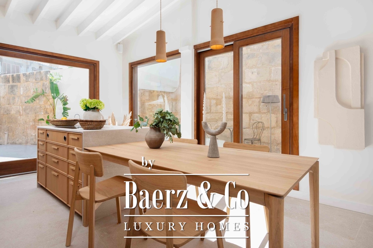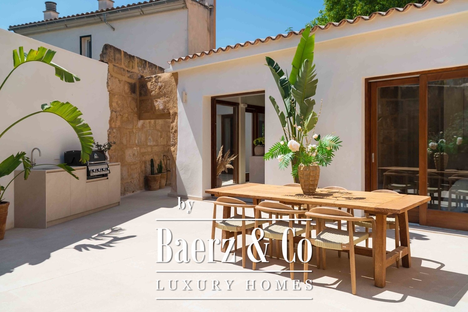 thoughtfully designed living space. It also includes a peaceful 90m² garden oasis. Located steps from the marina, this charming residence combines historic character with modern comforts in a prime location. Es Jonquet’s narrow streets and old buildings create a unique and inviting atmosphere. The townhouse’s layout includes spacious bedrooms, elegant bathrooms, and a generous garden, ideal for relaxing or entertaining. This property offers a rare blend of historical charm and contemporary living, making it a standout choice in Palma.