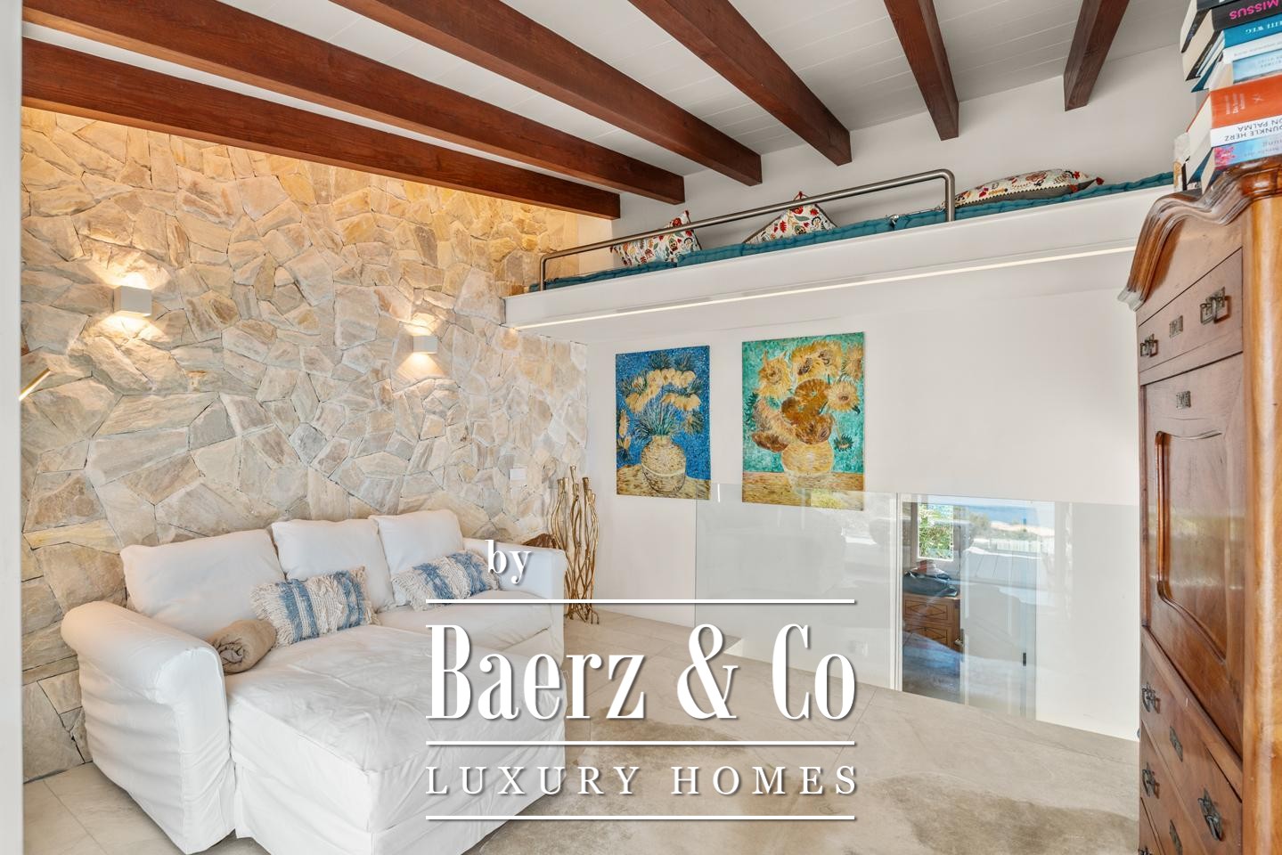 This duplex Port d'Andratx presents a refined embodiment of Mediterranean living in a privileged setting on La Mola. Completely redesigned in 2022, the residence spans 200 m² across three floors, balancing architectural clarity and privacy, with panoramic views of the sea and Dragonera Island.
