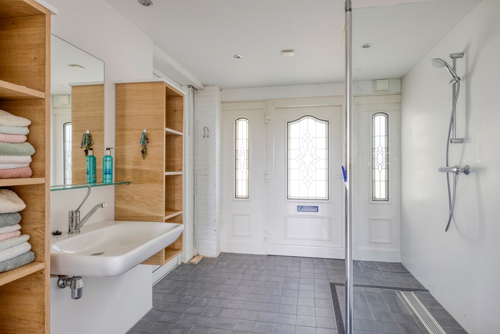 A rear garden with a sunny aspect and magnificent unobstructed views over nature and water is the highlight of this home. With a paved terrace, there is ample room for a lounge set or outdoor dining table, while the garden’s greenery provides peace and privacy.