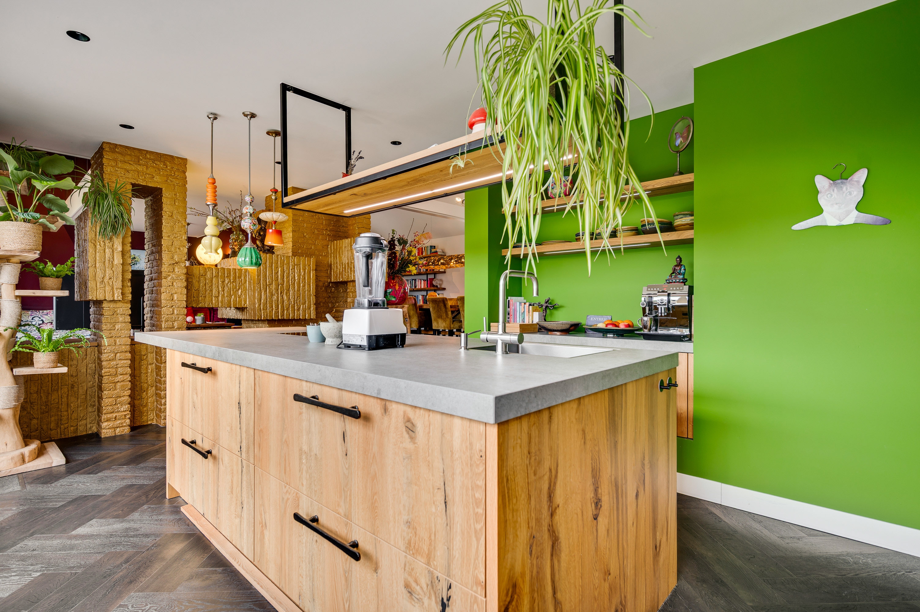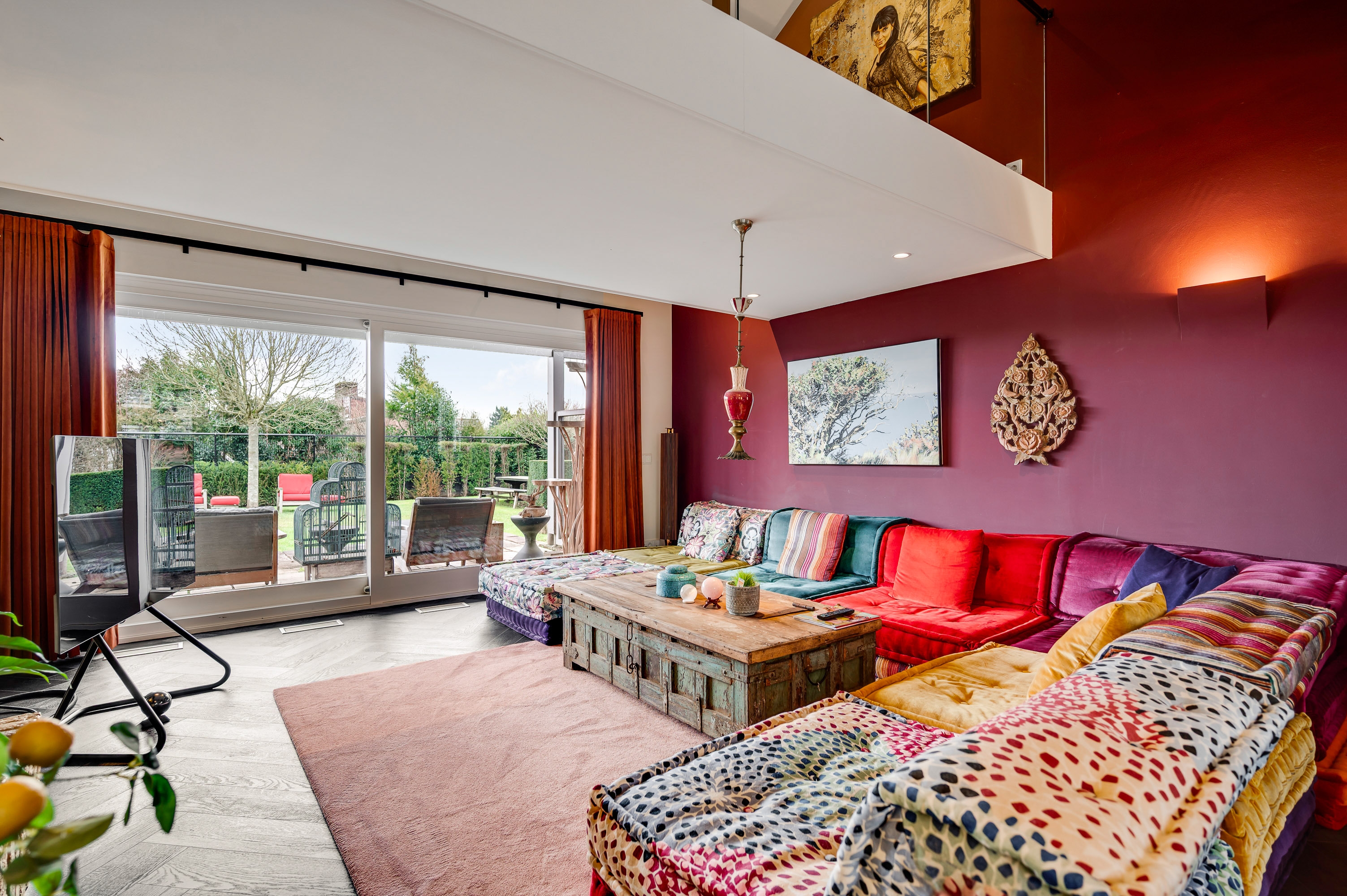 The spacious kitchen-diner is a true eye-catcher and fully equipped with all modern conveniences. The cooking island and sleek wall of built-in appliances not only provide comfort but also create a contemporary look. Thanks to the large sliding doors, the garden is easily accessible, allowing indoor and outdoor living to blend seamlessly.