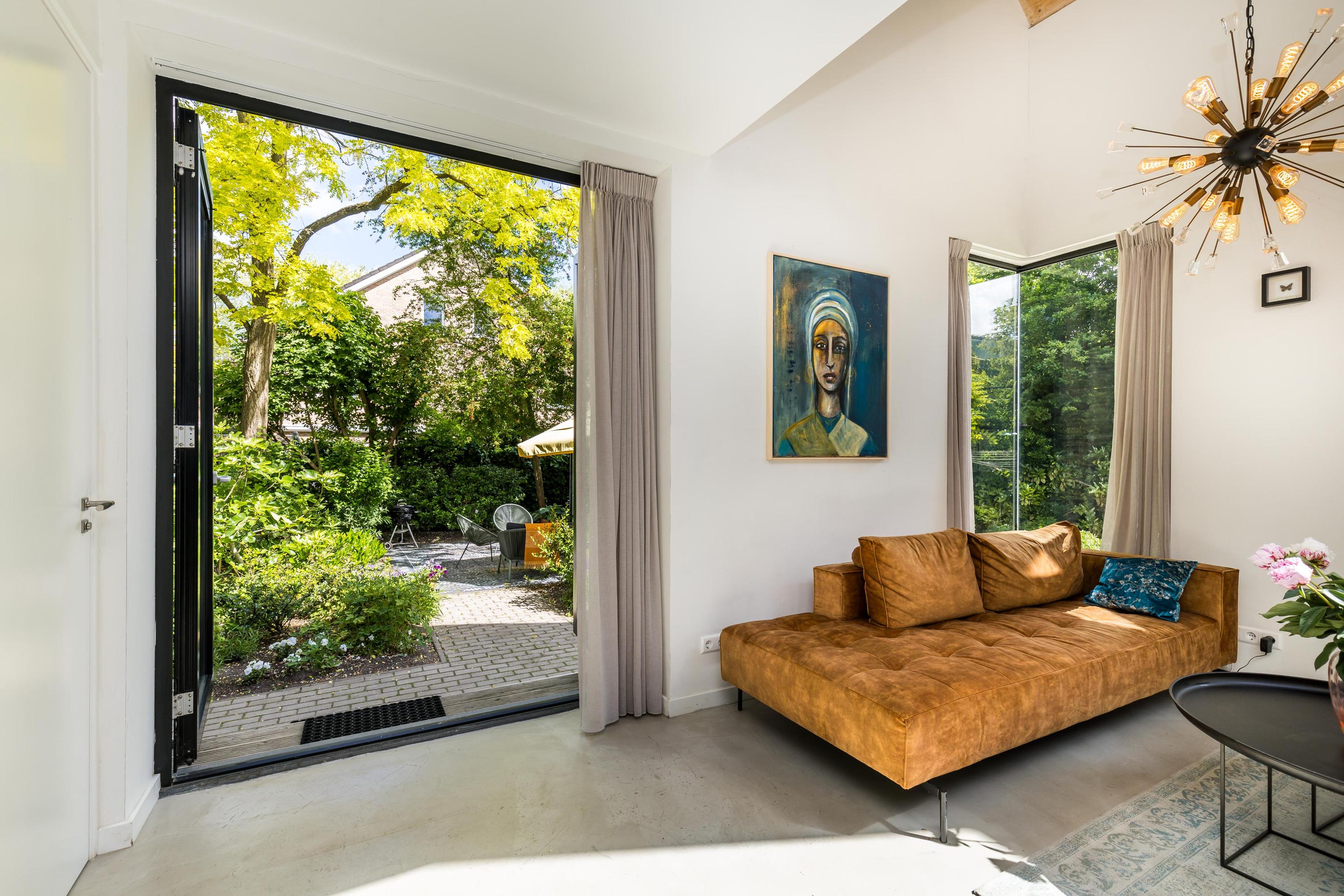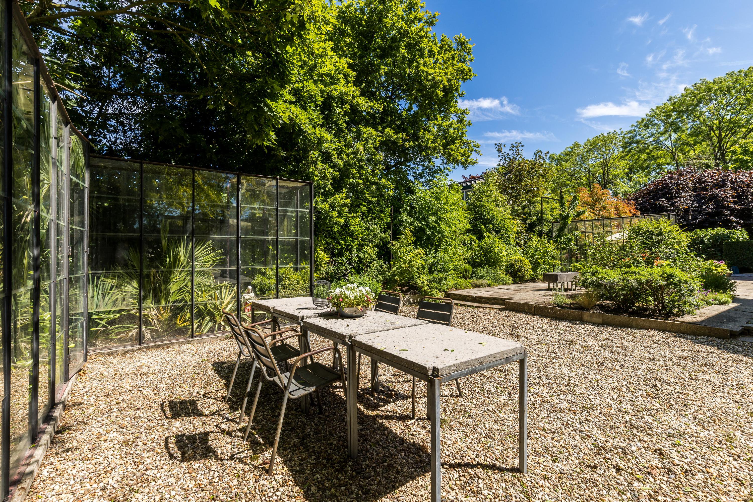 Four bedrooms and two bathrooms provide private retreats. The master suite features a dedicated bathroom with bath, walk-in shower, and garden views. Further highlights include a wine cellar, two cellars totaling 32 m², external storage, a carport with electric charging station, and forty solar panels—securing energy label A. The grounds, landscaped with hedges, fruit trees, and a food forest, offer multiple sunlit seating areas and complete privacy. Convenient access to transit, shops, and Rotterdam's green parks ensure an assured and measured pace of life. This luxury villa for sale in Rotterdam exemplifies thoughtful restoration, efficient design, and enduring architectural presence.