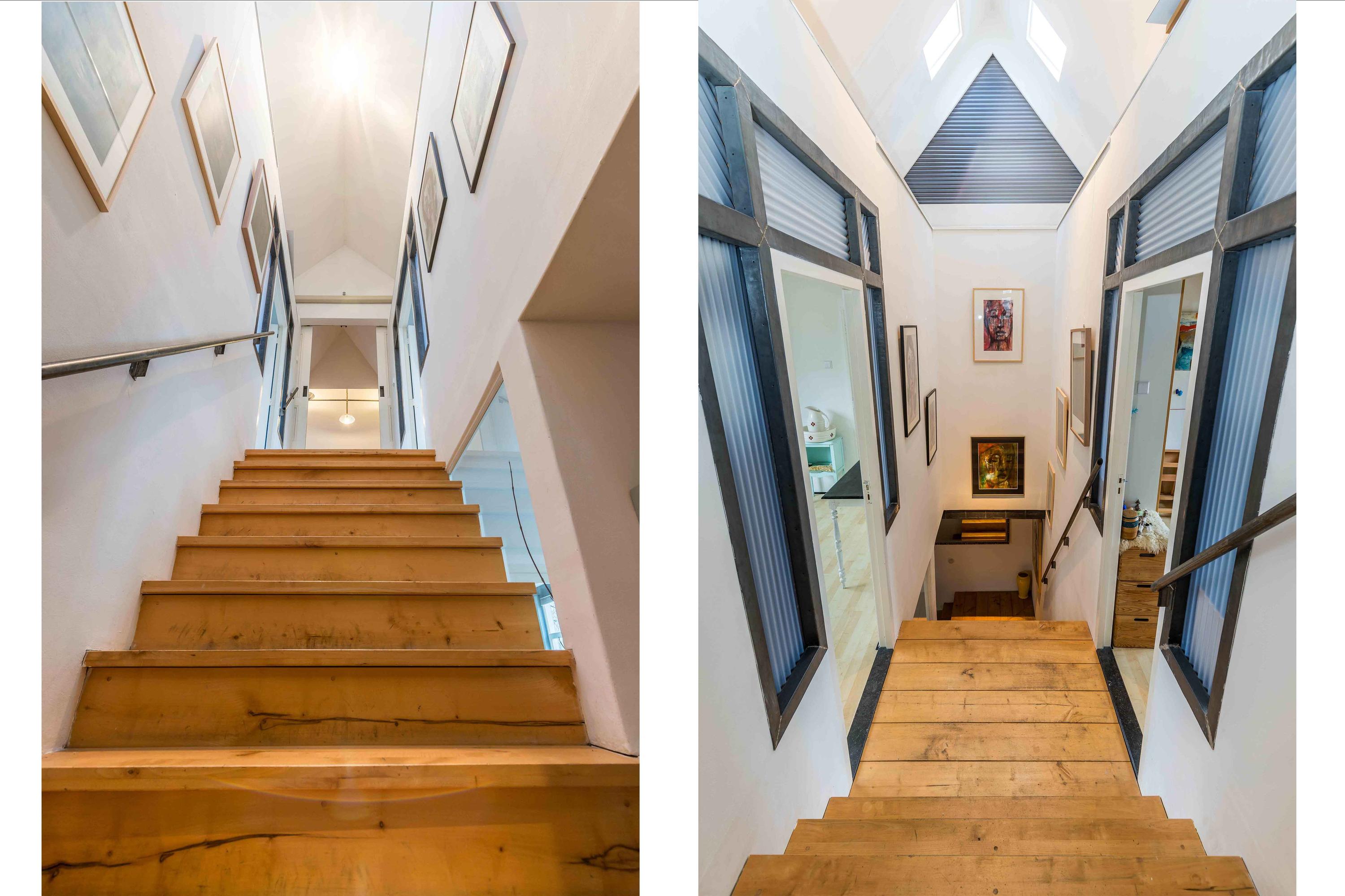 The main villa’s original detailing, stained glass, and expansive, light-filled living room evoke a sense of continuity with the past. High ceilings and wood flooring add depth to each space. The well-appointed kitchen, opening directly onto the gardens, connects seamlessly to the 'back house,' where a lofty open-plan kitchen, additional bedroom, and flexible living area enhance the spatial experience and functionality.