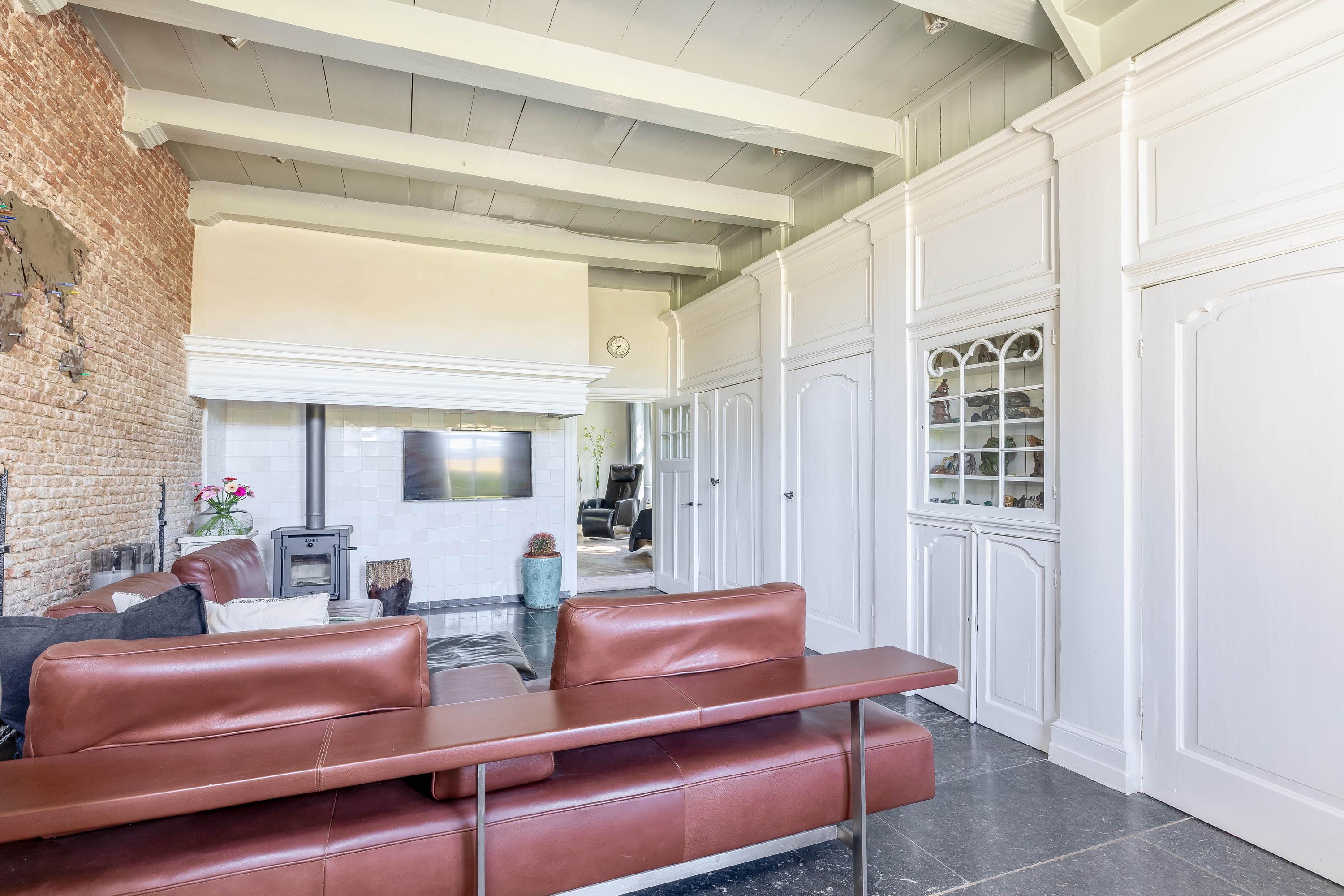 This property combines heritage with sustainability. The farmhouse is equipped with high-quality insulation, a heat pump (2021), 20 solar panels (2016), HR combi boiler (2018), and air conditioning. Thanks to an innovative heating system with buffer tanks and wood-fired support – using wood from the property’s own pollard willows – the energy consumption is surprisingly low for a property of this size. A charging station is also available.