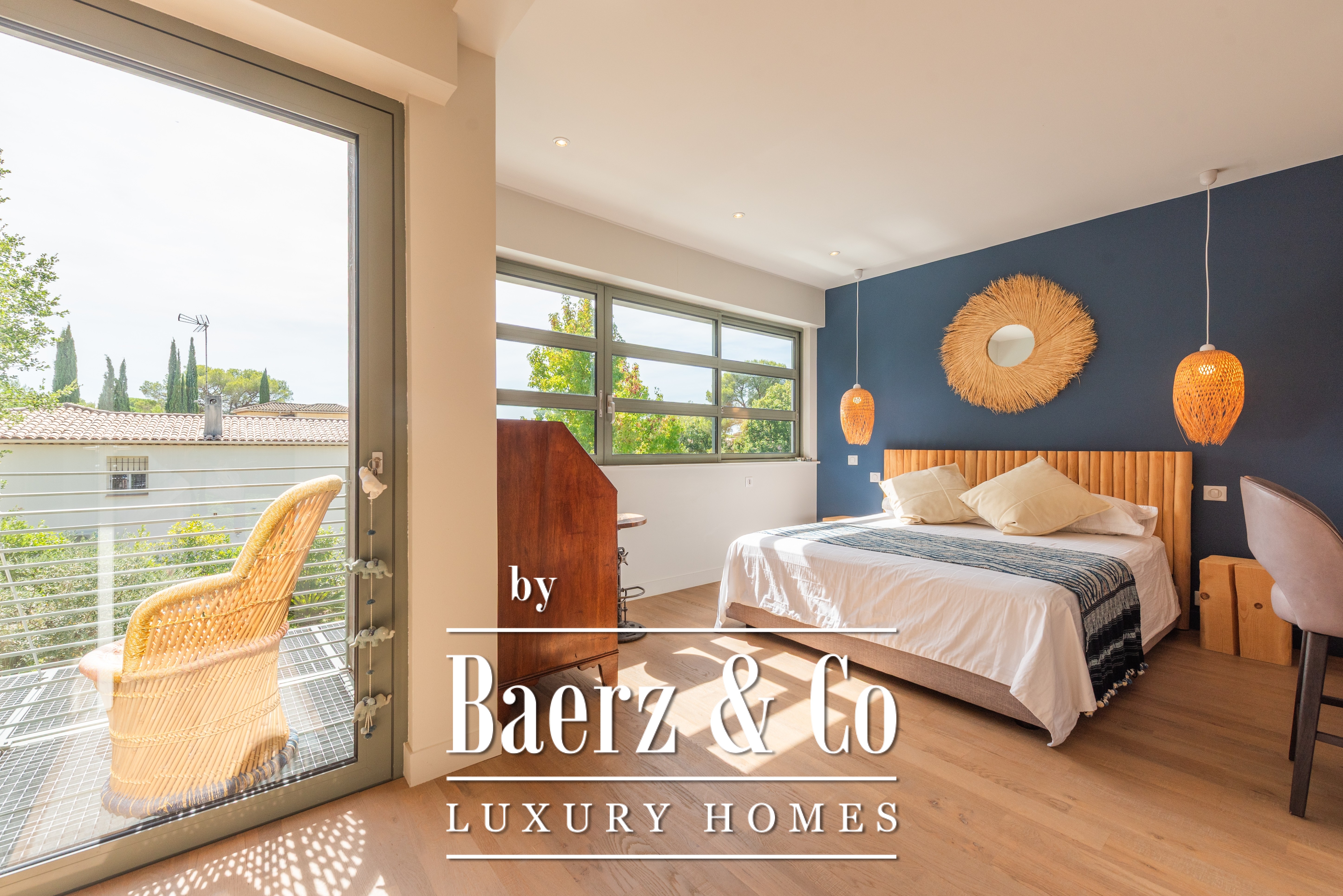 Set on a 900 m² plot in a sought-after enclave of Saint-Raphael, the property’s outdoor spaces invite quiet repose and sophisticated gatherings. A furnished terrace runs alongside the swimming pool, creating an environment equally suited to relaxation or hosting guests. With amenities such as air conditioning and a high energy efficiency rating of A++, this house for sale in Saint-Raphael is a distinguished proposition within the region’s market.