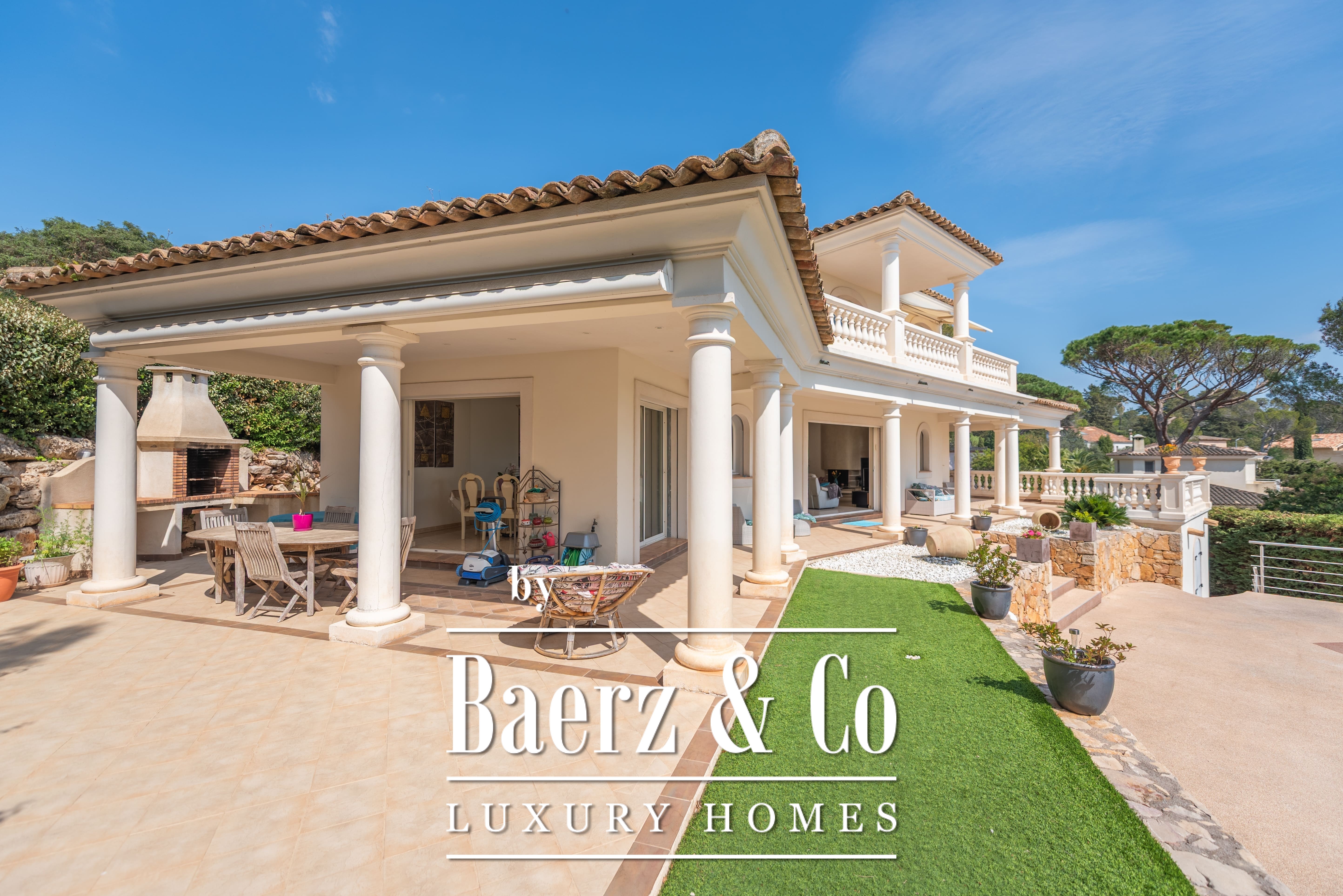 Villa Saint-Raphaël is offered for sale in one of the most desirable settings on the Côte d’Azur, set within a private, secure estate. This 205 m² residence is defined by its elevated position, optimal sunlight, and quiet residential atmosphere, a short distance from renowned golf courses.