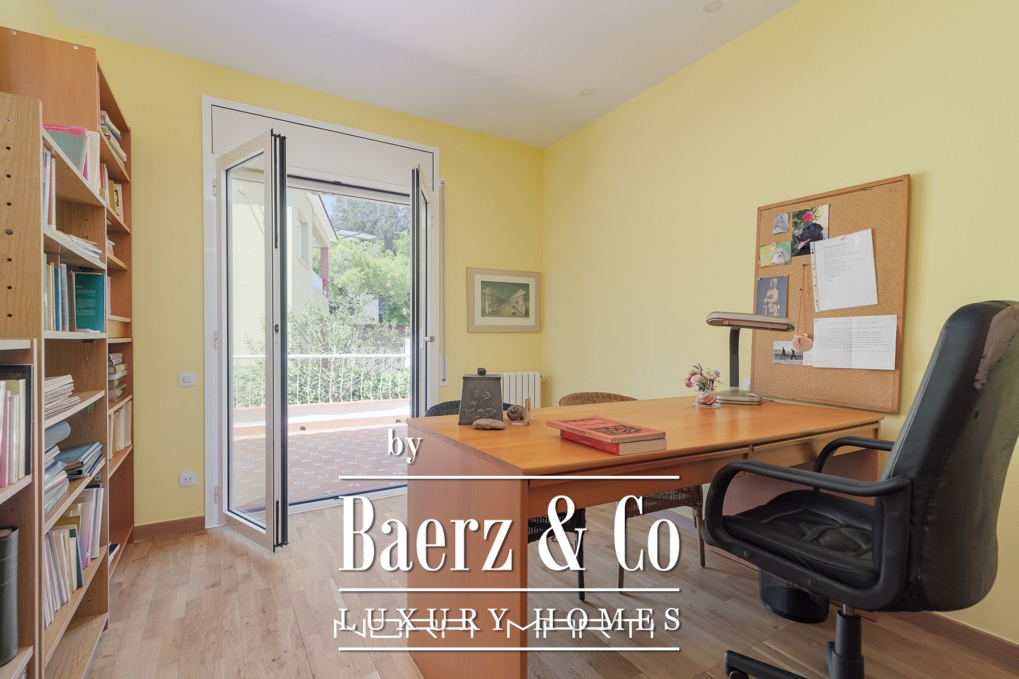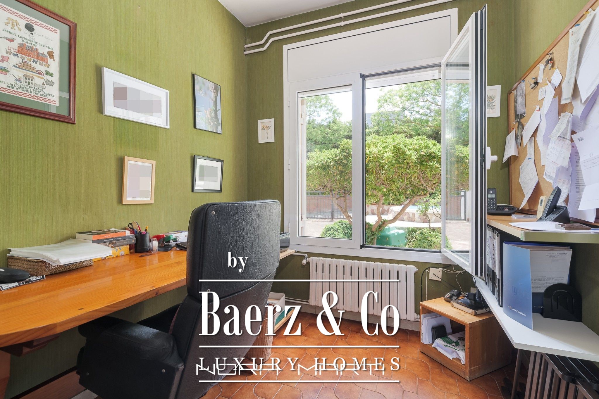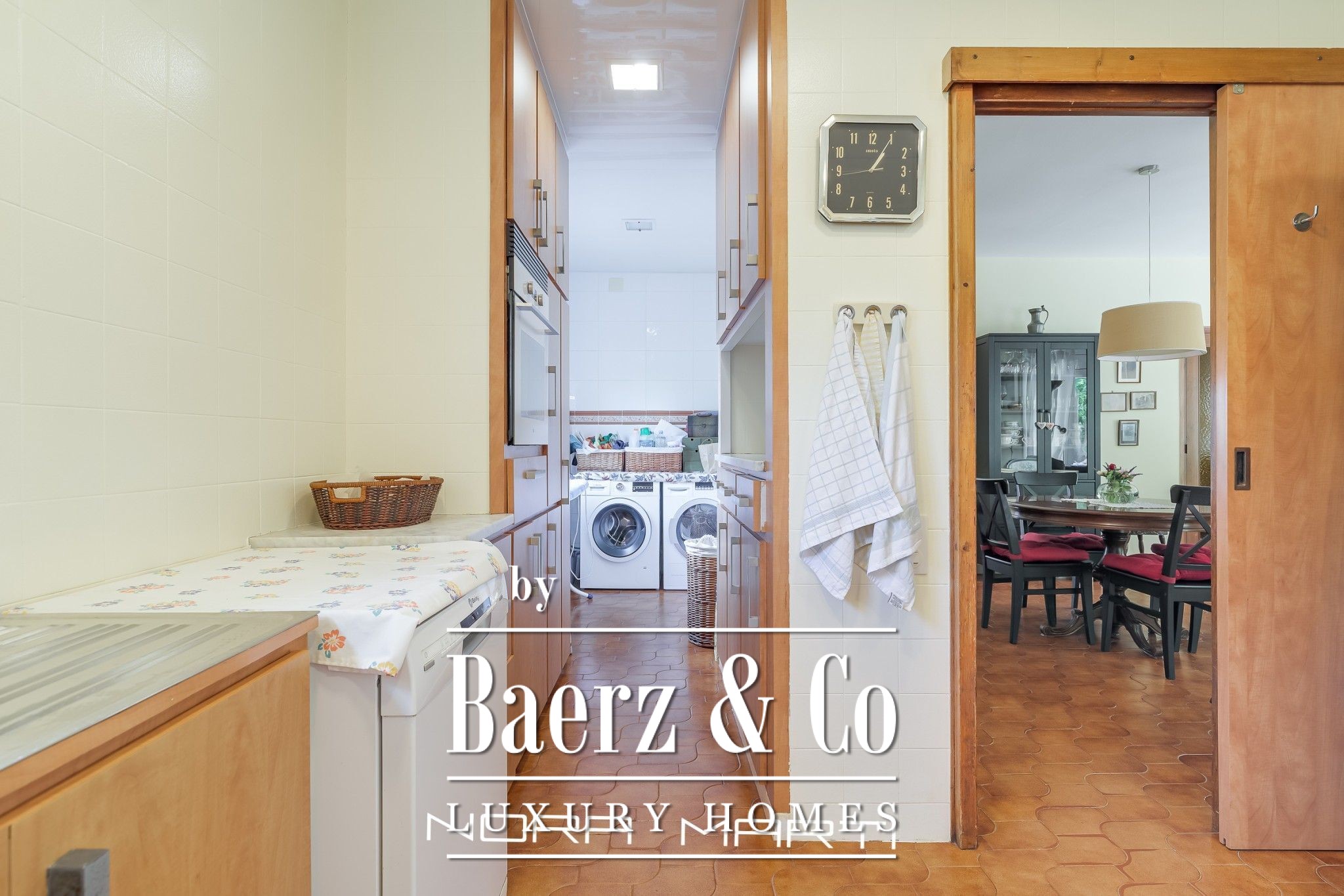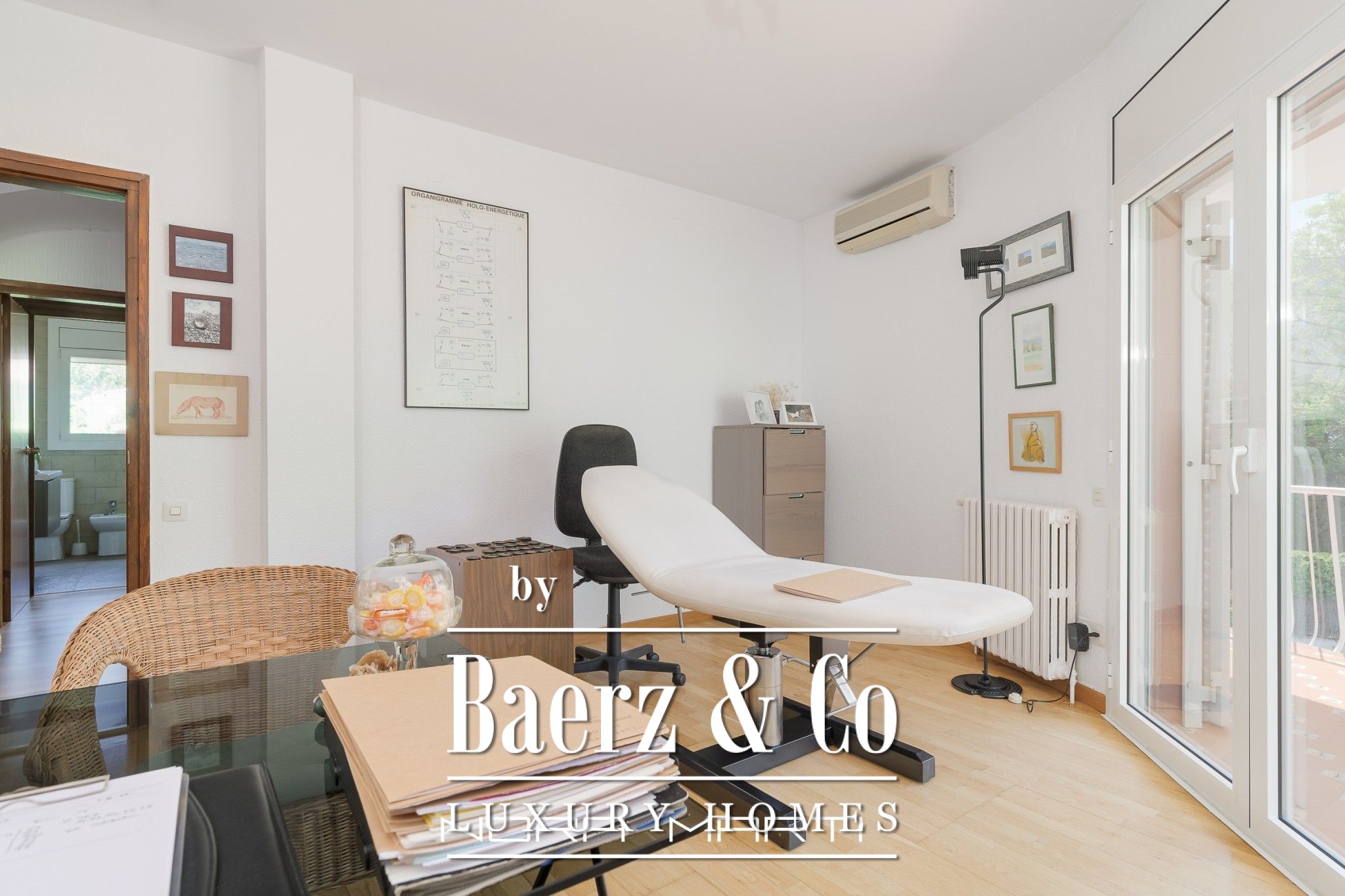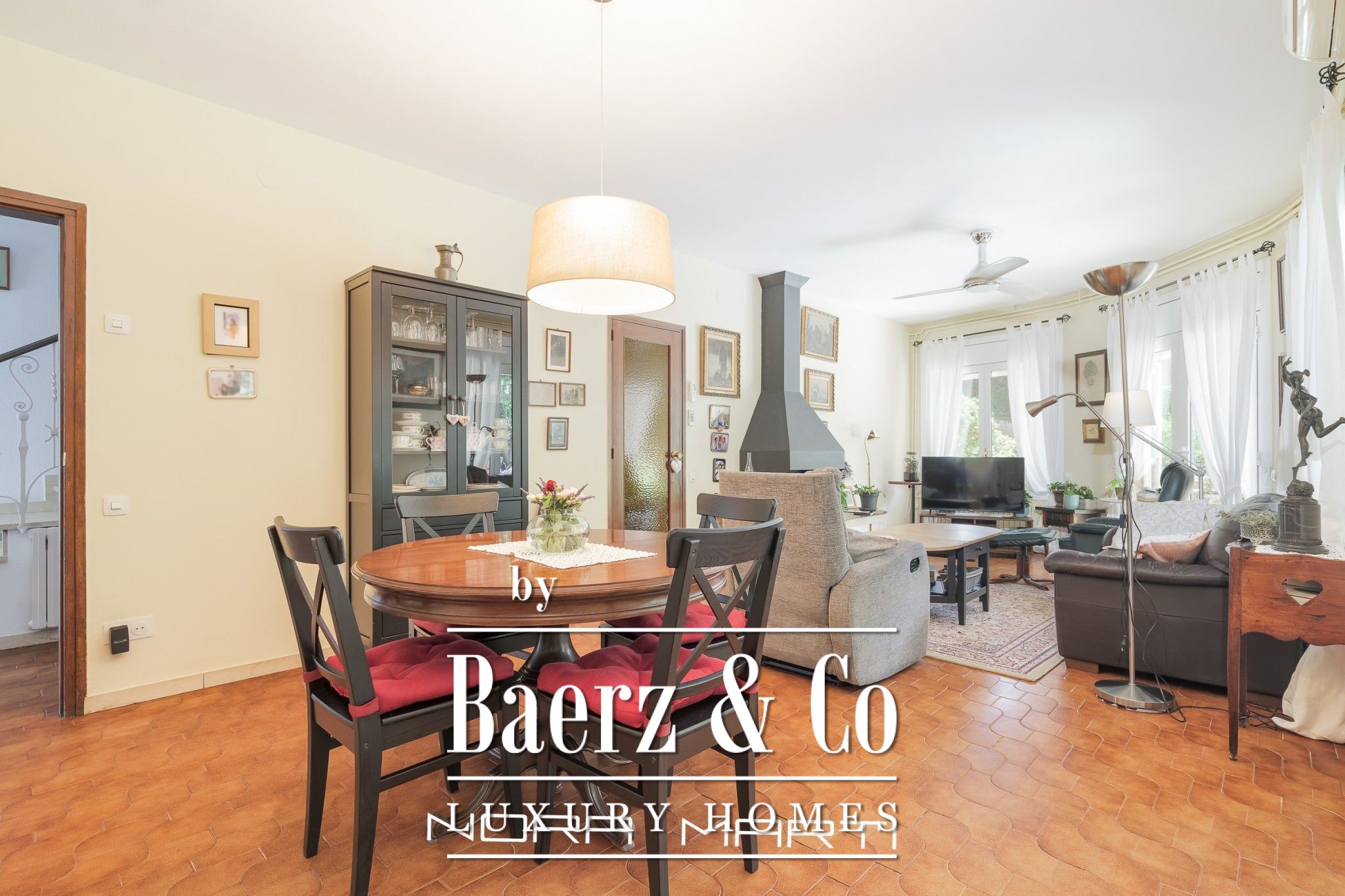 Outdoor dining, a surrounding terrace, and two independent parking accesses enhance both convenience and privacy. Located in a tranquil yet well-connected area, this house in Sant Cugat creates a serene context for family and entertaining life.
