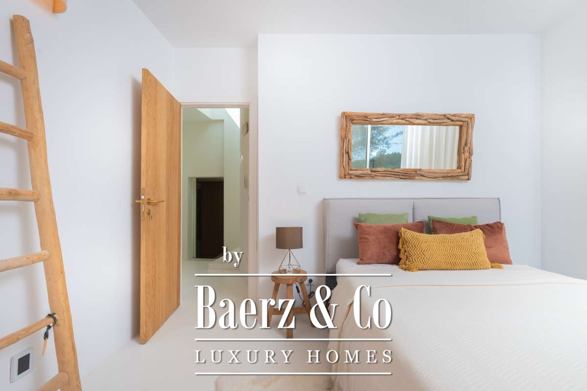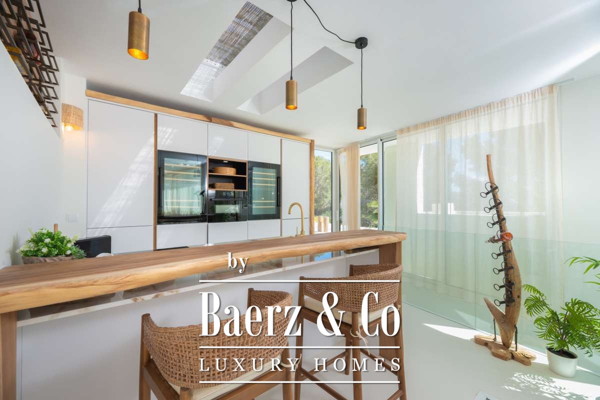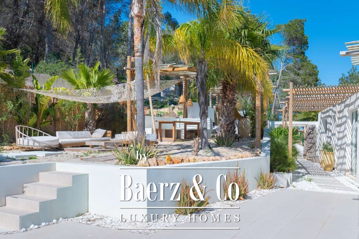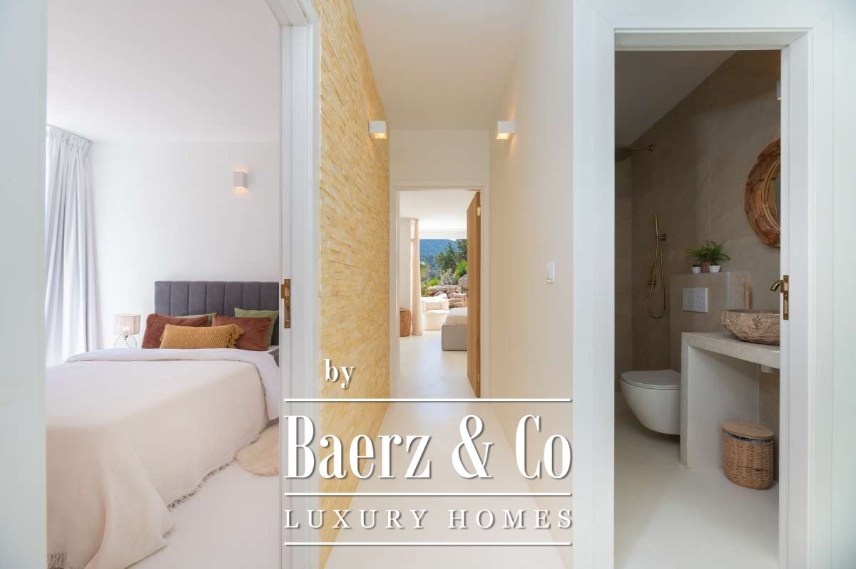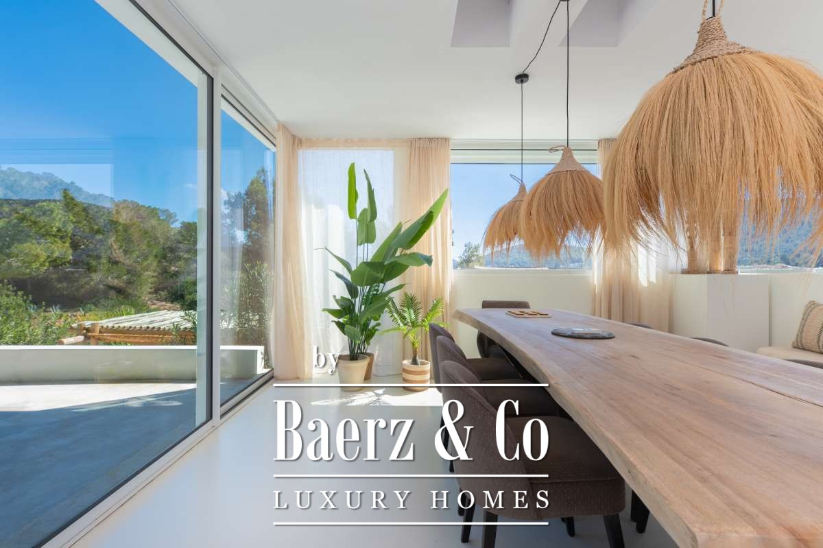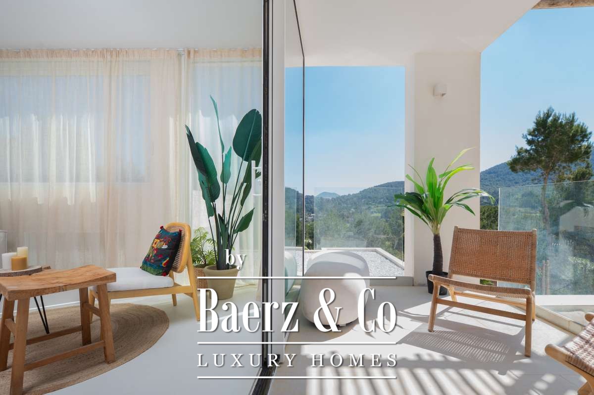 Villa Sant Josep de Sa Talaia panoramic views captures understated luxury in the green western hills of Ibiza. This recently built villa sits on a 19,600 m² plot, surrounded by Mediterranean landscape and forest, and offers a rare combination of privacy, space, and panoramic mountain and countryside views, with glimpses of the sea on the horizon. The location places the charming village of San José and the renowned beaches of Cala Tarida, Cala Conta, and Cala Bassa within easy reach.