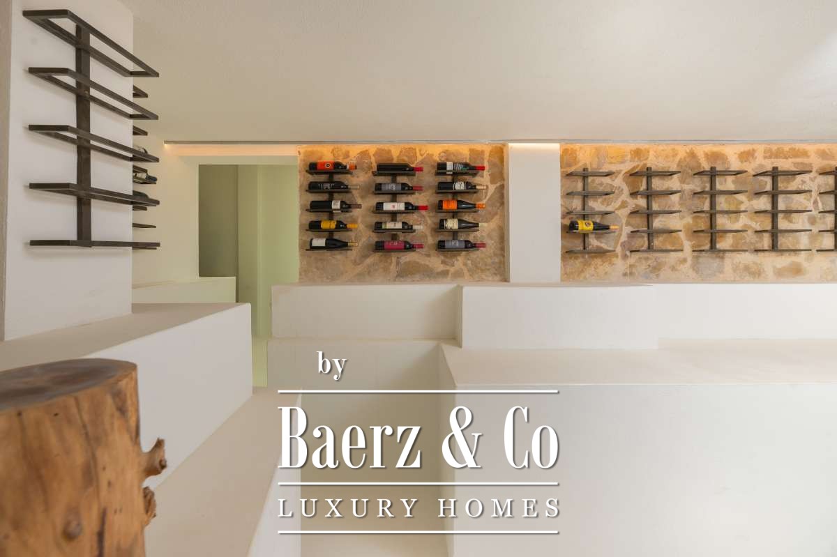 The villa’s 330 m² of living space includes four bedrooms and three bathrooms, designed to accommodate both intimate family life and guests in comfort. Large windows bring seamless natural light and views inside, enhanced by underfloor heating and full air conditioning. Features such as an indoor gym, sauna, jacuzzi, and a 20 m² wine cellar add refinement to daily living. The property is technically advanced, equipped with solar panels, a 32 kW battery storage system, and a water supply from a shared well.