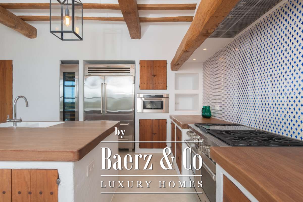 Originally an authentic finca extended in the 1940s, the house now offers 506 m² of living space divided between 361.7 m² on the ground floor and 144.64 m² above. Four bedrooms and five bathrooms have been thoughtfully renovated, each detail respecting the cubic architecture and rustic simplicity. Living areas blend seamlessly with garden terraces, encouraging an unhurried Mediterranean rhythm.