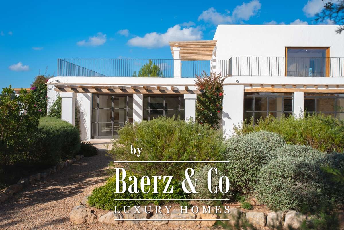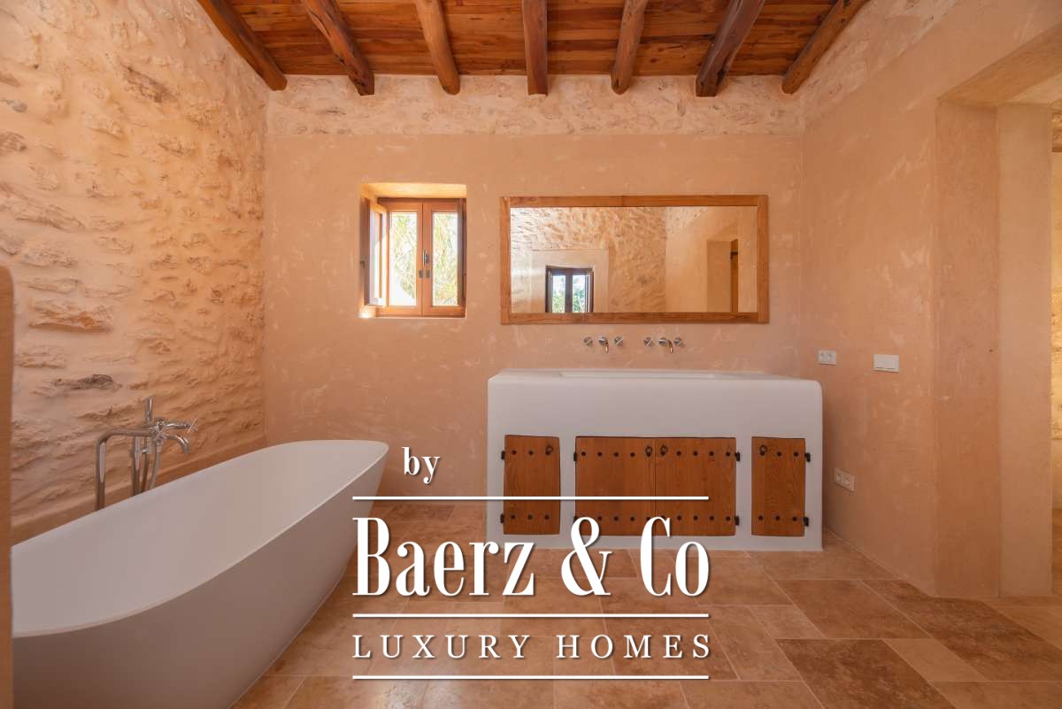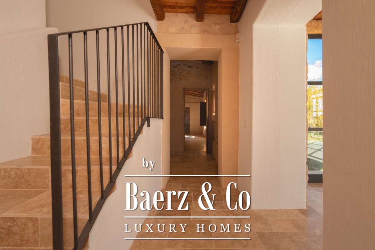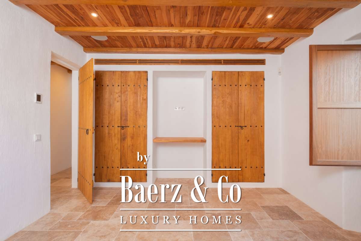 The recently renovated finca blends historic character with contemporary finesse. Every detail of the 620 m² residence, from exposed stone walls to soft, harmonious tones, underlines an enduring elegance. The living areas are open, inviting light and nature into each room, while the seamless integration of kitchen and lounges lends itself to both intimate gatherings and quiet reflection. Six bedrooms and five bathrooms provide refined comfort, with the master suite offering panoramic views and nightly glimpses of Dalt Vila’s illuminated skyline.