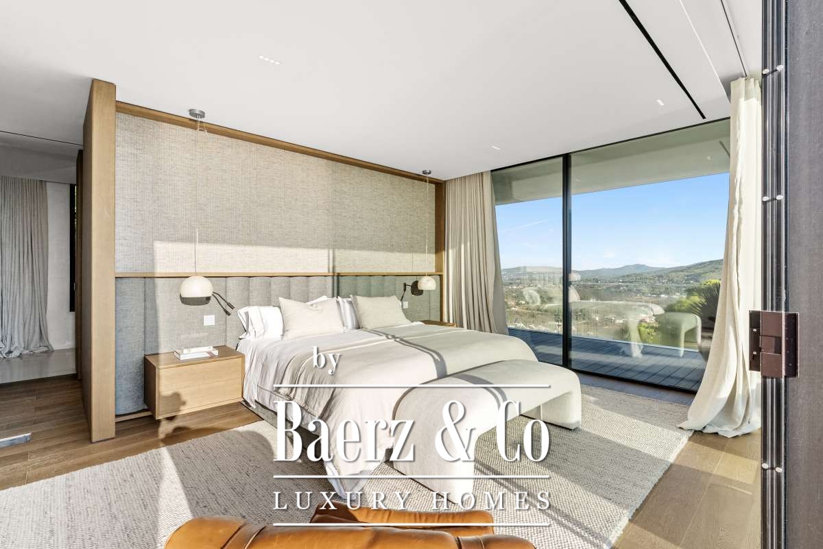 The surroundings – tranquility and a view like no otherCasa Rise is located in a quiet, green area near Santa Eulalia, nestled among gently rolling hills and Mediterranean nature. From the property, you have a breathtaking view that is unique to Ibiza, with panoramic vistas over the surrounding valley and the shimmering Mediterranean Sea in the distance. Here you experience ultimate peace and privacy, while still being just minutes away from lively villages, beaches, and all amenities on the eastern side of Ibiza.The house and layout – high-end finishing in every detailAfter five years of preparation and permit procedures, Casa Rise has been completed: an architectural masterpiece of 650 m² that elevates luxury living to a new level. The house features four bedrooms and four bathrooms, all spacious, bright, and designed with attention to comfort.Inside, the premium materials and details immediately stand out: Piet Boon window frames, exclusive handles and taps, Gira switches, and designer lighting by Flos. The kitchen forms the heart of the home, while an integrated home automation system (smart home) effortlessly controls lighting, climate, and music (Sonos, both indoors and outdoors).The home also offers