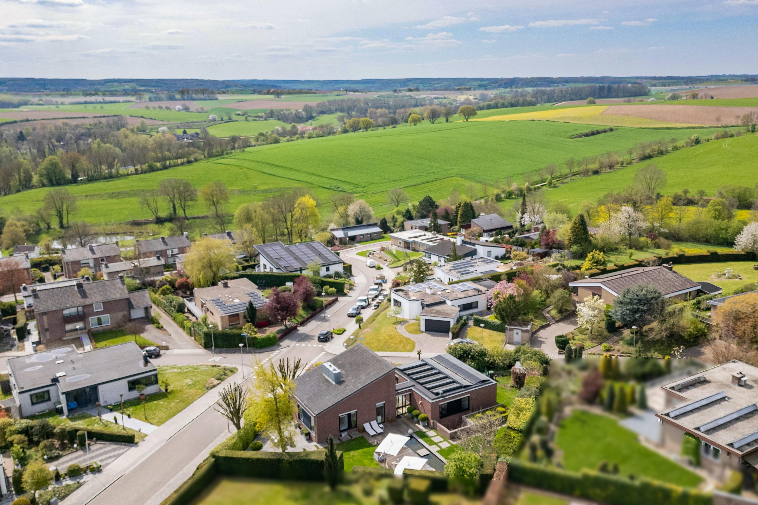 The villa has been thoughtfully designed and lovingly maintained. Solar panels (27 units, 405 Wp per panel, owned), aluminum window frames with insulated glass. The home is heated partly by radiators and partly by forced-air heating. The main roof was insulated and re-tiled 14 years ago. The flat roofs were very recently insulated and renovated. The villa is located in the parish village of Simpelveld at Bouwensstraat 25 in the Hulserveld. Simpelveld is one of the seven municipalities that together form Parkstad. The center of Simpelveld offers an excellent selection of shops and restaurants. The centers of Heerlen and Aachen are a short distance away. Excellent access to major roads and a popular location for hiking and cycling enthusiasts.