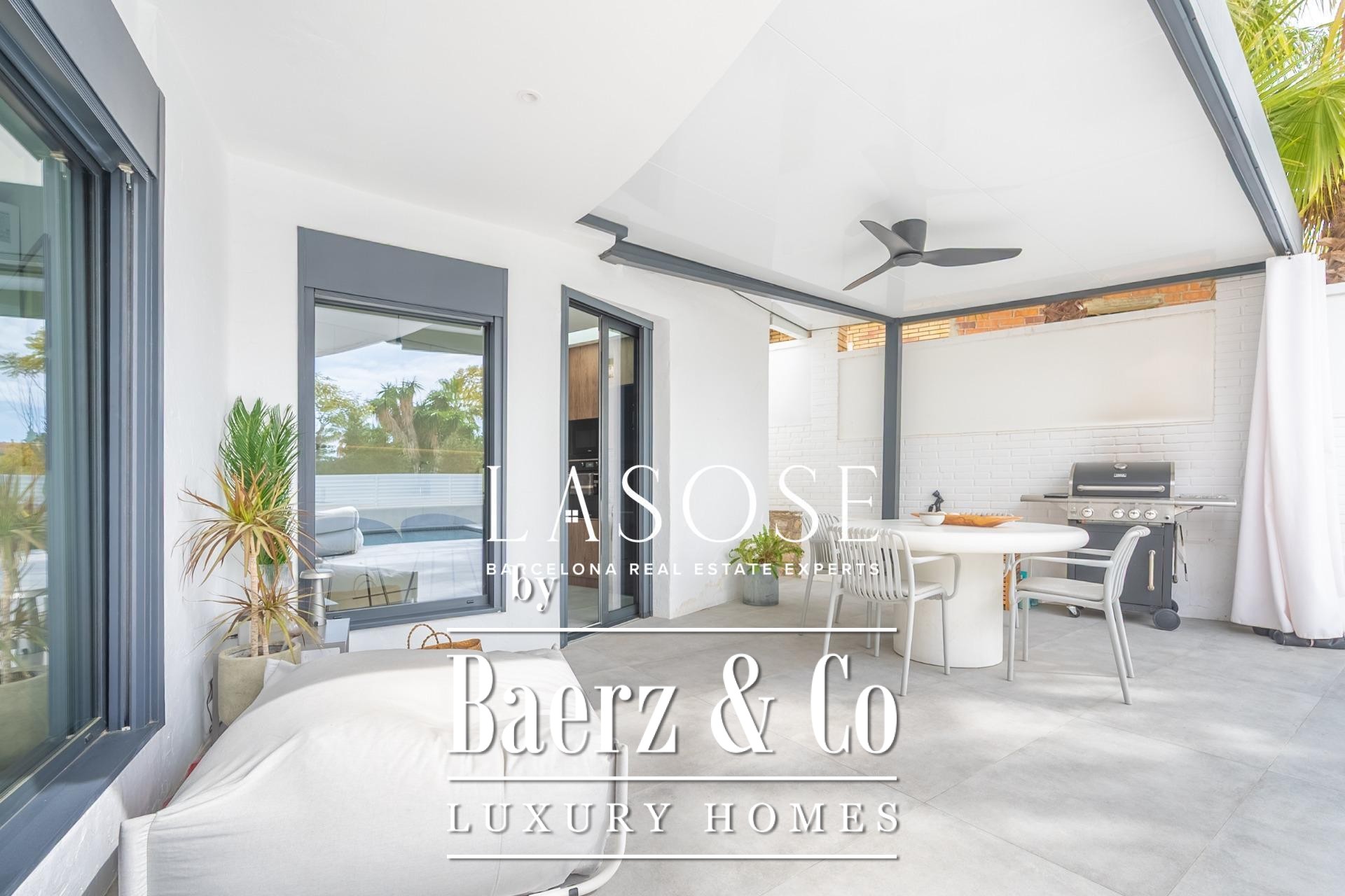A large garage, located in a nearby building, accommodates vehicles and storage needs. Living in Vallpineda provides access to exclusive club facilities, including swimming, tennis, and gym amenities, as well as quick connections to Sitges' beaches, cultural offerings, and the C-32 motorway to Barcelona and the airport. This villa in Sitges Vallpineda is a rare opportunity to unite modern design and the easy pace of Mediterranean life.